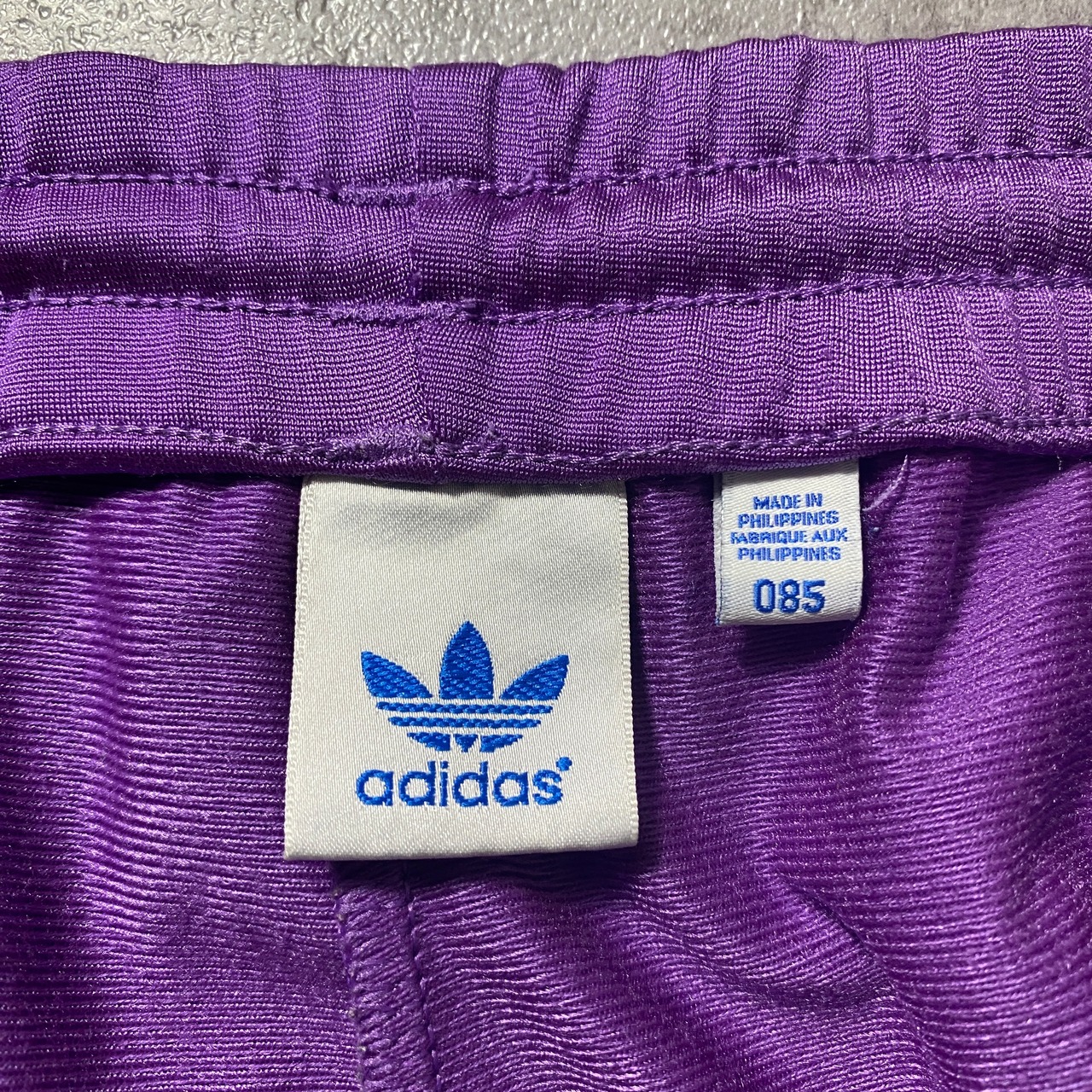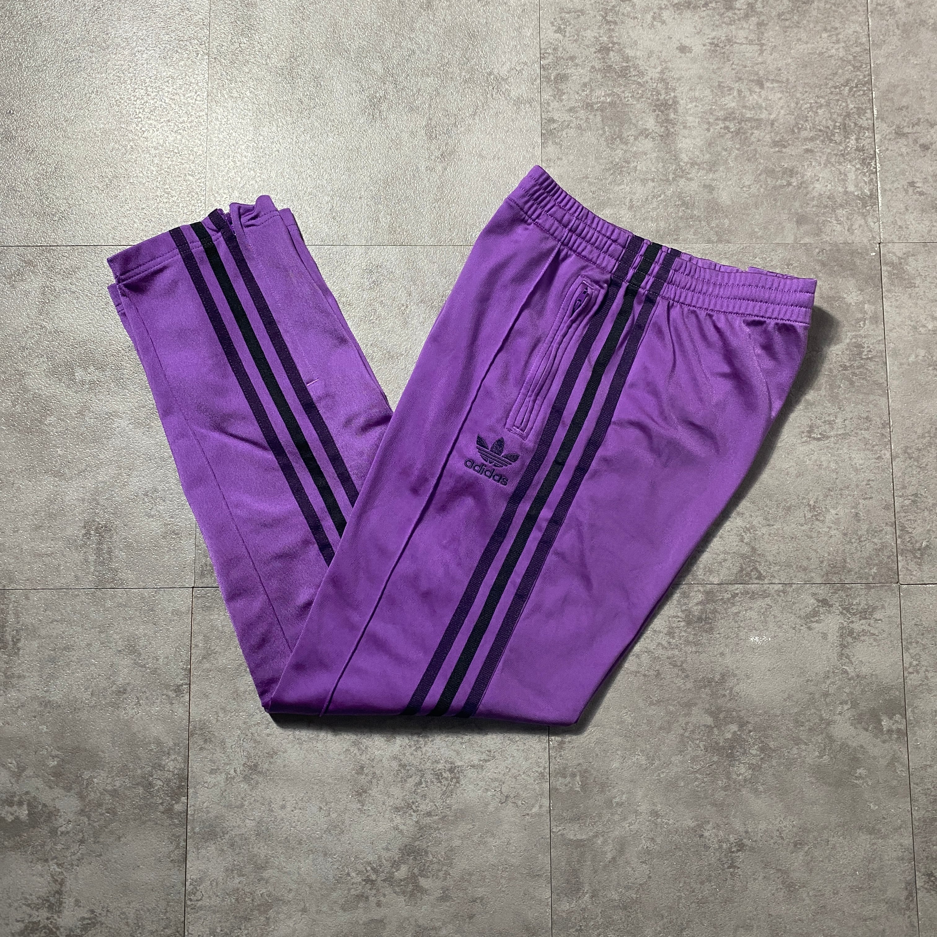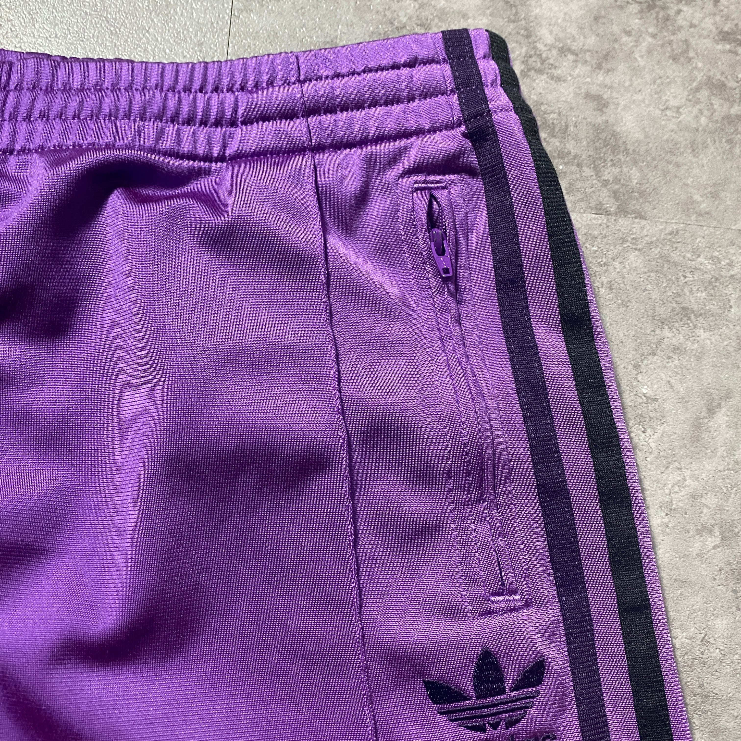 adidas originals アディダスオリジナルス トレフォイル 刺繍ロゴ サイドストライプ パープル トラックパンツ