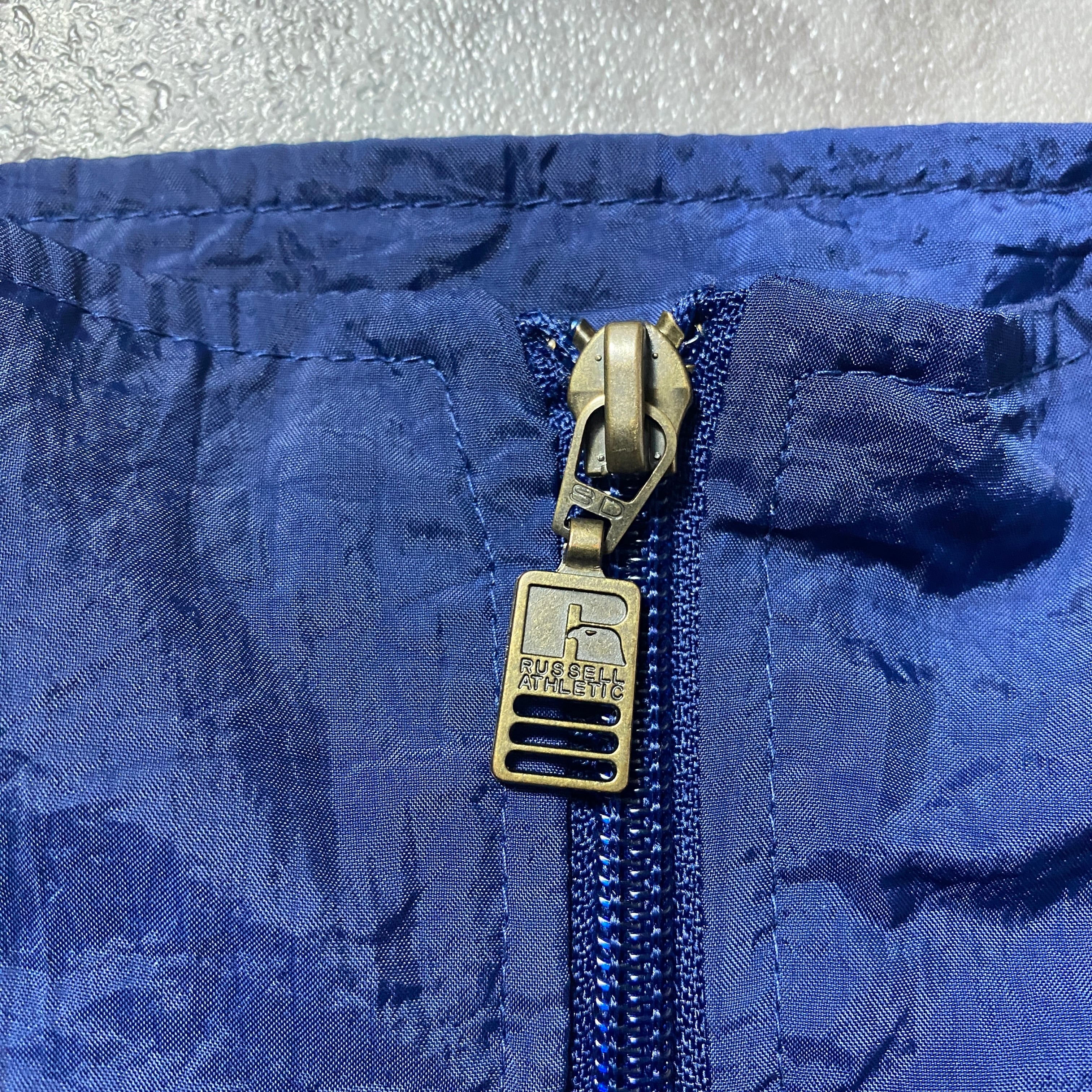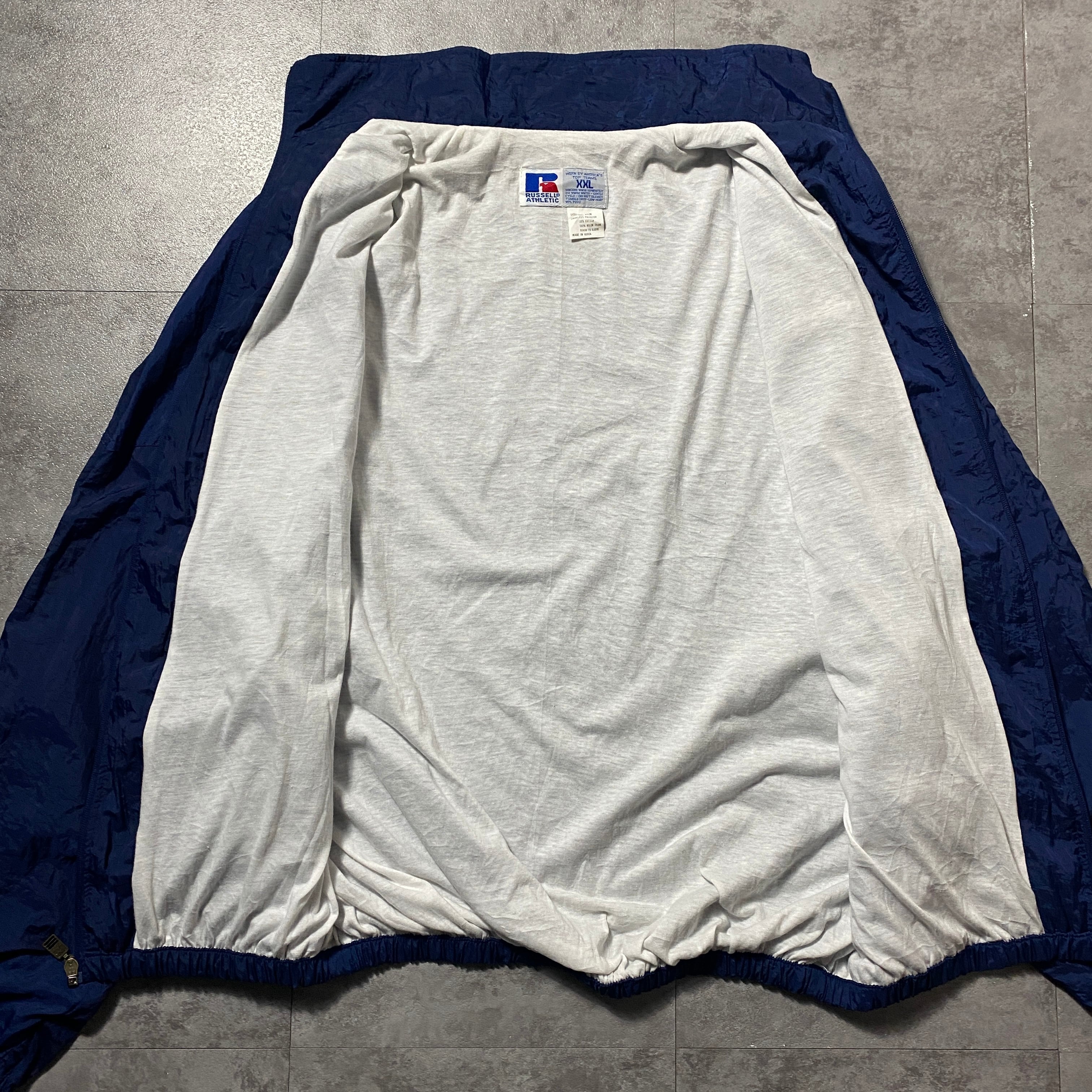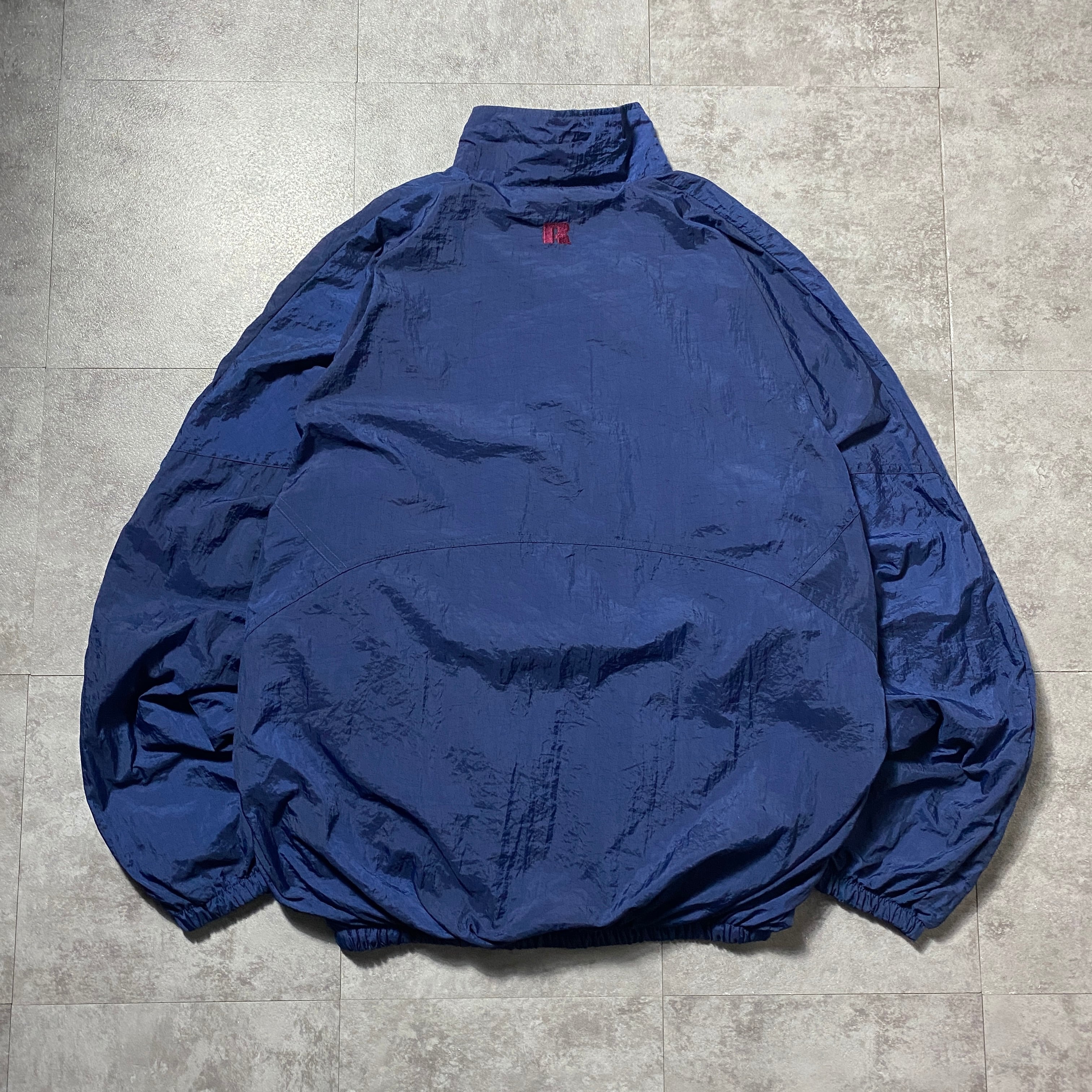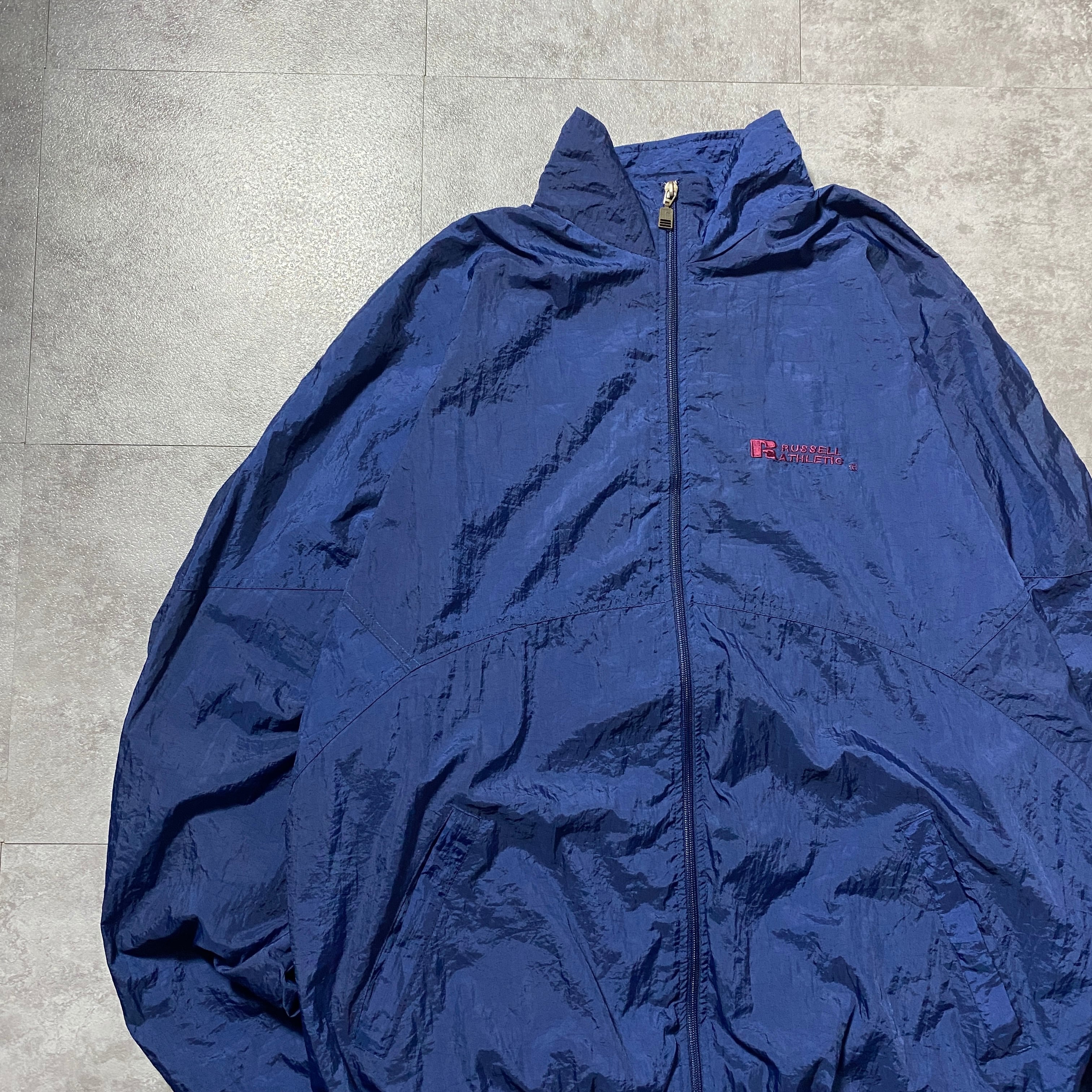 90's RUSSEL ATHLETIC ラッセルアスレチック 刺繍ワンポイント ネイビー ナイロンジャケット