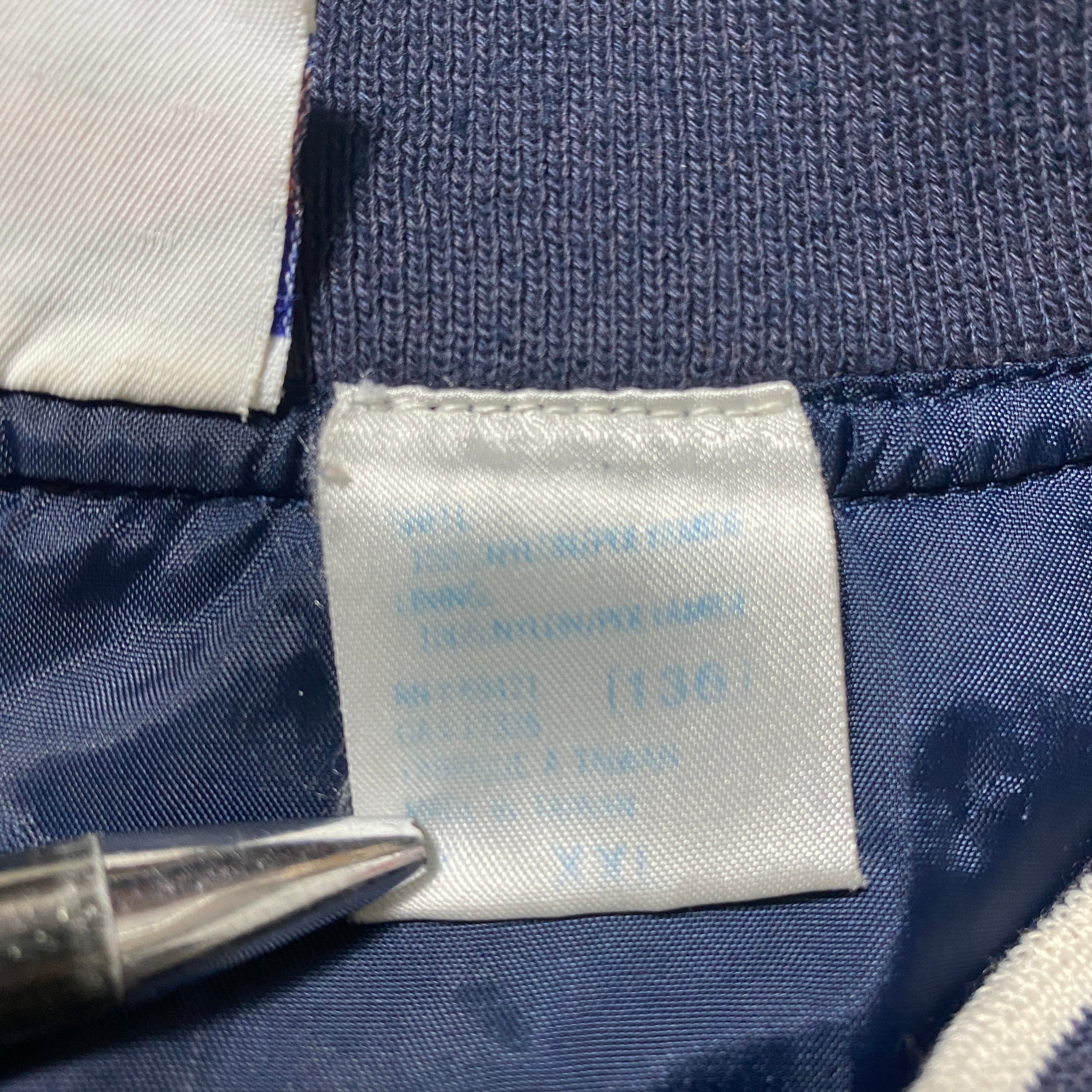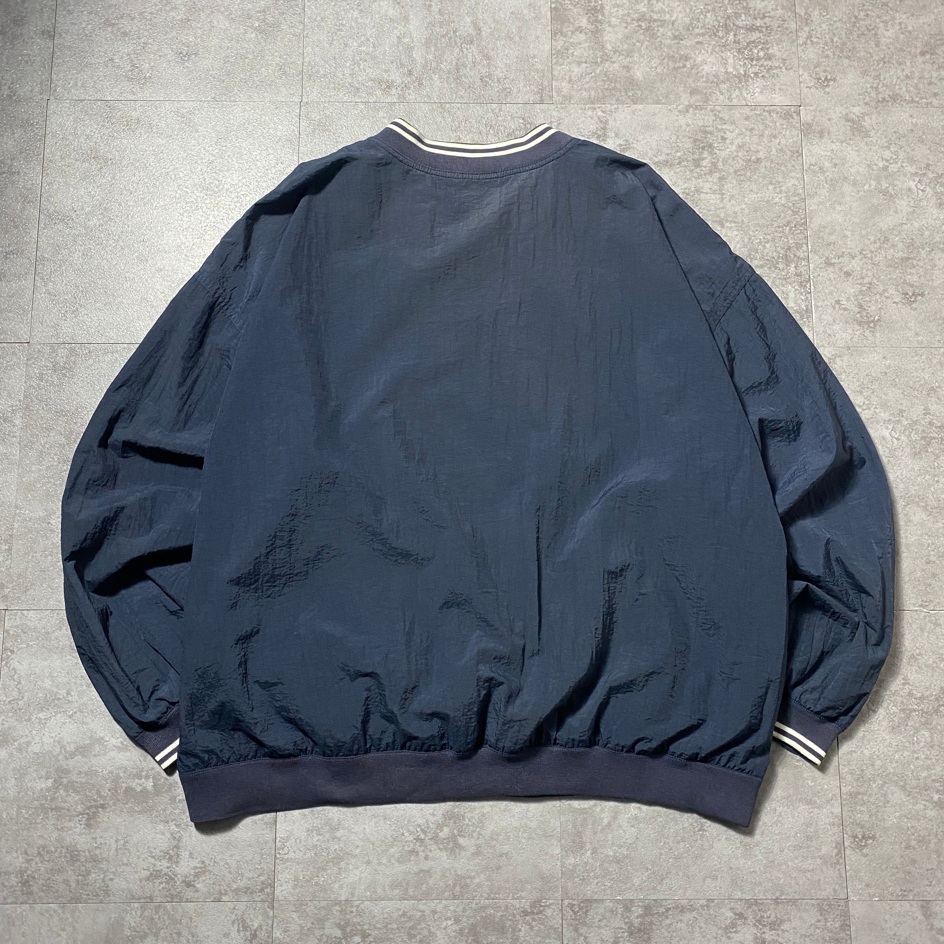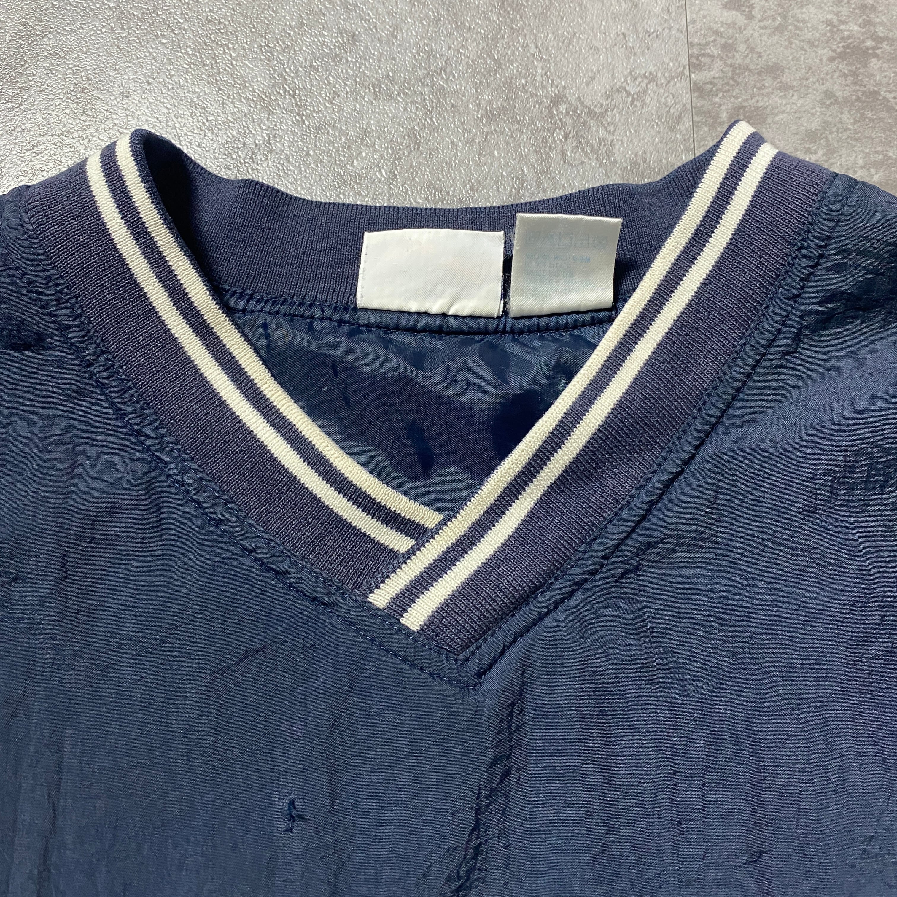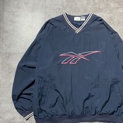 90's Reebok リーボック 刺繍ベクターロゴ ラインリブ ネイビー ナイロンプルオーバー