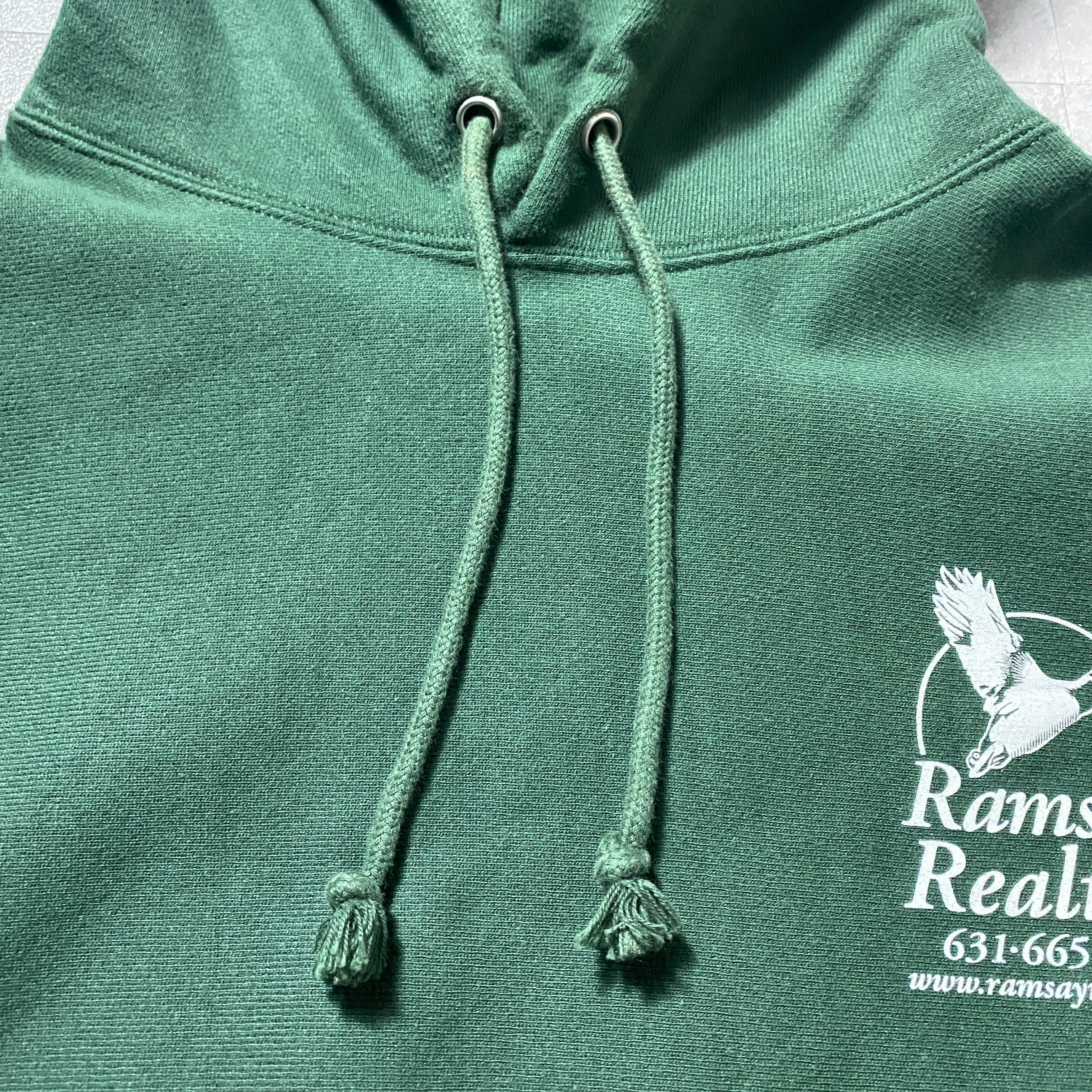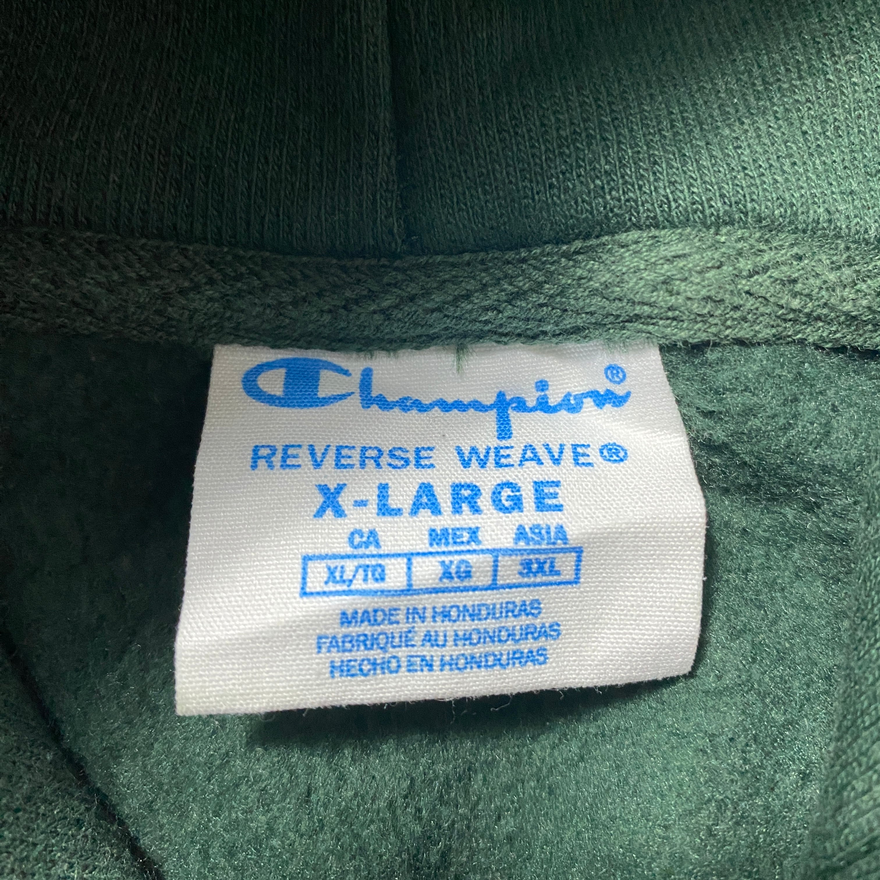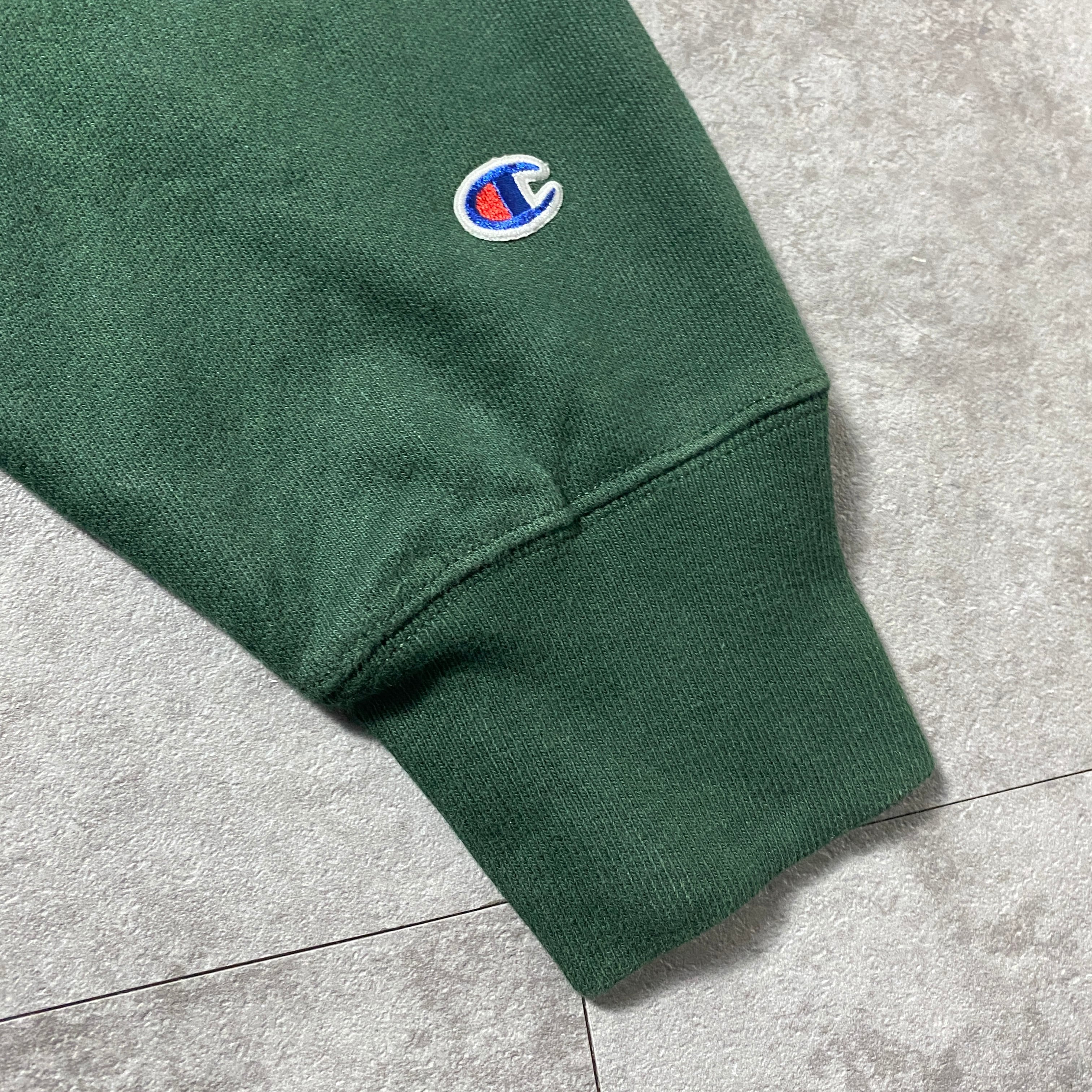 【Size.XL】00's Champion チャンピオン リバースウィーブ バックプリント 企業ロゴ グリーン ヘビーオンス スウェット パーカー