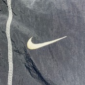 90's NIKE ナイキ スウォッシュ 刺繍ワンポイント バックロゴ ブラック 中綿 ナイロンジャケット