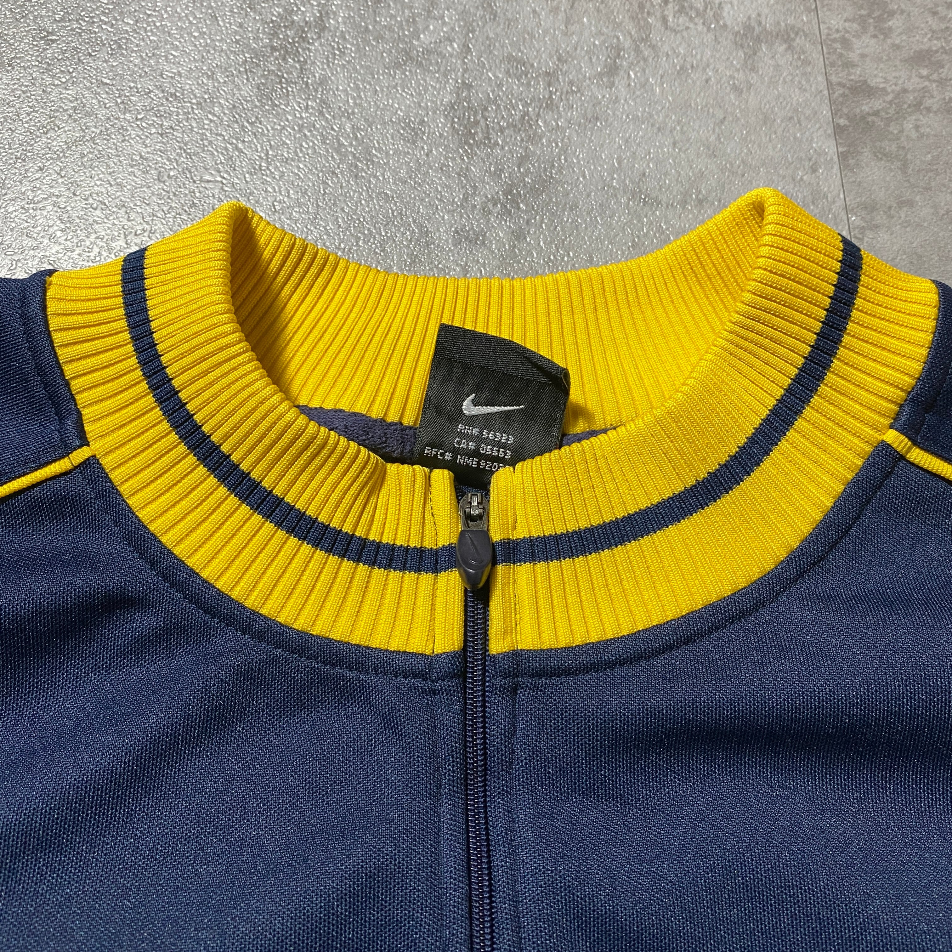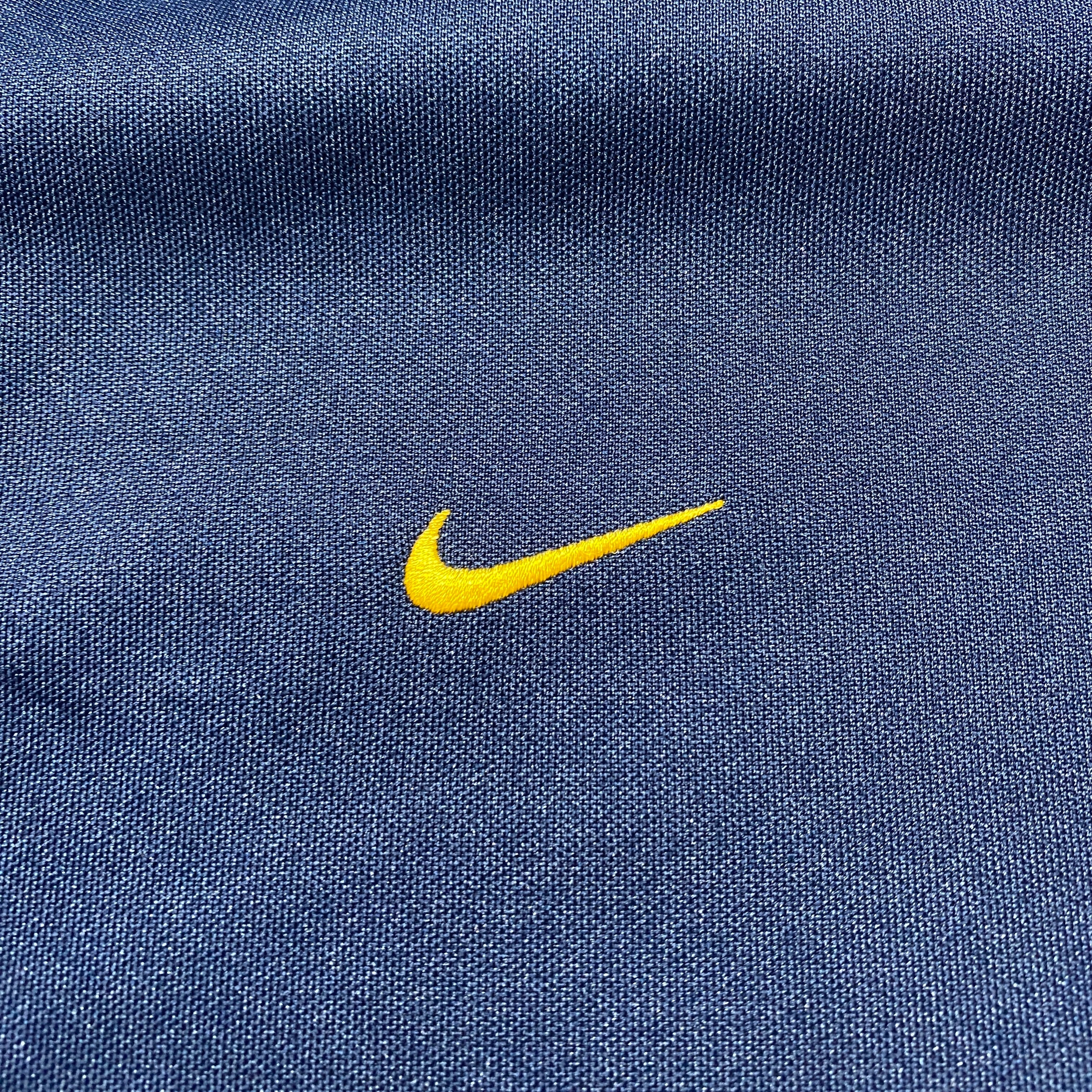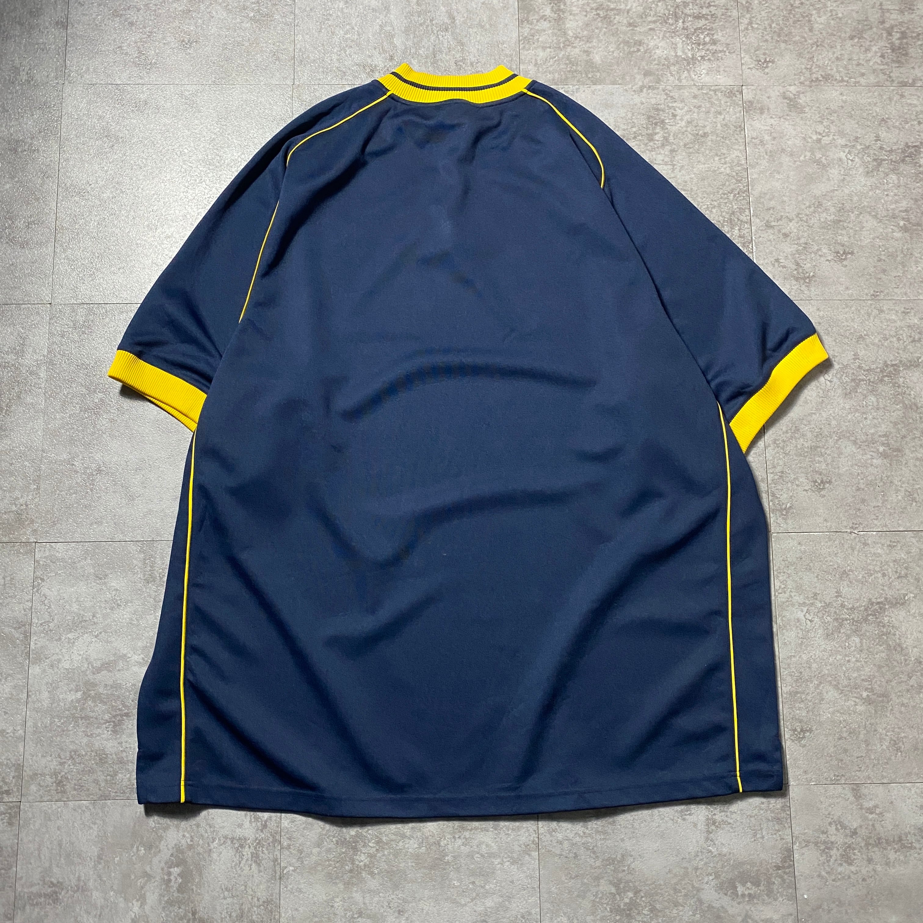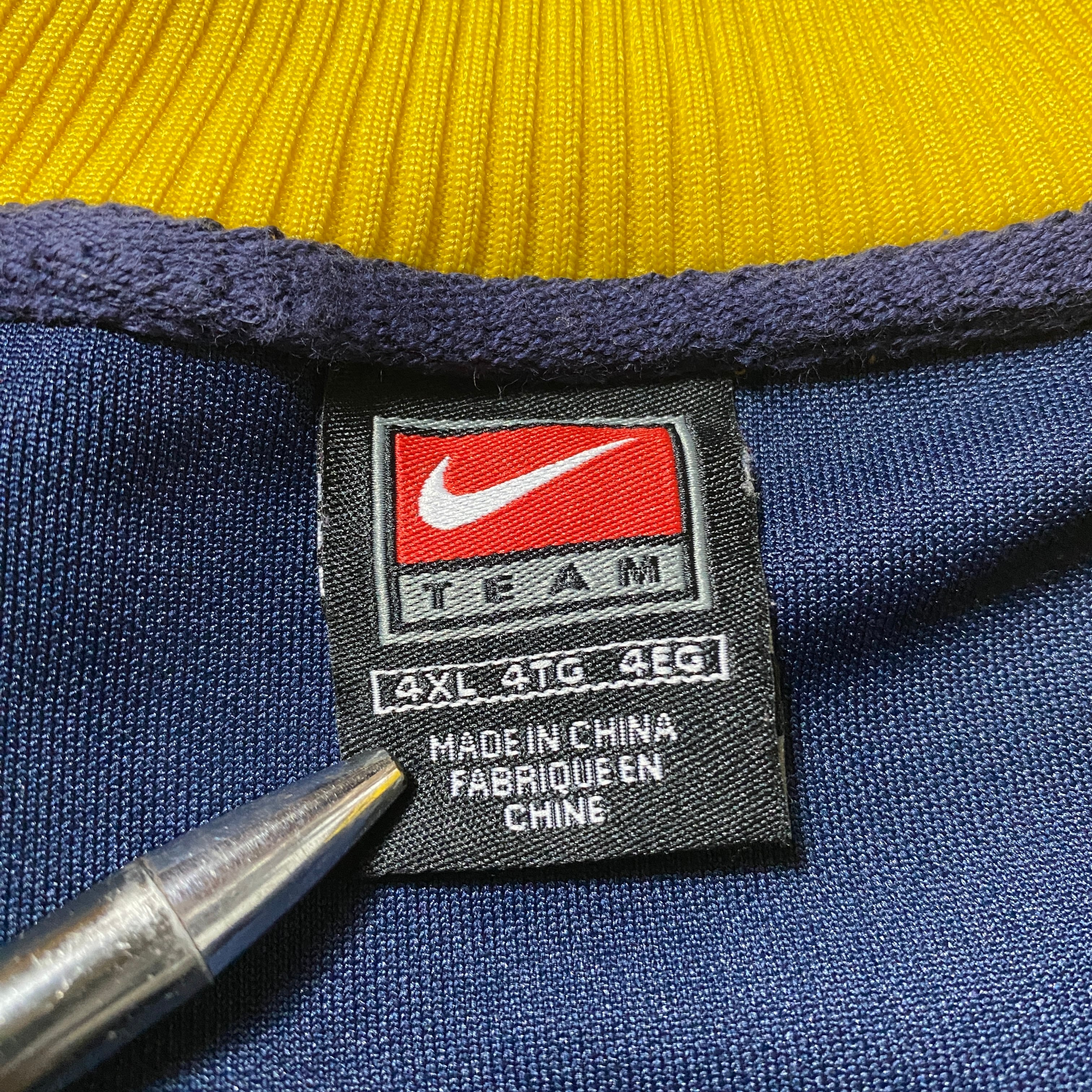 00's NIKE ナイキ スウォッシュ 刺繍ロゴ ハーフジップ ラインリブ 4XLサイズ ネイビー ジャージ Tシャツ