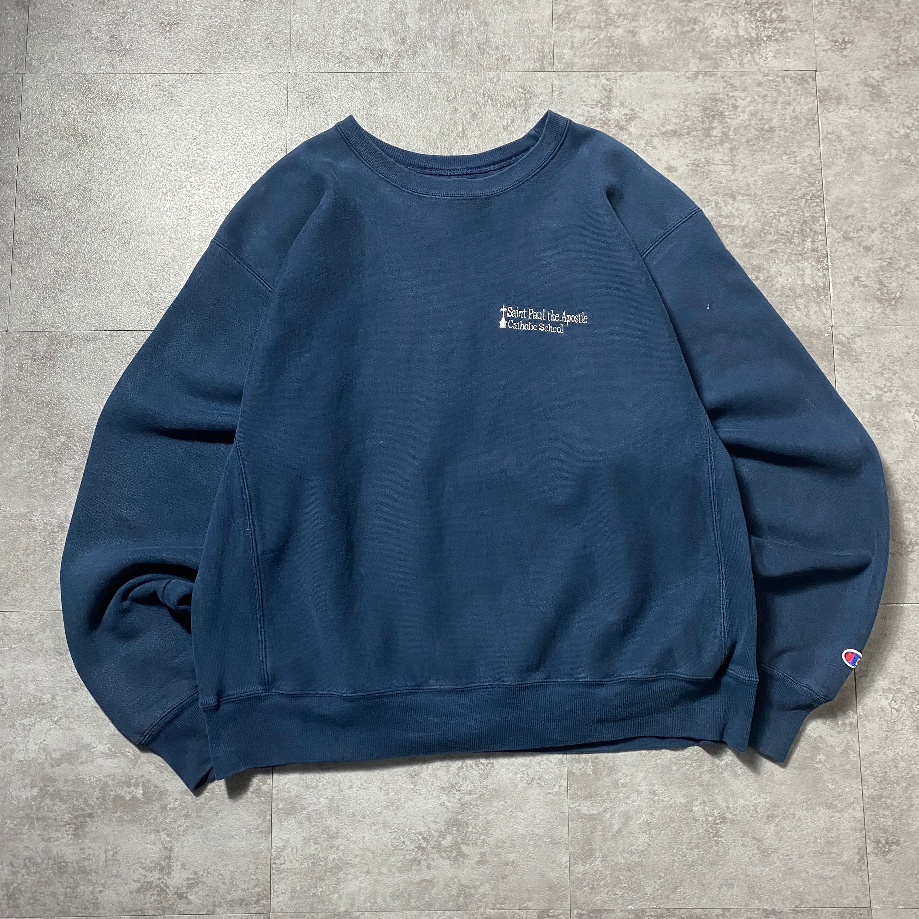 00's Champion チャンピオン プレミアムリバースウィーブ 刺繍ワンポイント 企業ロゴ ネイビー スウェット トレーナー
