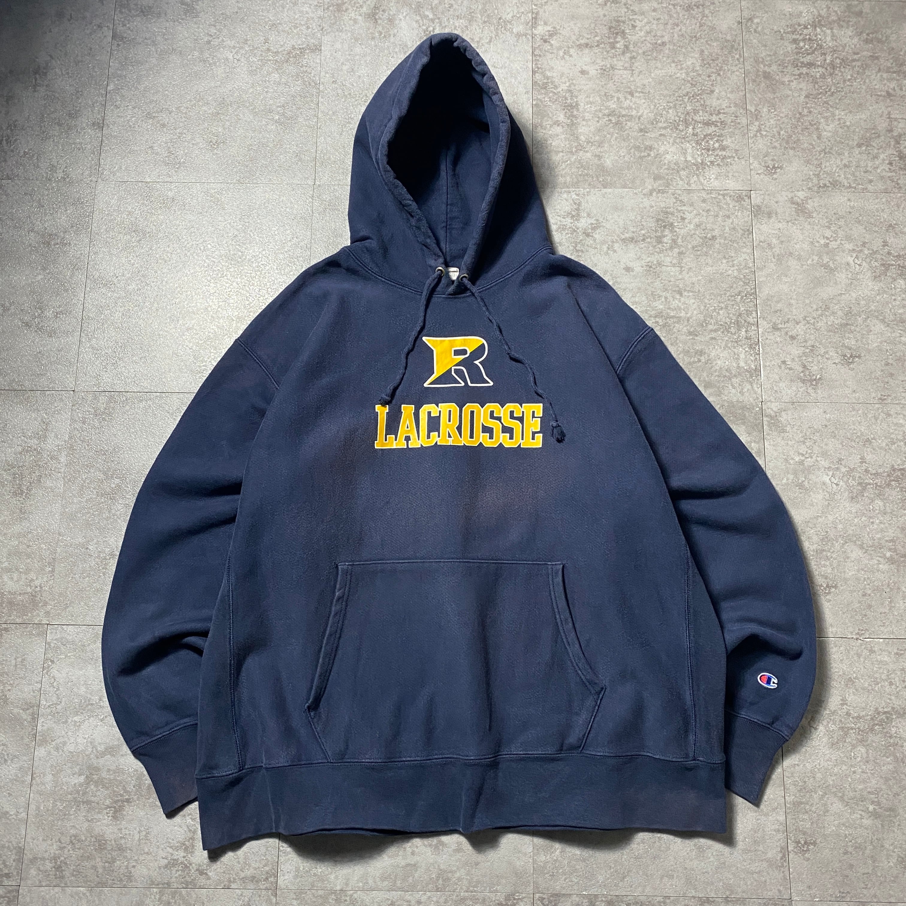 00's Champion チャンピオン リバースウィーブ ラクロス プリント 2XLサイズ ネイビー スウェット パーカー