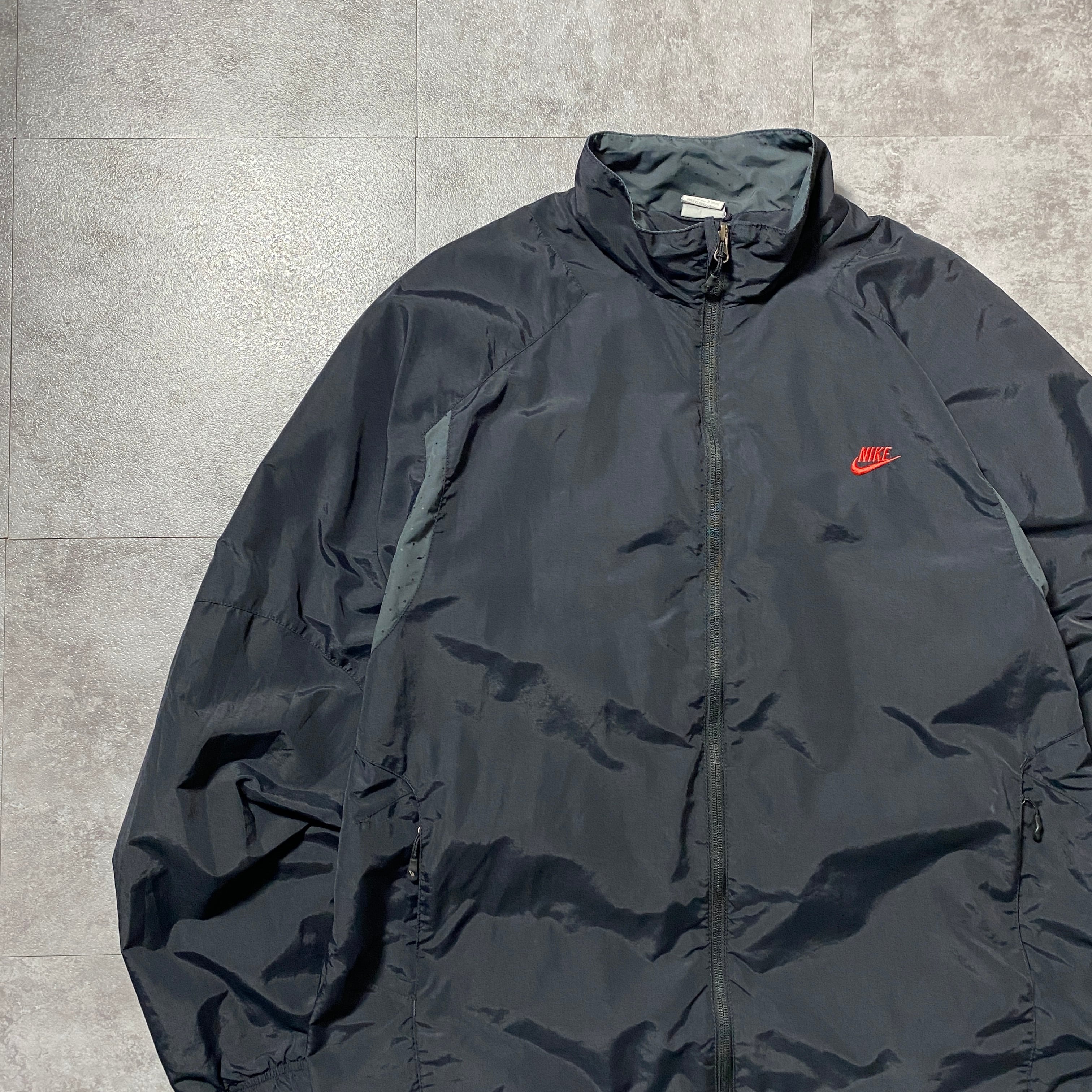 00's NIKE ナイキ スウォッシュ 刺繍ワンポイント ブラック ナイロンジャケット