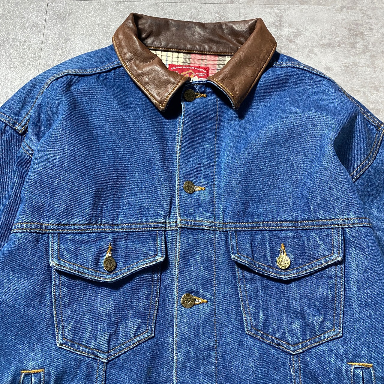 【Size.XL】90's Marlboro マルボロ レザー襟 デニムジャケット ジージャン