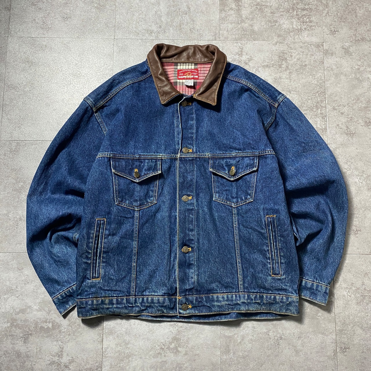 【Size.XL】90's Marlboro マルボロ レザー襟 デニムジャケット ジージャン