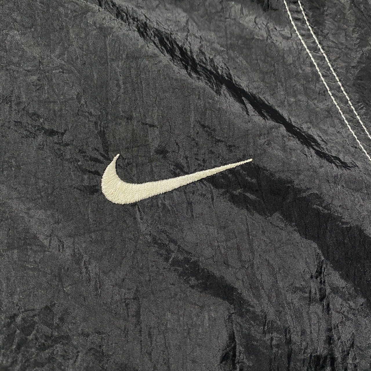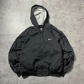 90's NIKE ナイキ スウォッシュ 刺繍ワンポイント フード ブラック ナイロンジャケット