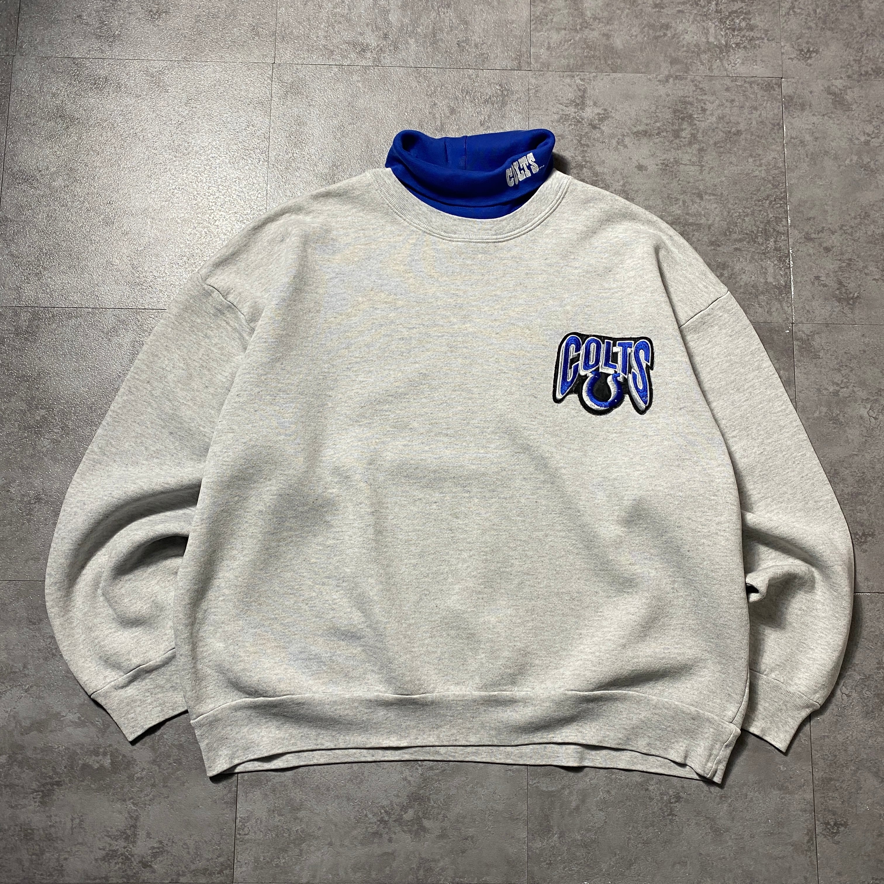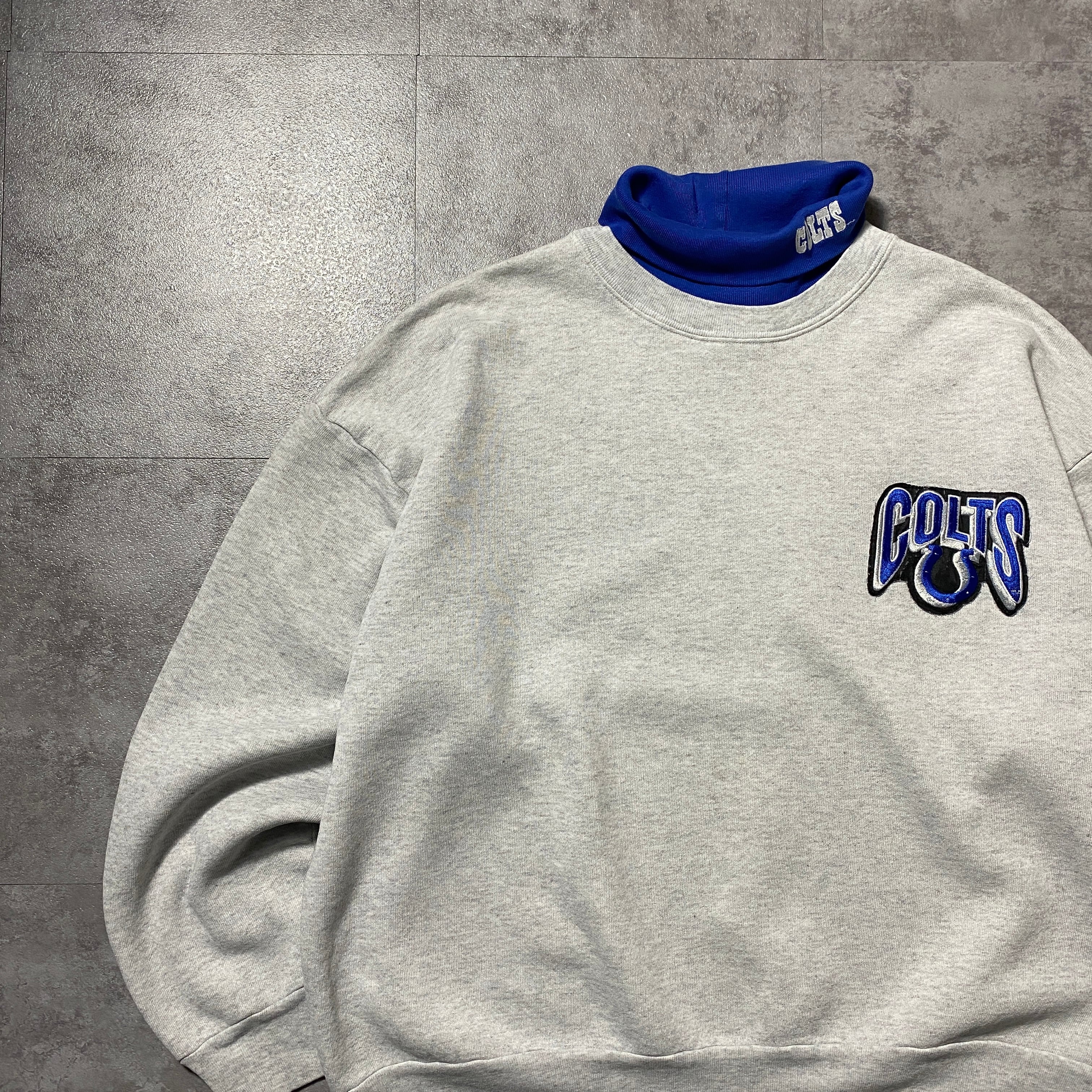 【USA製】90's Majertic NFL インディアナポリスコルツ ワンポイント ハイネック 刺繍ネックロゴ グレー スウェット トレーナー