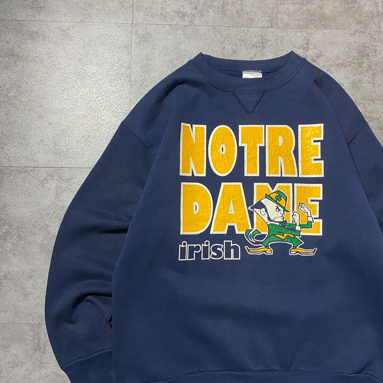 【Size.XL】90's BIKE ファイティングアイリッシュ ノートルダム大学 カレッジロゴ プリント 前V ネイビー スウェット トレーナー
