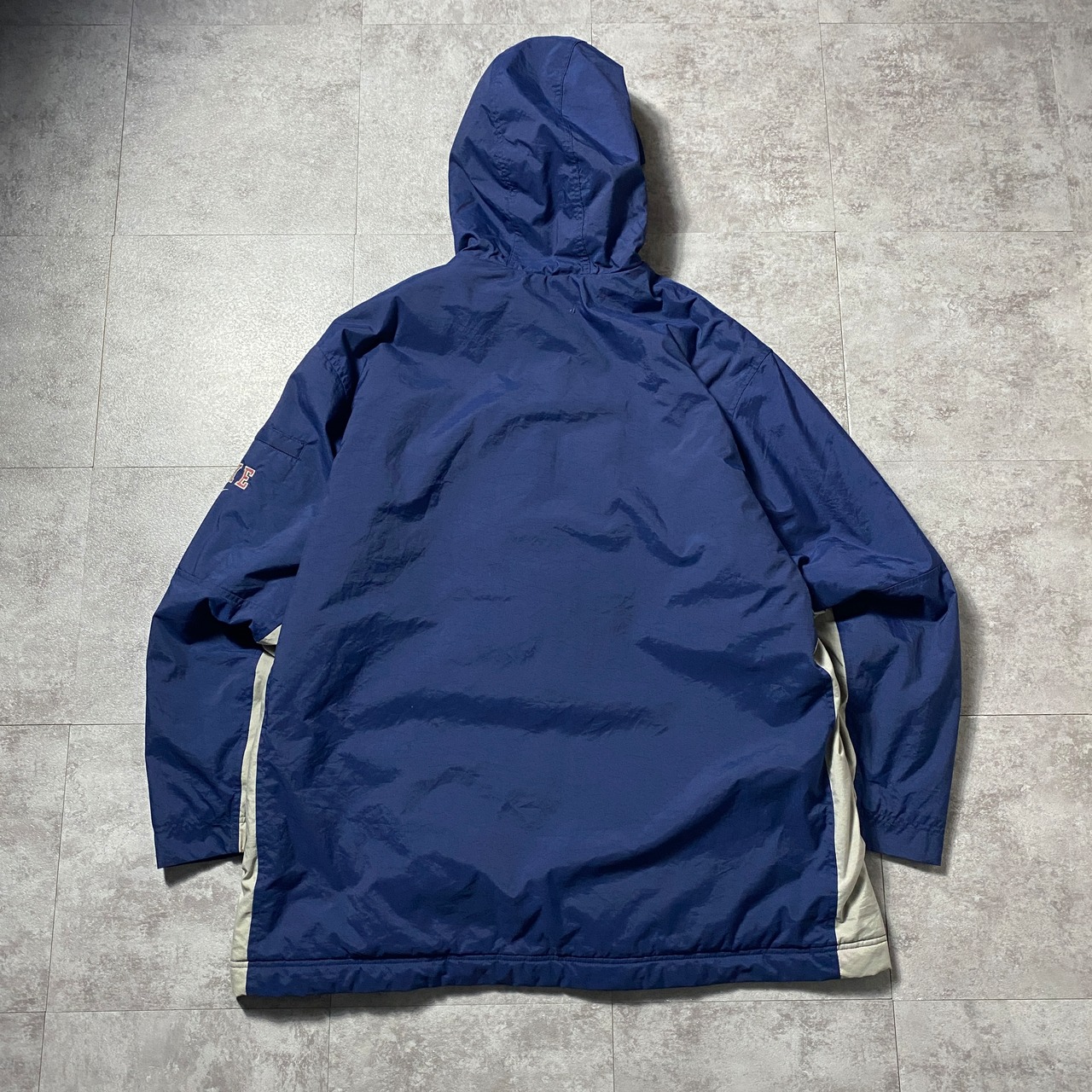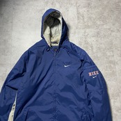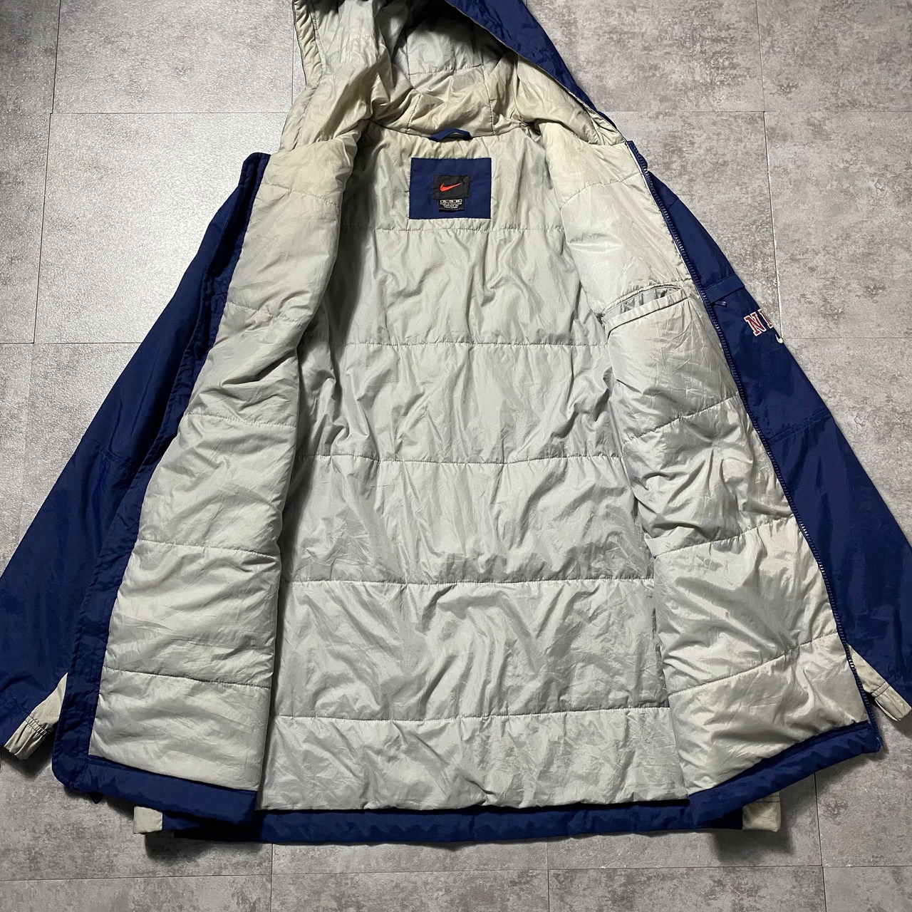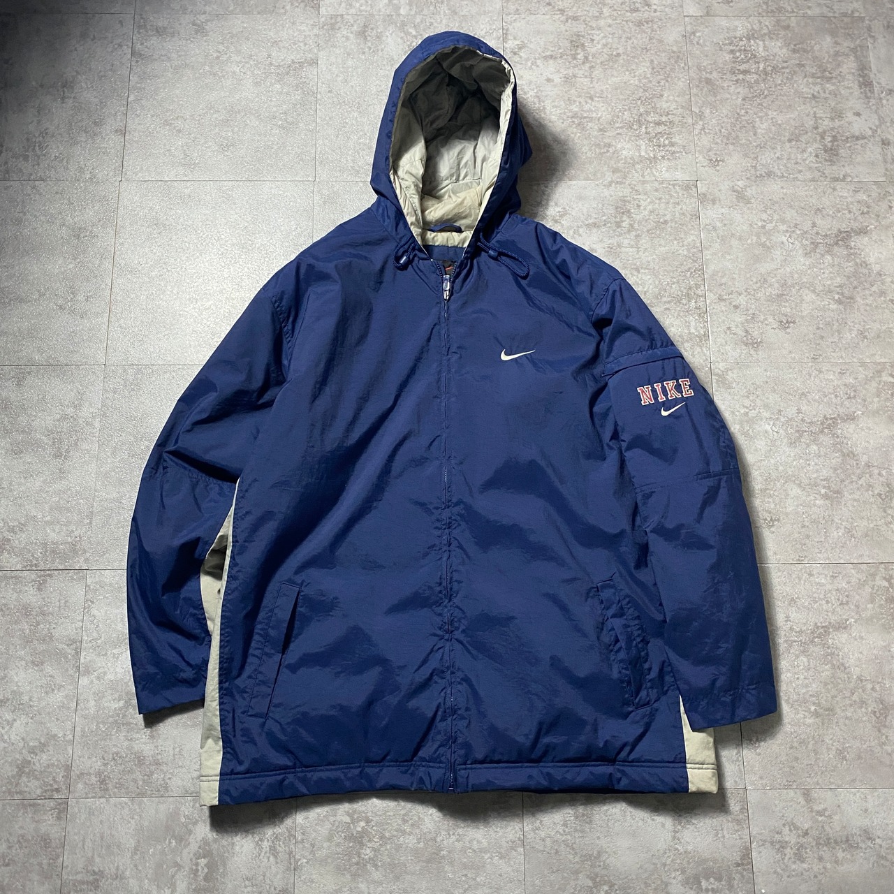 【Size.XL】00's NIKE ナイキ スウォッシュ 刺繍ワンポイント アームロゴ ネイビー 中綿 ナイロンジャケット