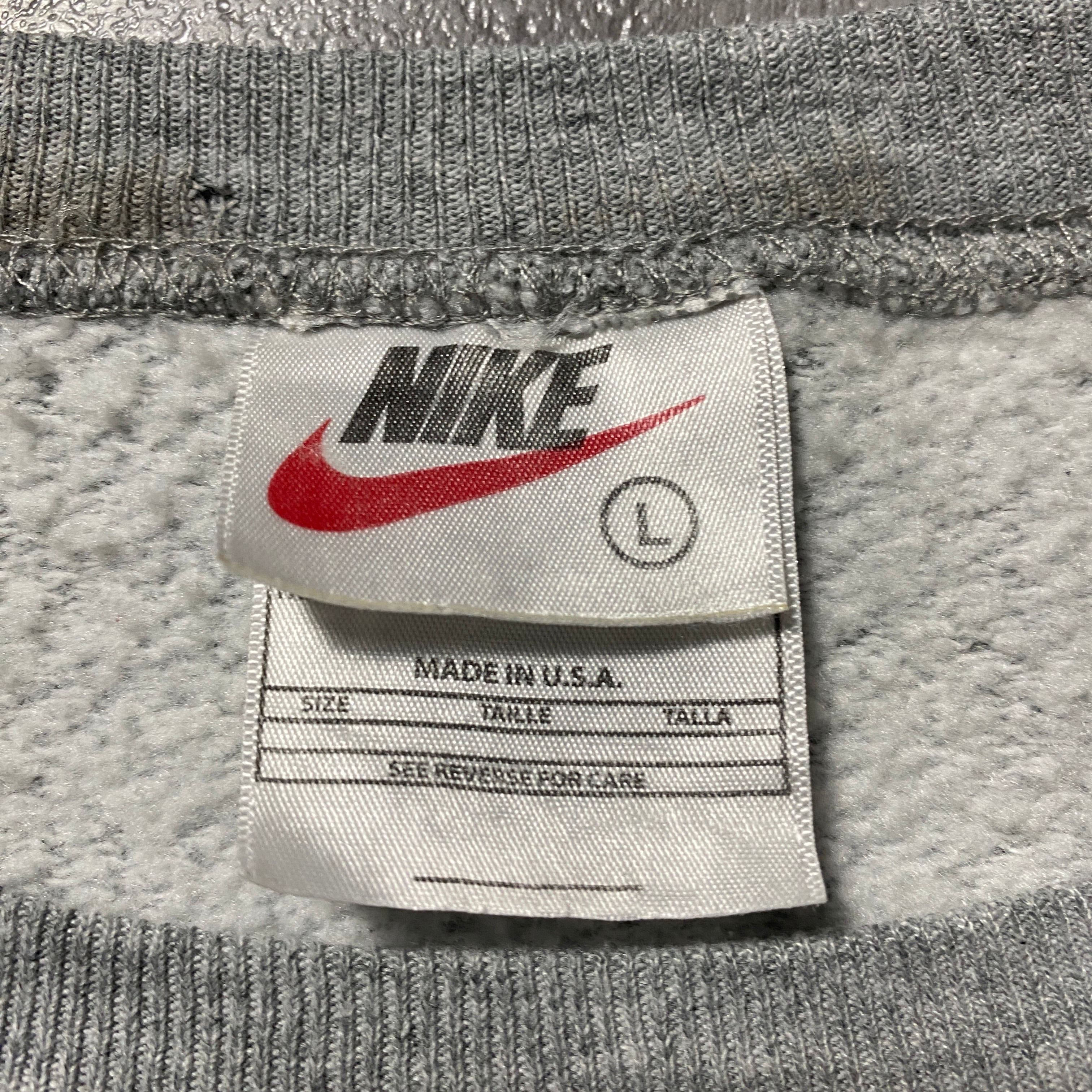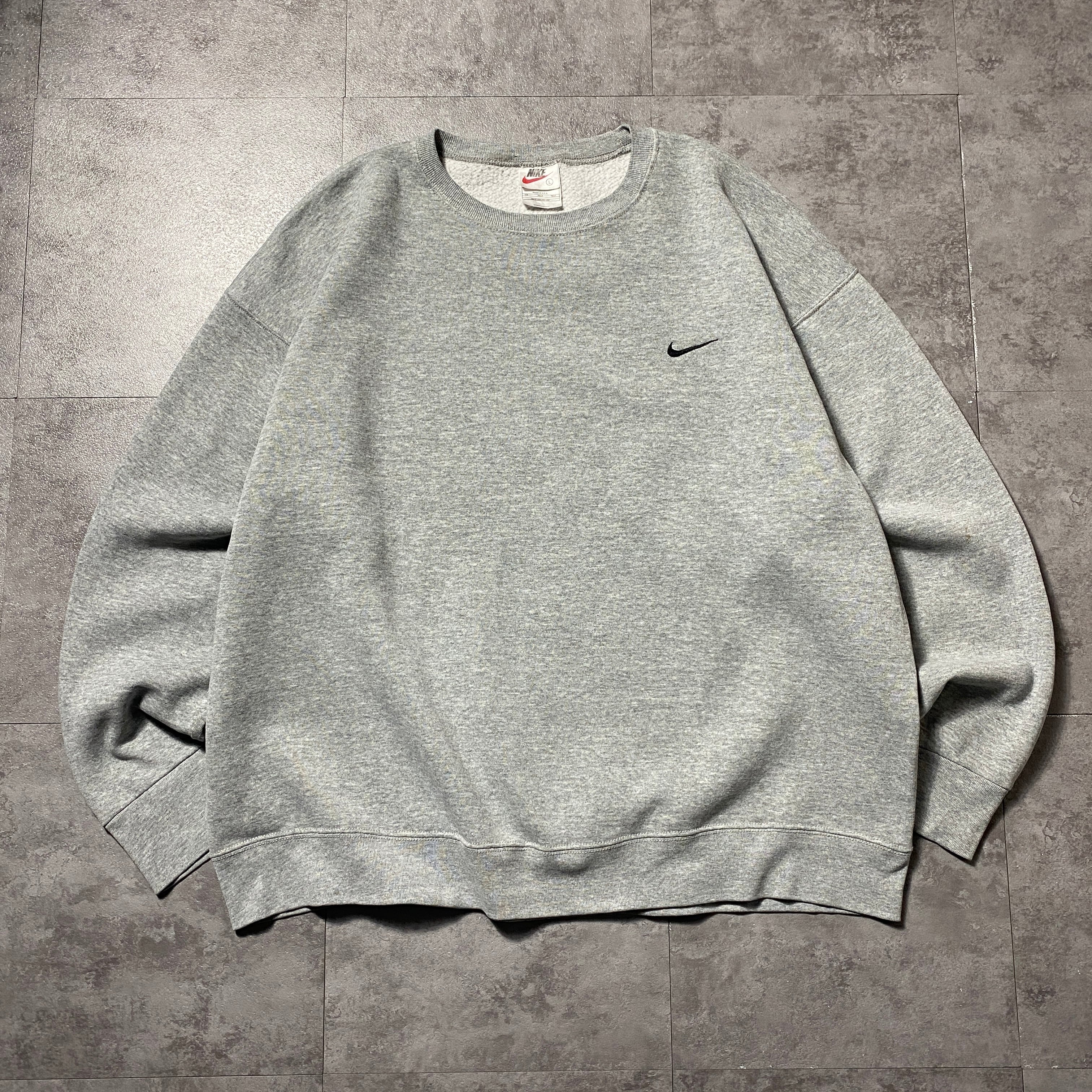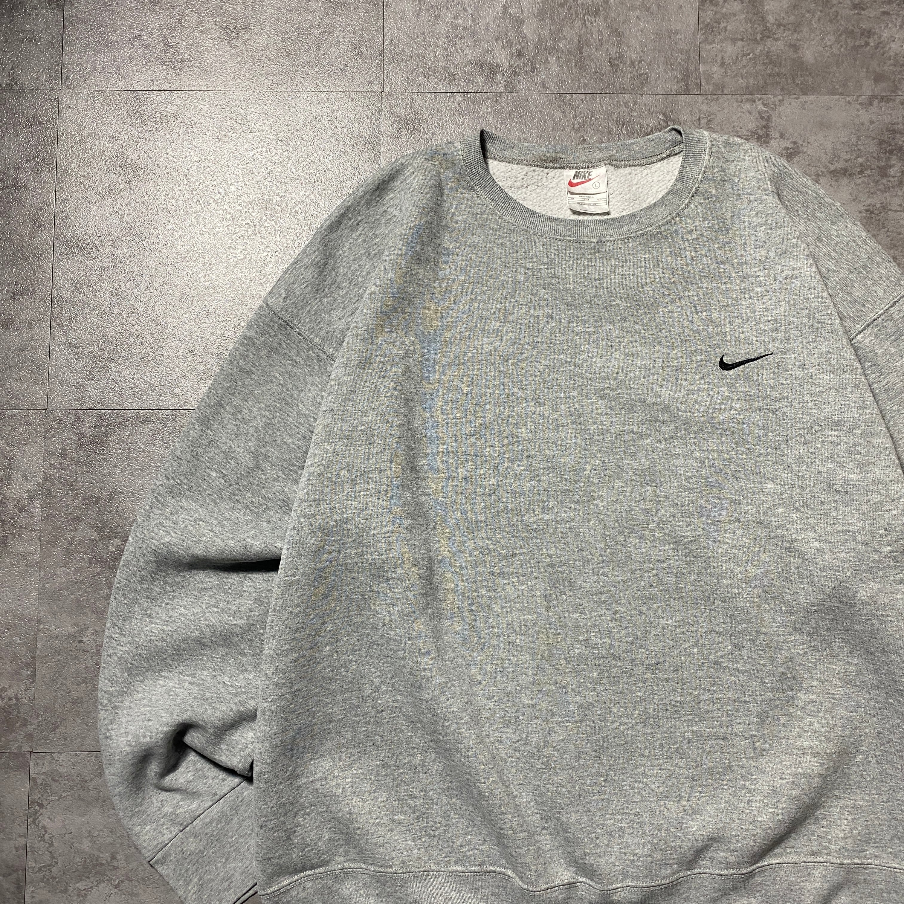 【USA製】90's NIKE ナイキ スウォッシュ 刺繍ワンポイント グレー スウェット トレーナー