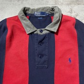 【Size.XL】Polo by Ralph Lauren ポロバイラルフローレン 刺繍ロゴ ストライプ 襟フェルト ラガーシャツ ポロシャツ