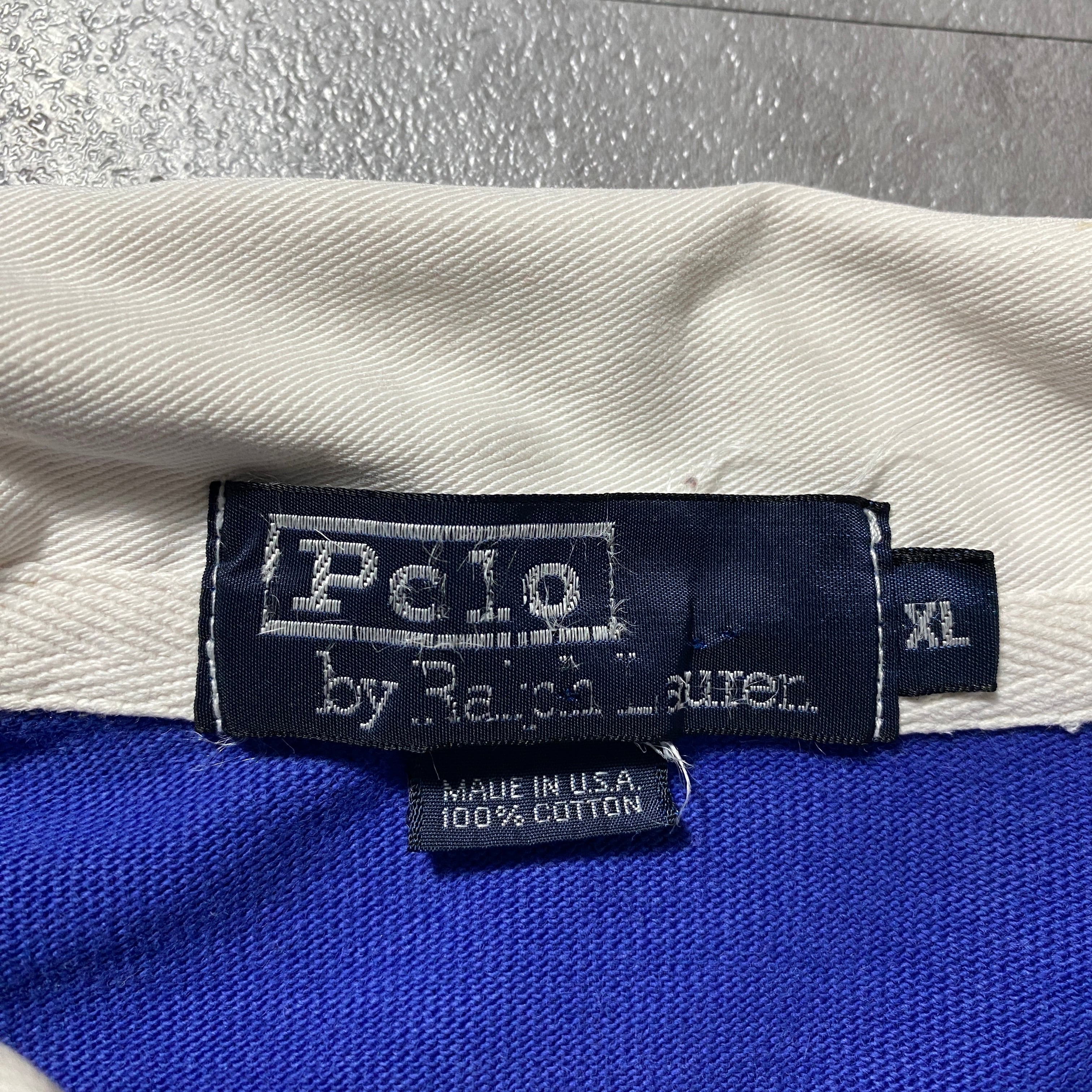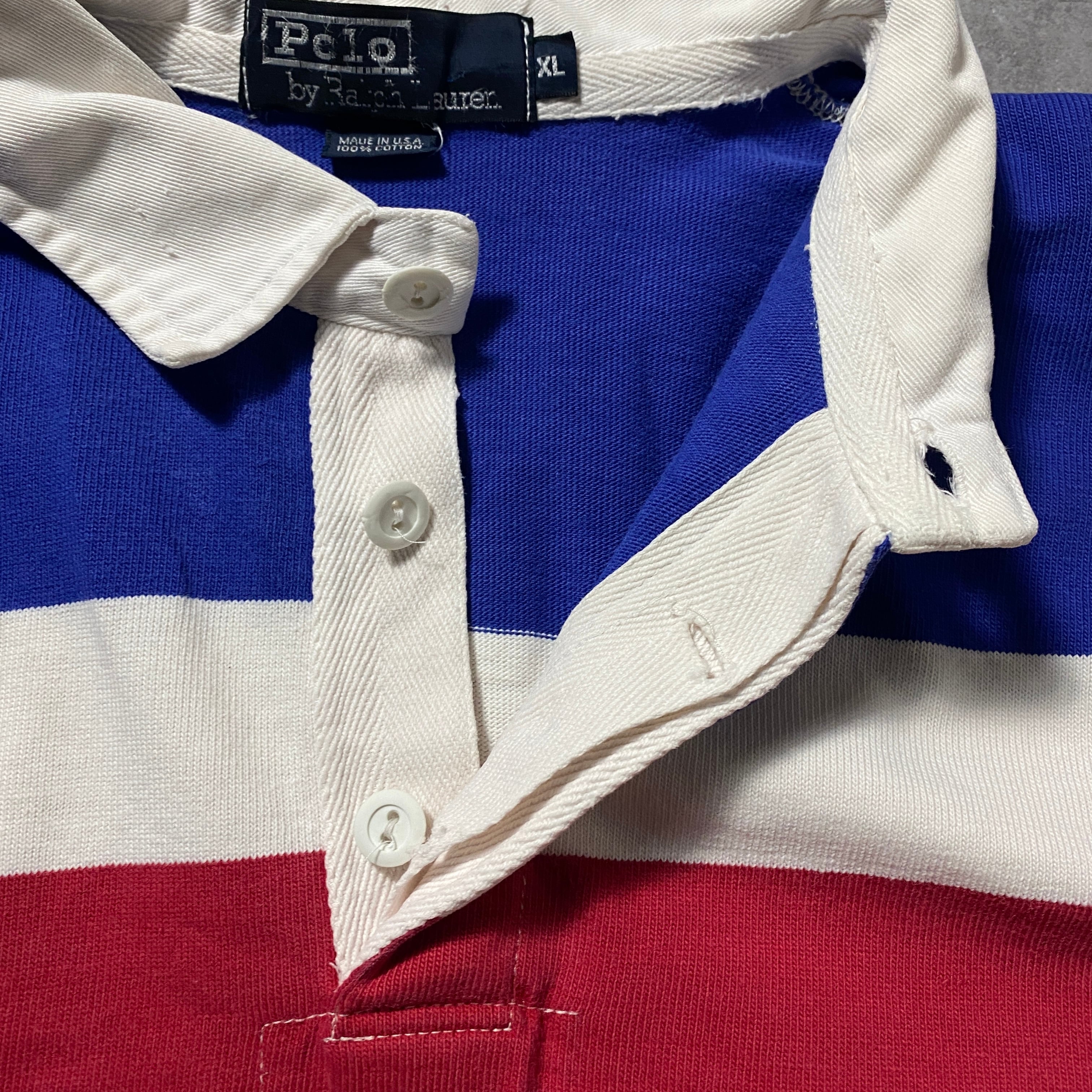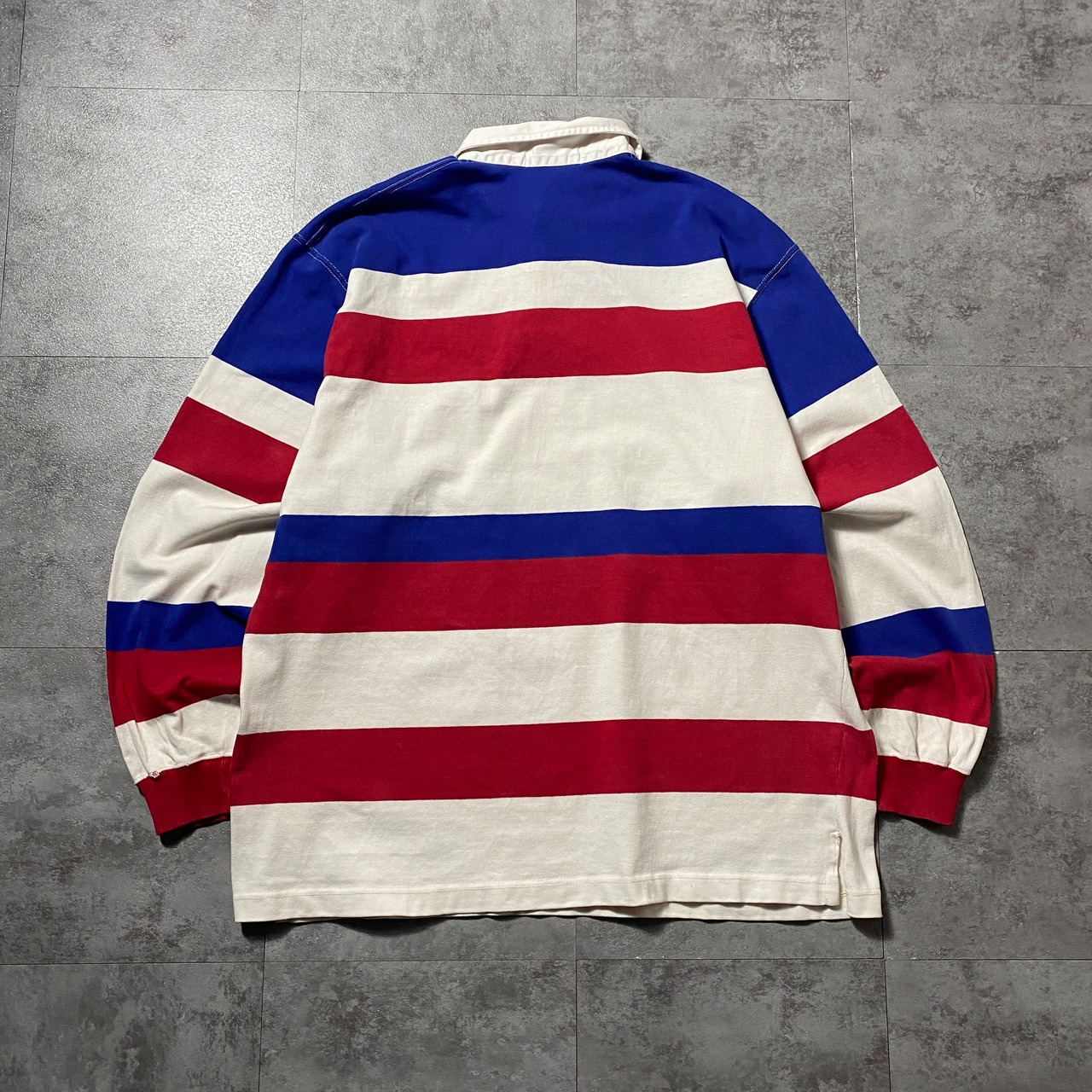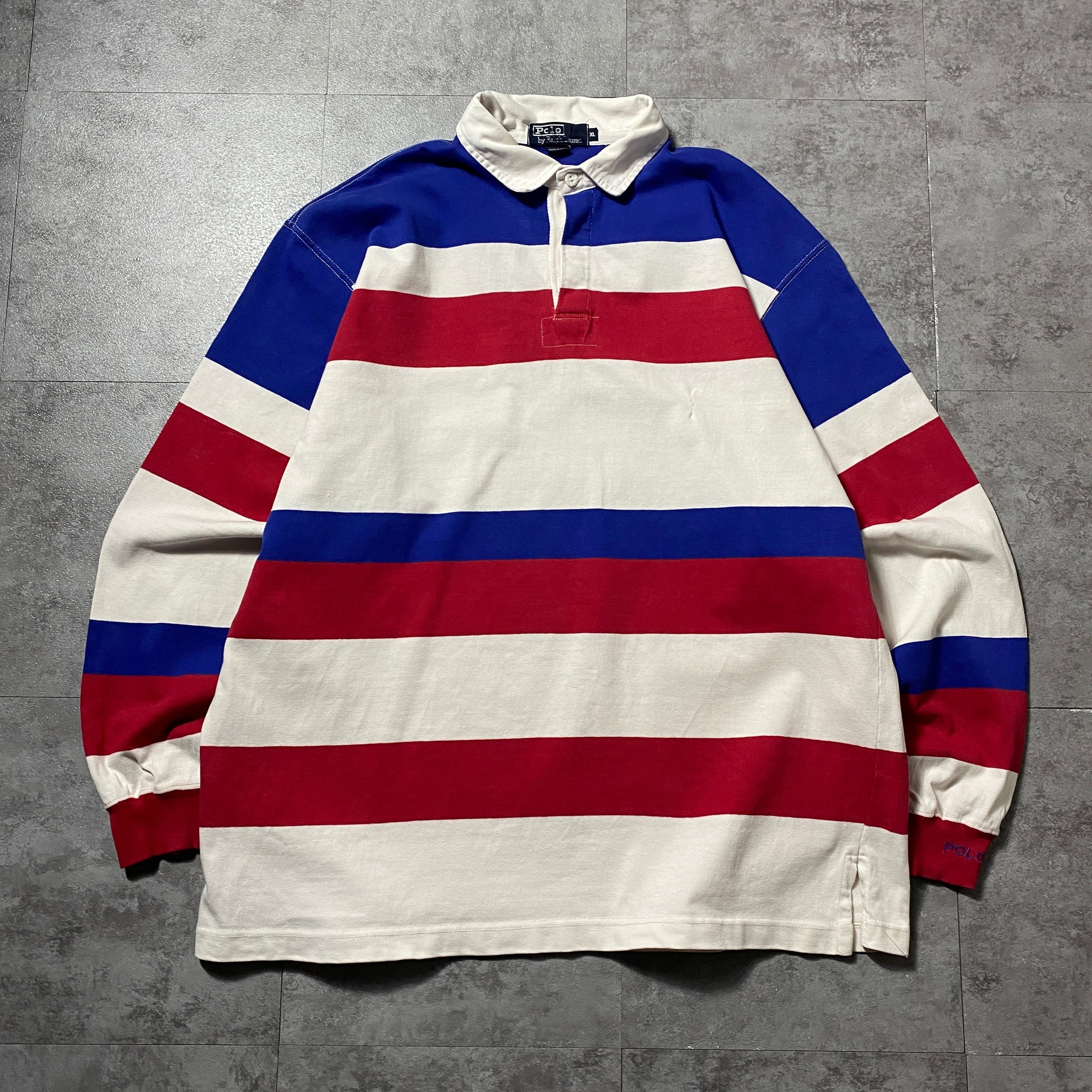 【USA製】Polo by Ralph Lauren ポロバイラルフローレン マルチカラー ボーダー XLサイズ ラガーシャツ ポロシャツ