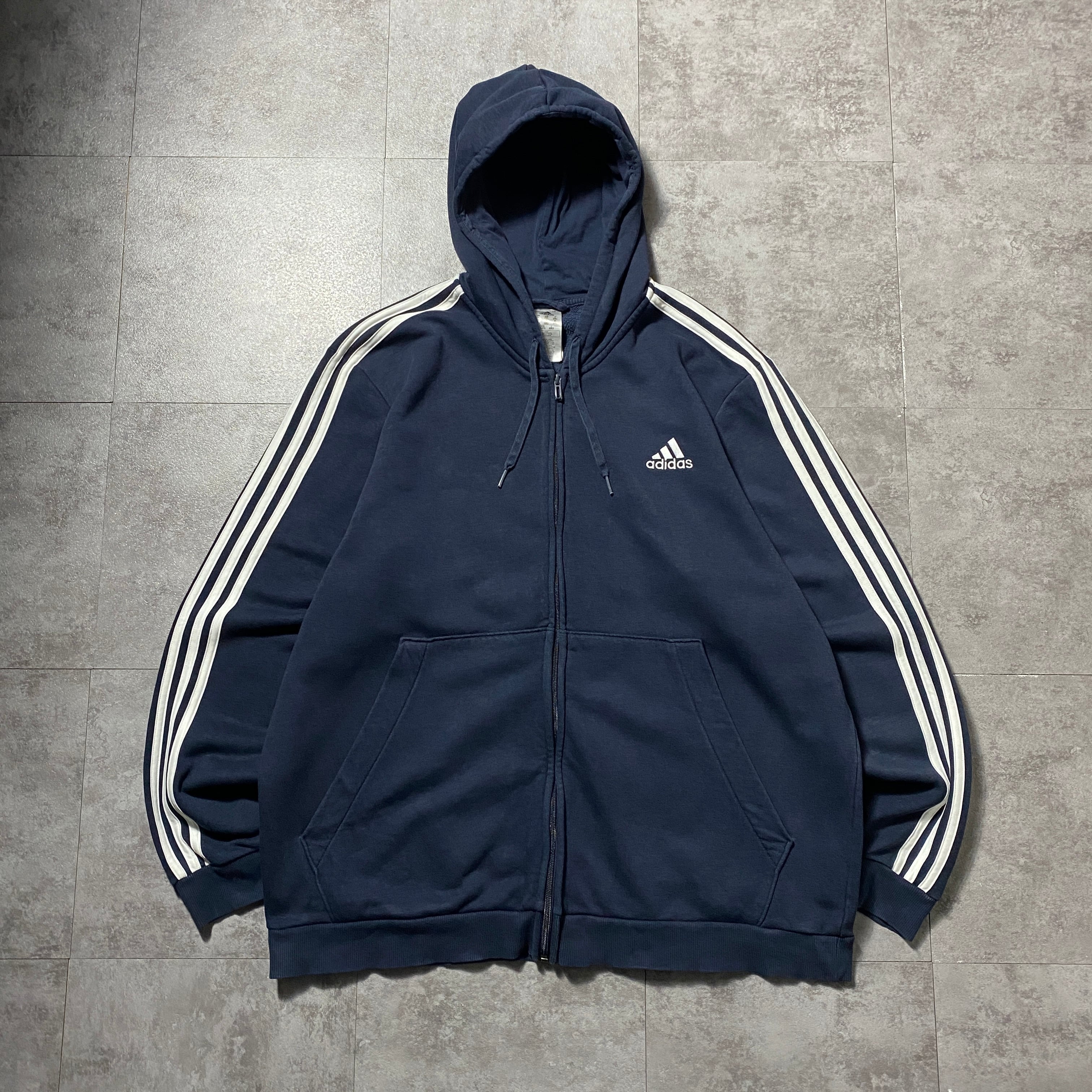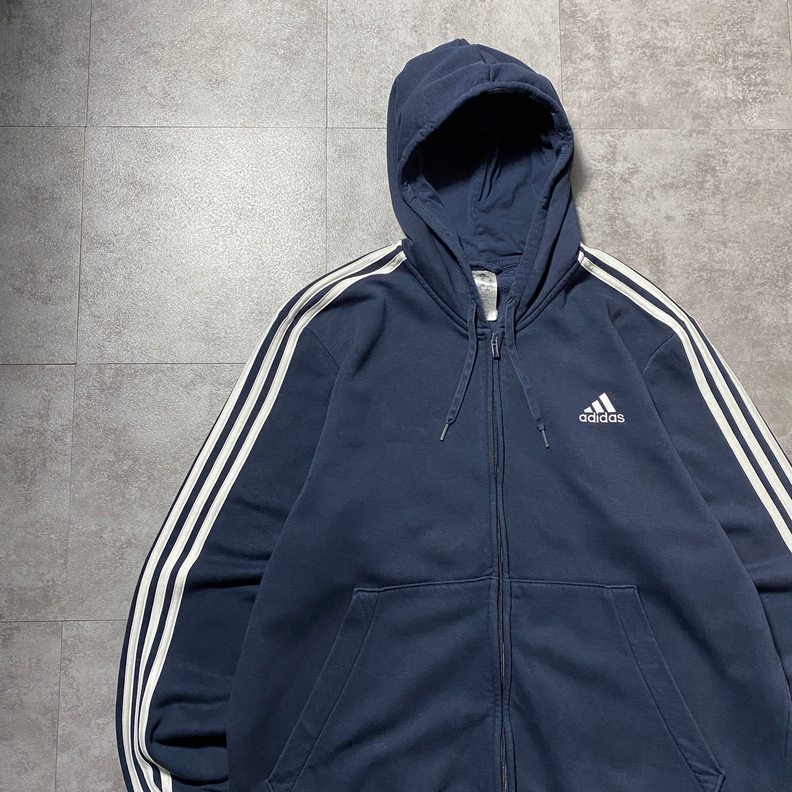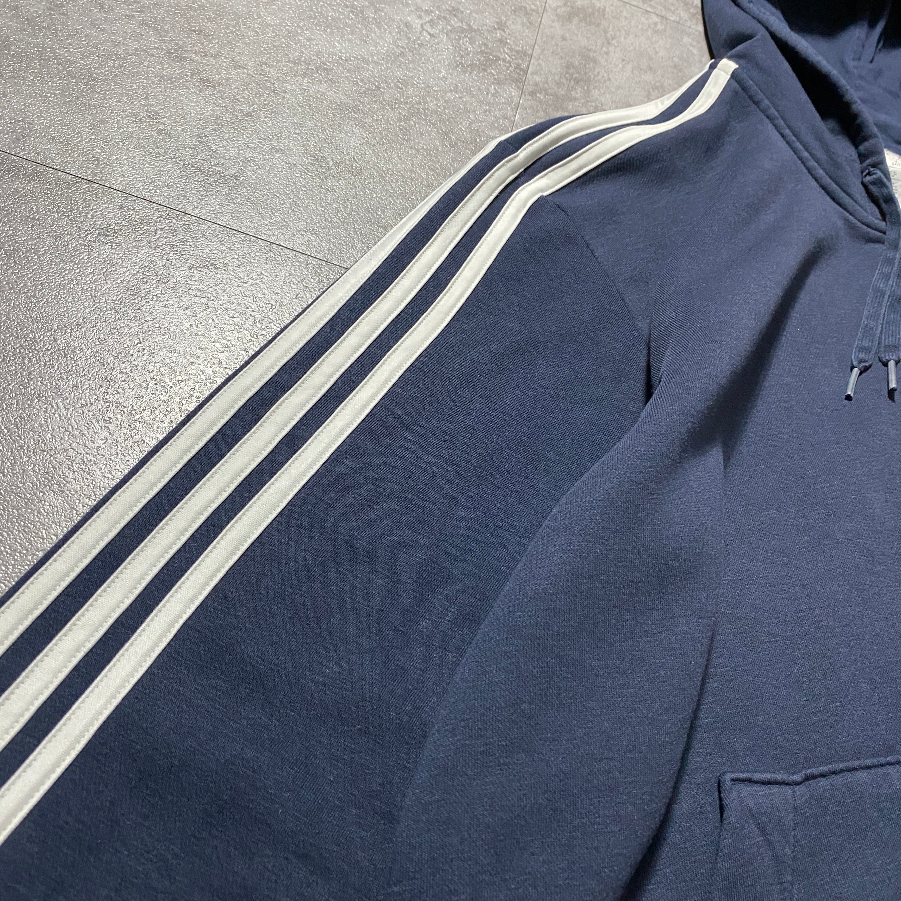 adidas アディダス 刺繍ワンポイント パフォーマンスロゴ サイドストライプ ネイビー ジップパーカー