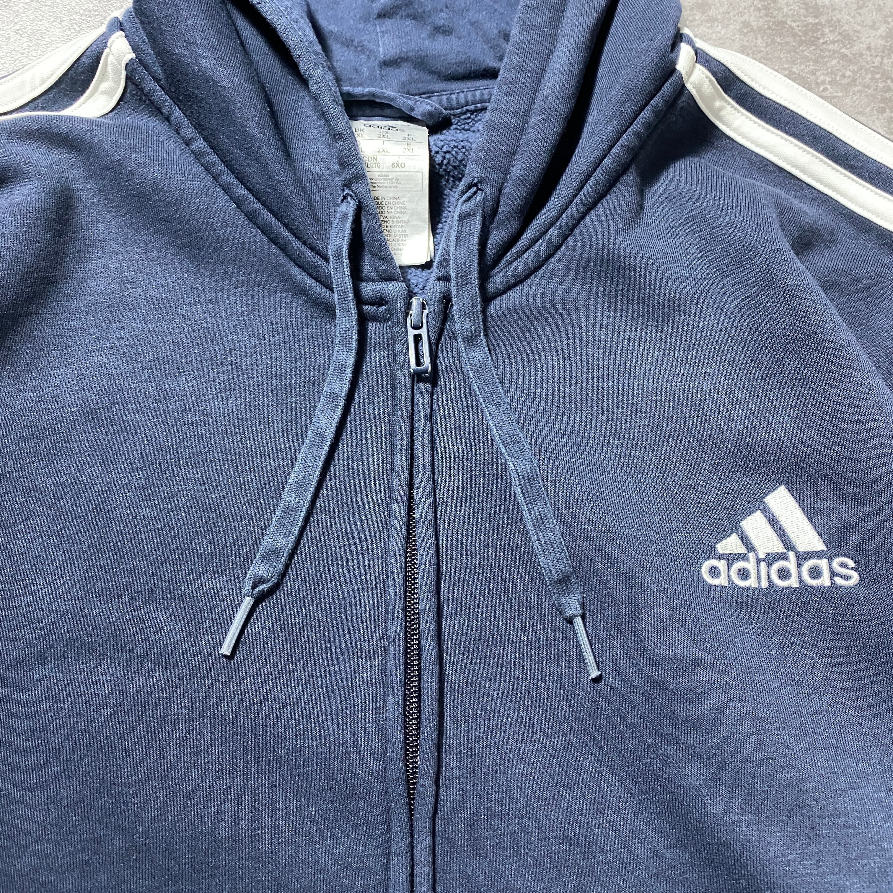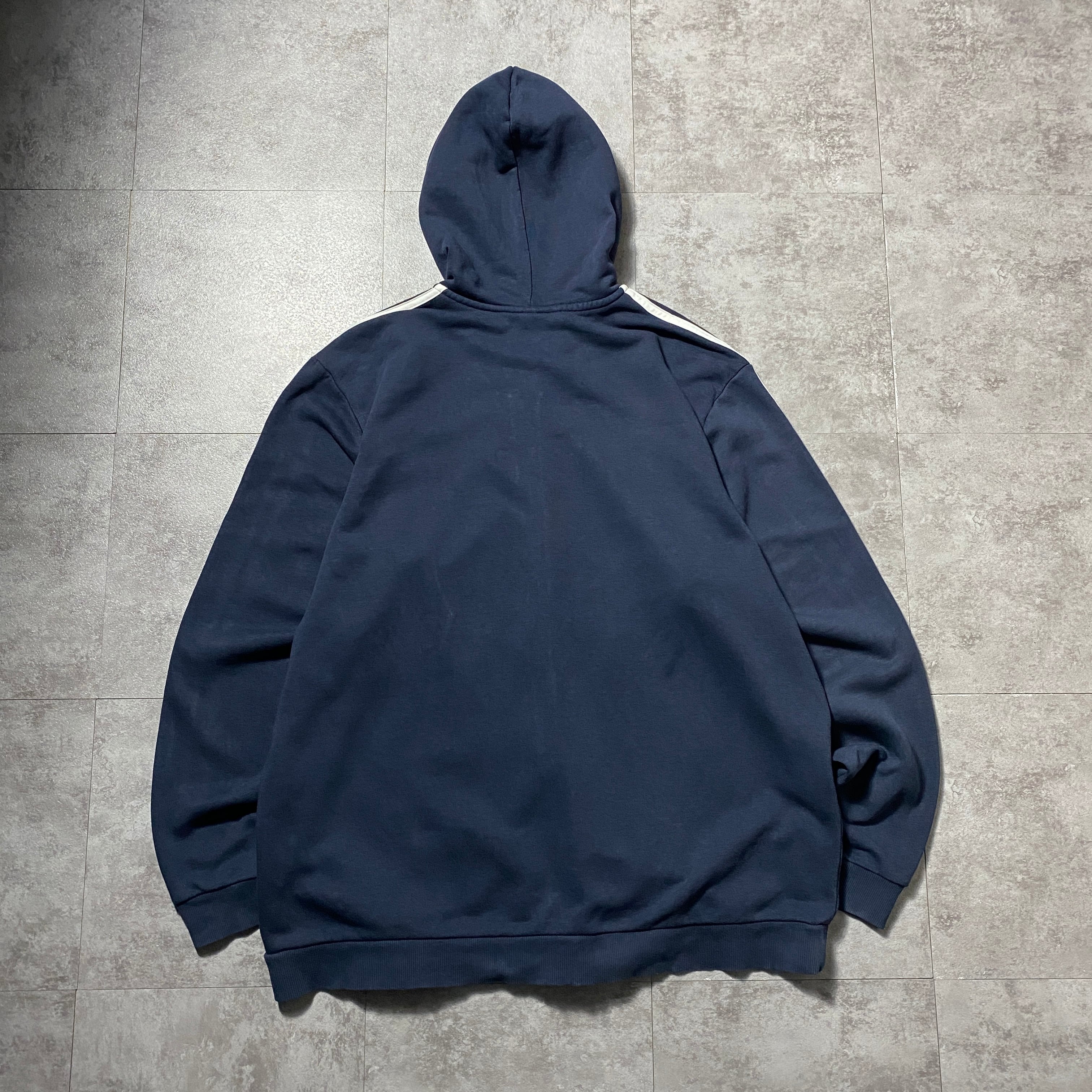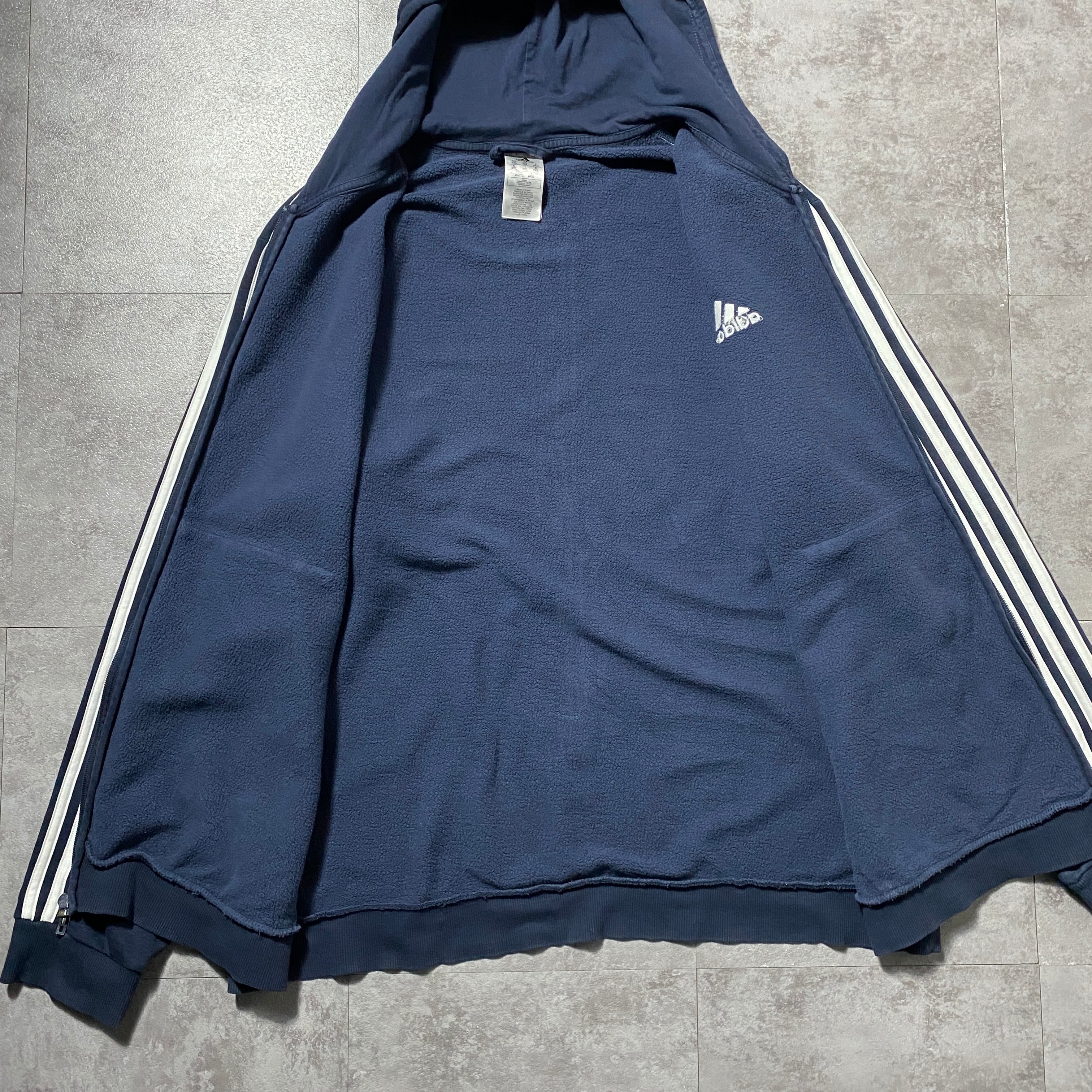 adidas アディダス 刺繍ワンポイント パフォーマンスロゴ サイドストライプ ネイビー ジップパーカー