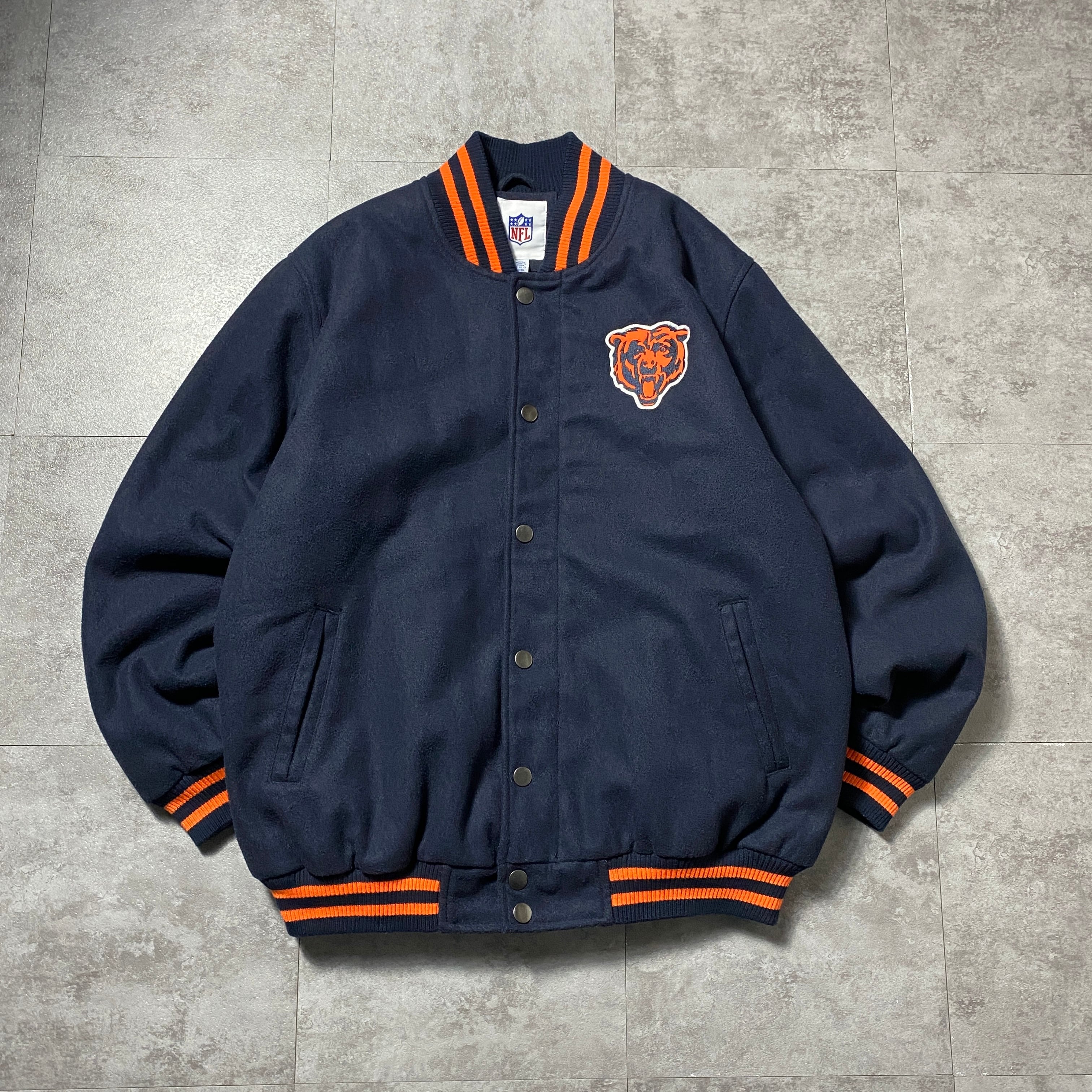 【Size.XL】NFL BEARS ワッペン ラインリブ バックロゴ ウール 中綿 スタジャン