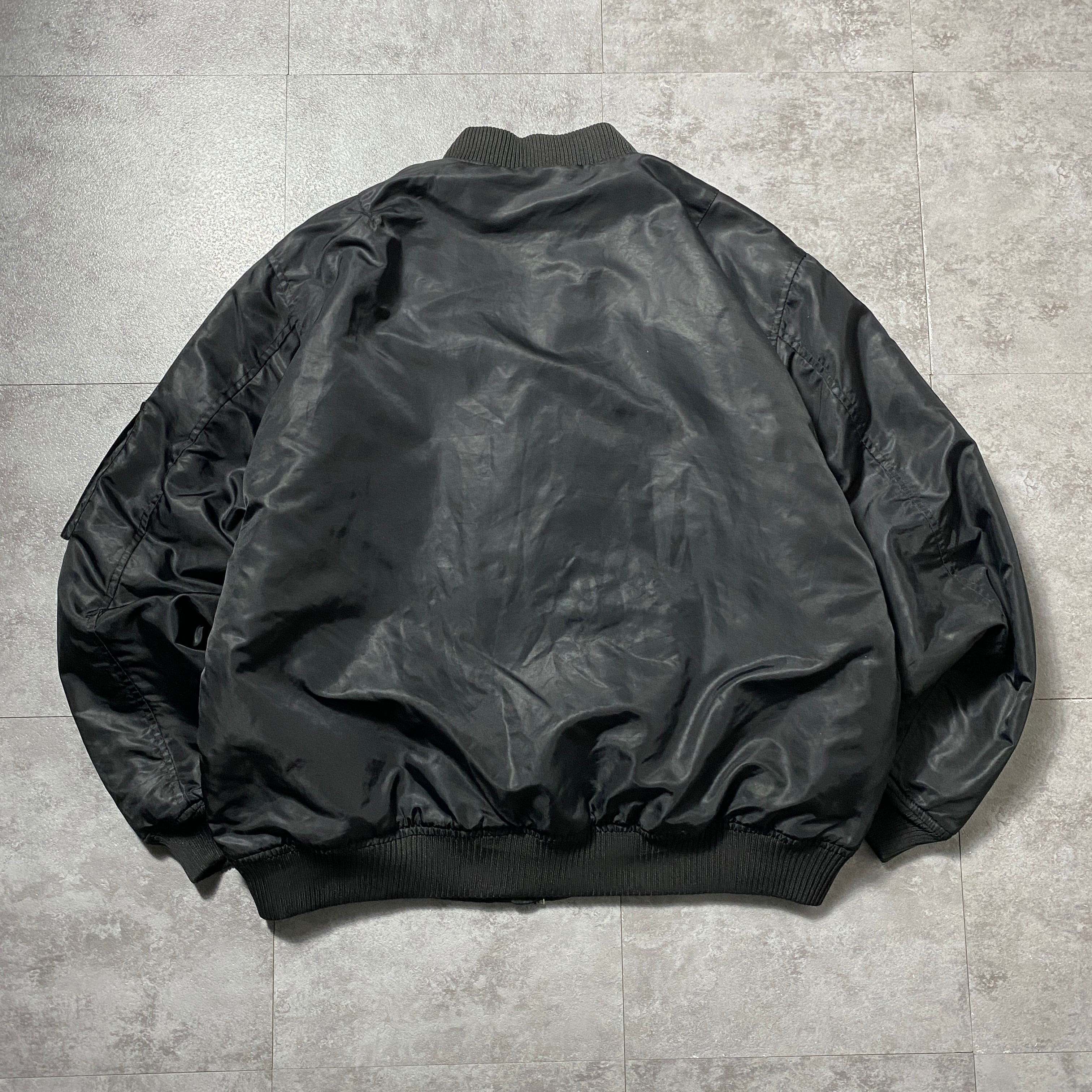 【Size.XL】90's Hard yakka CAT 刺繍企業ロゴ 中綿 ブラック MA-1ジャケット ボンバージャケット
