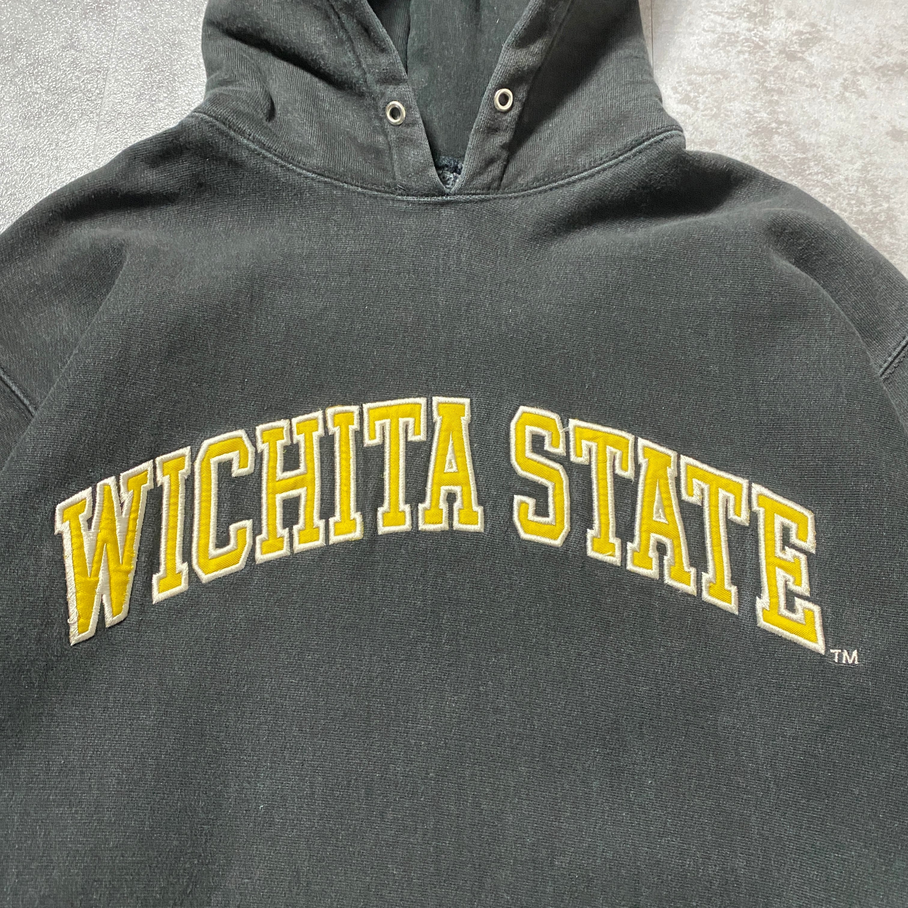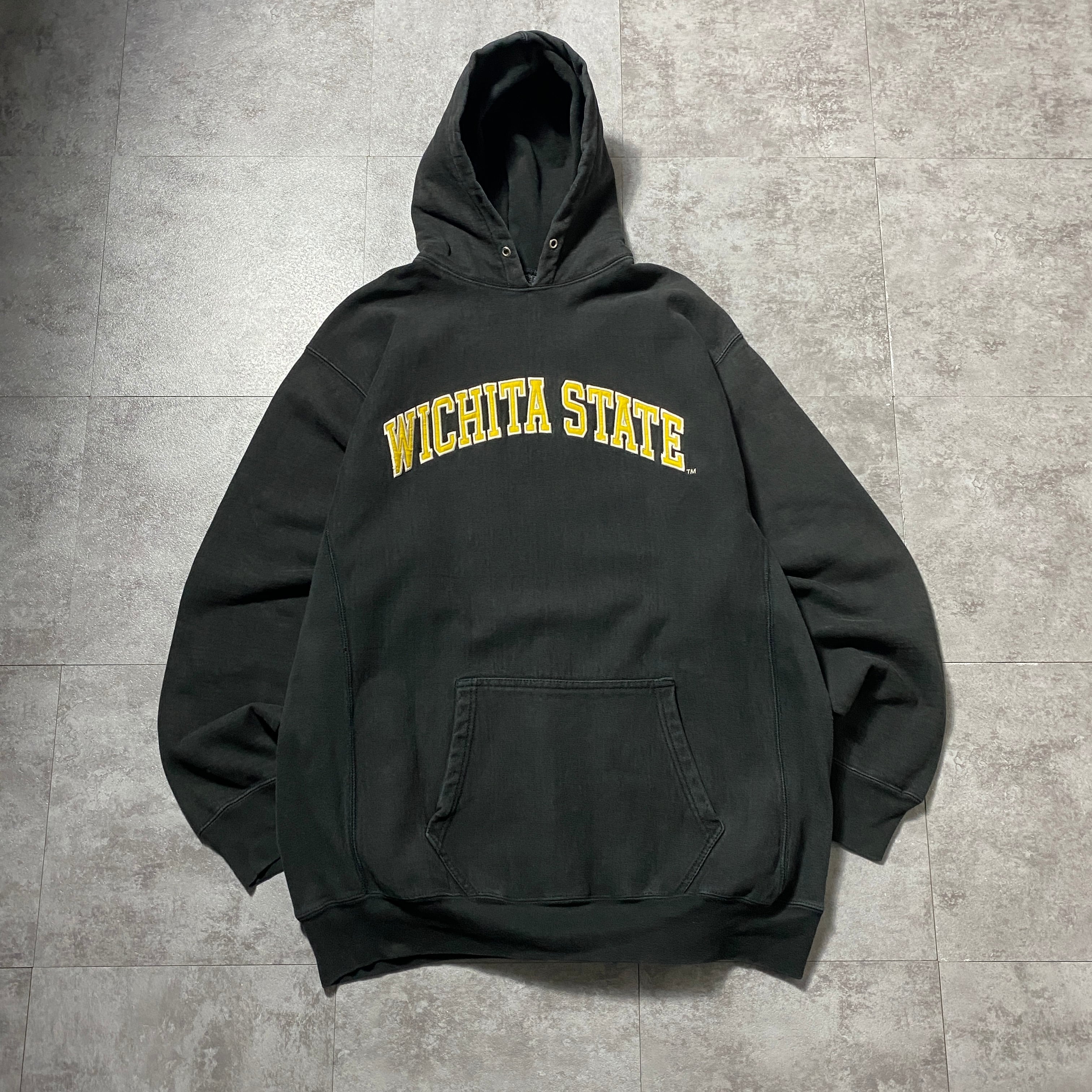 【Size.XL】90's STEVE&BARRY'S スティーブアンドバリーズ リバースウィーブ ウィチタ大学 カレッジロゴ ブラック スウェット パーカー