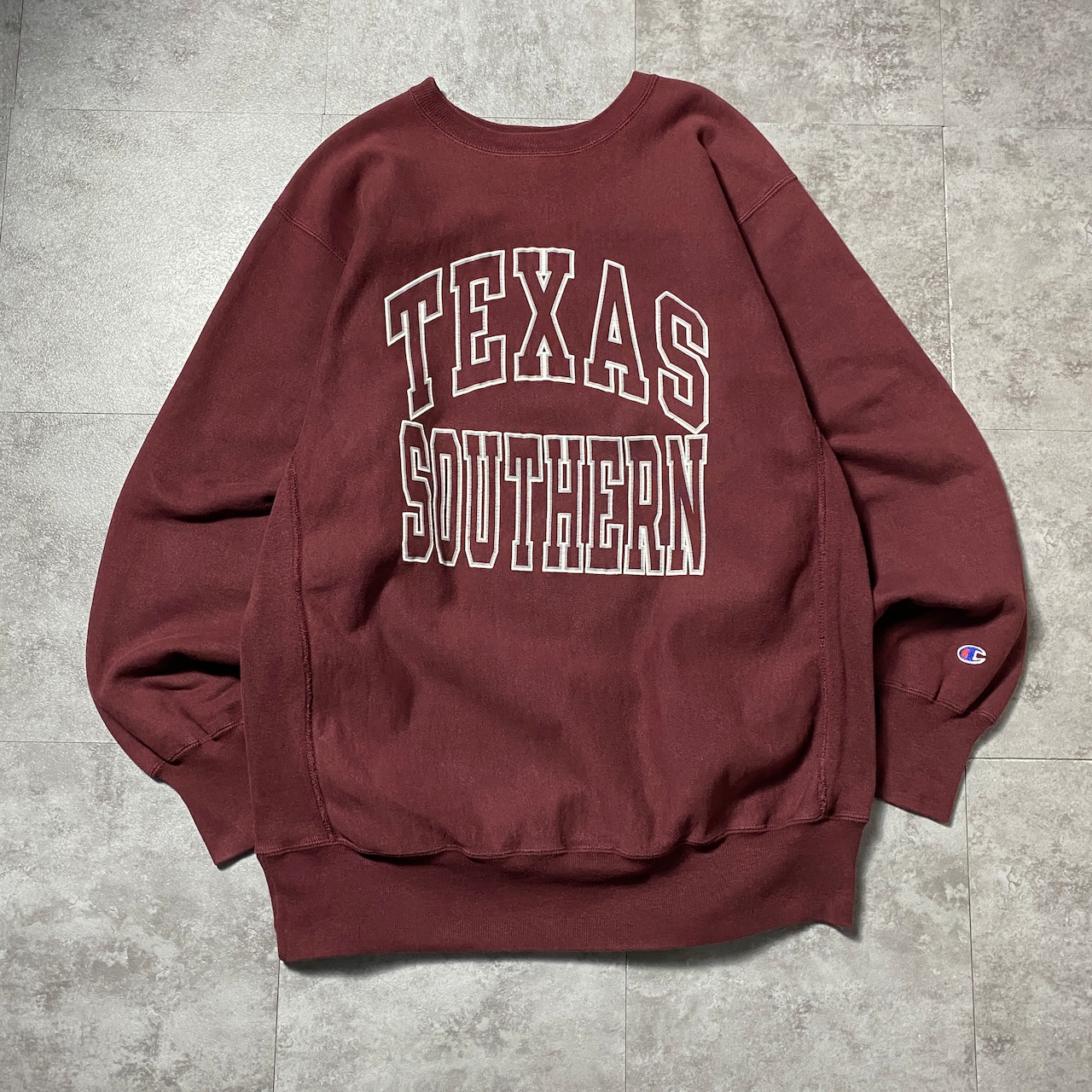 90's Champion reverse weave チャンピオン リバースウィーブ 刺繍タグ テキサスサザン大学 カレッジロゴ 2段プリント ワインレッド スウェット パーカー