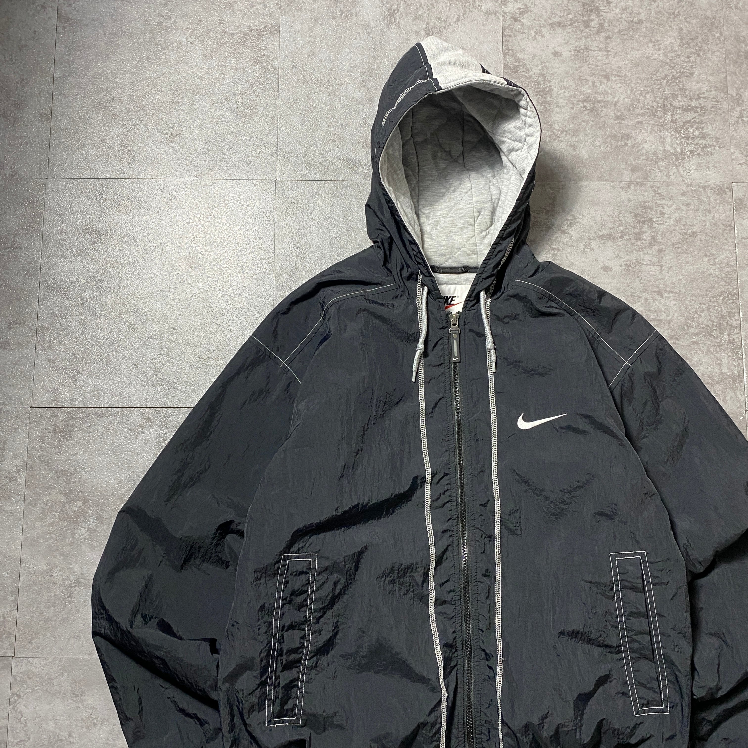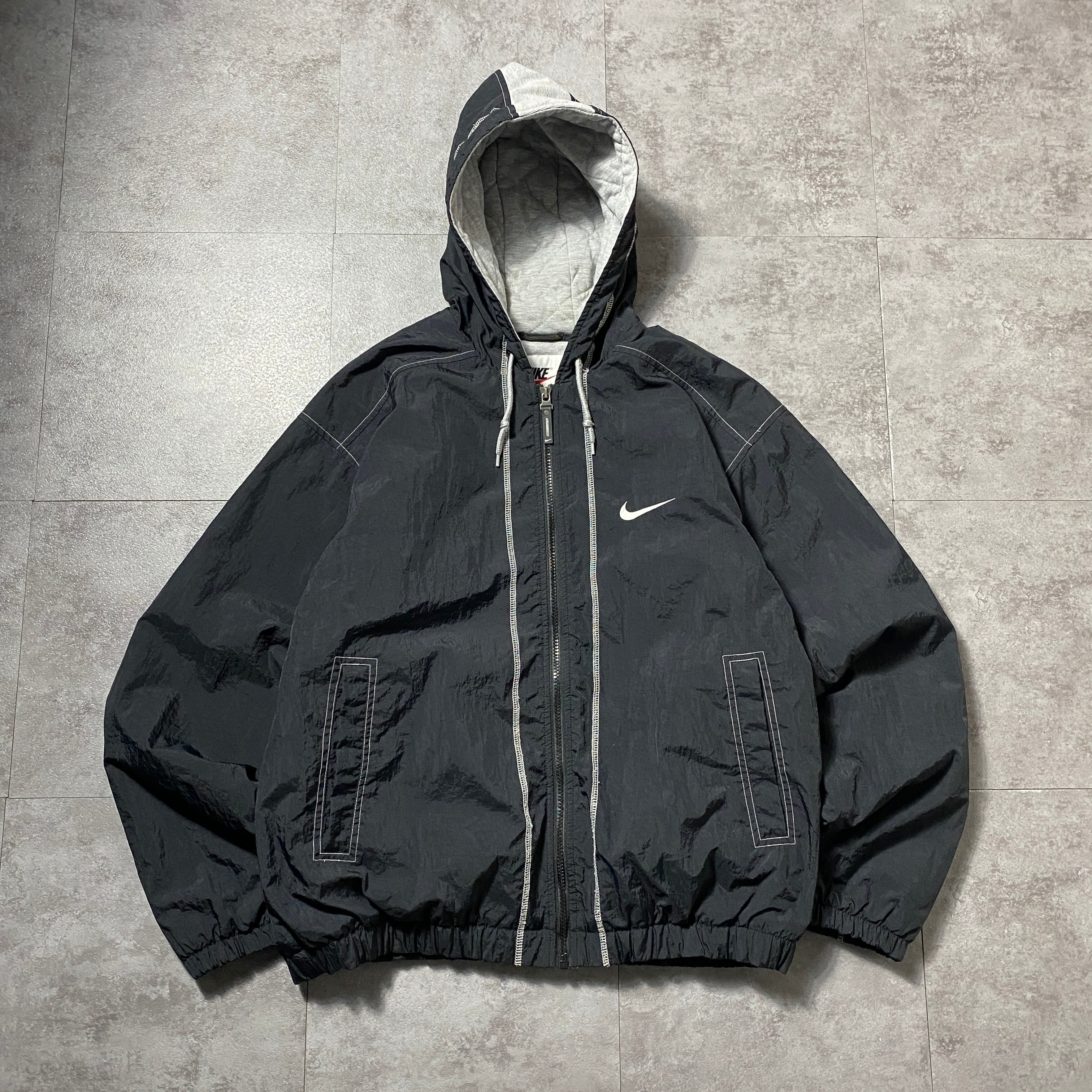 90's NIKE ナイキ スウォッシュ 刺繍ワンポイント バックロゴ ブラック 中綿 ナイロンジャケット