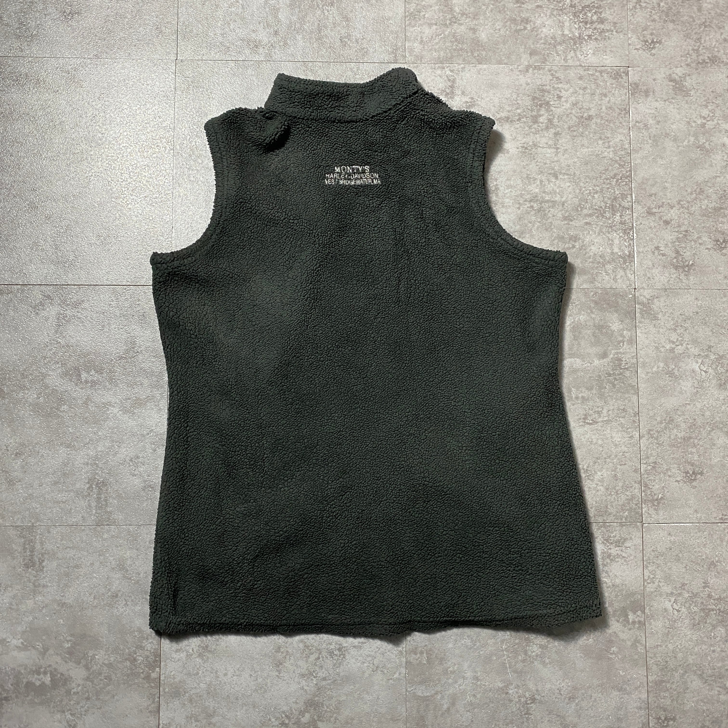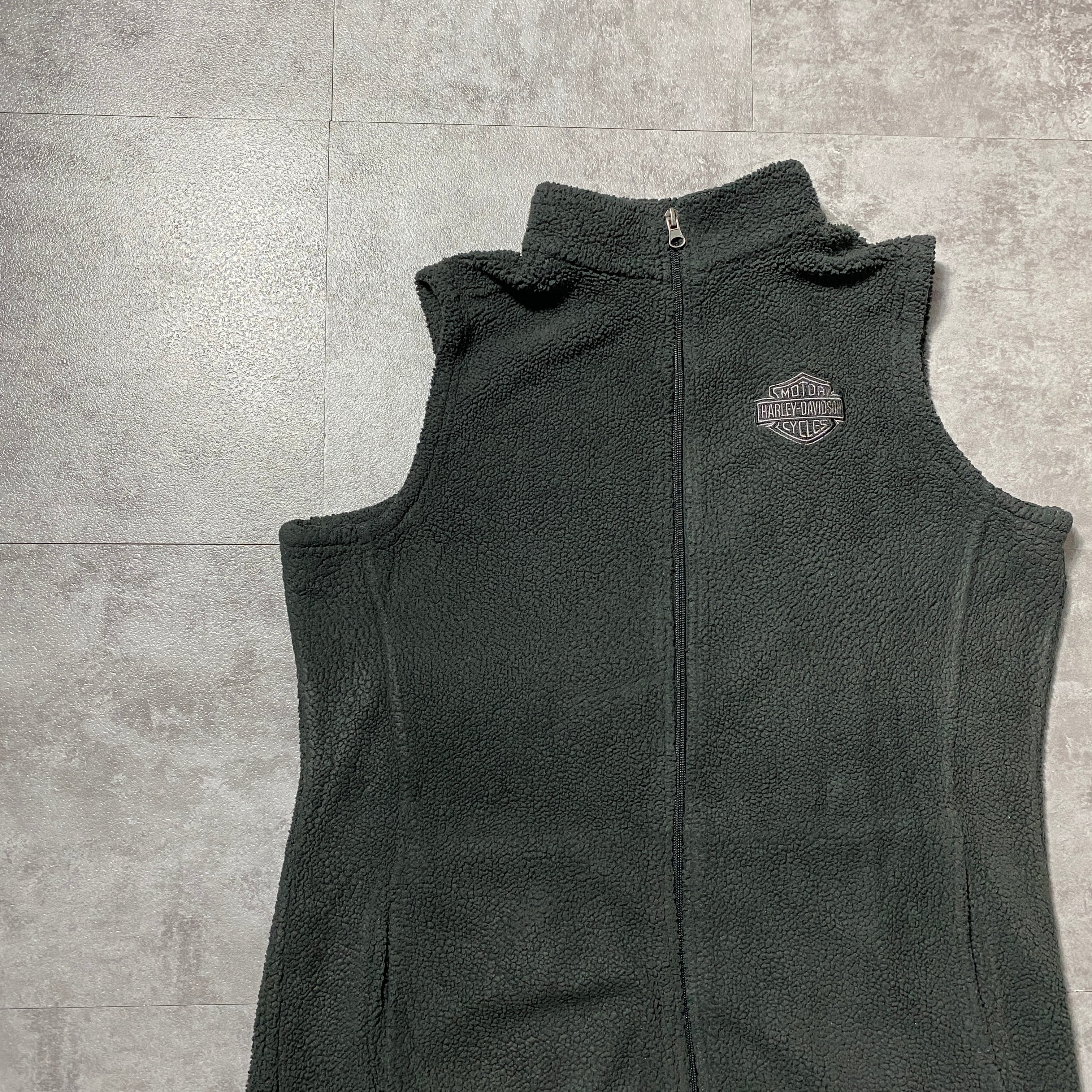Harley-Davidson ハーレーダビッドソン 刺繍ワンポイント ダークグレー ボアフリースベスト