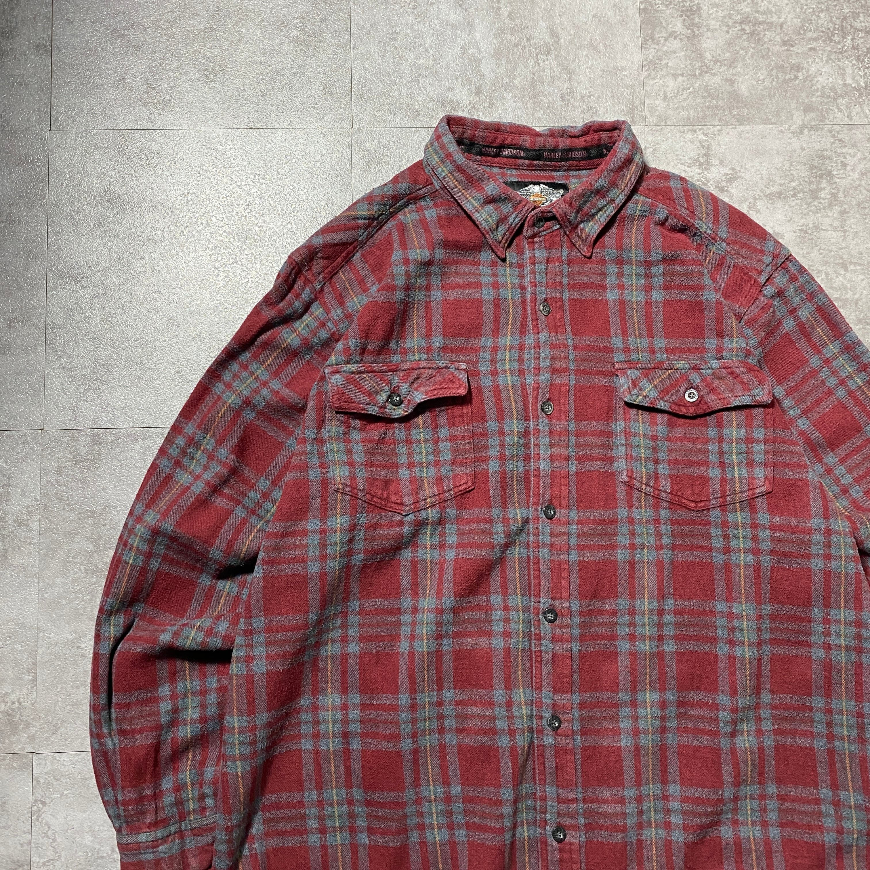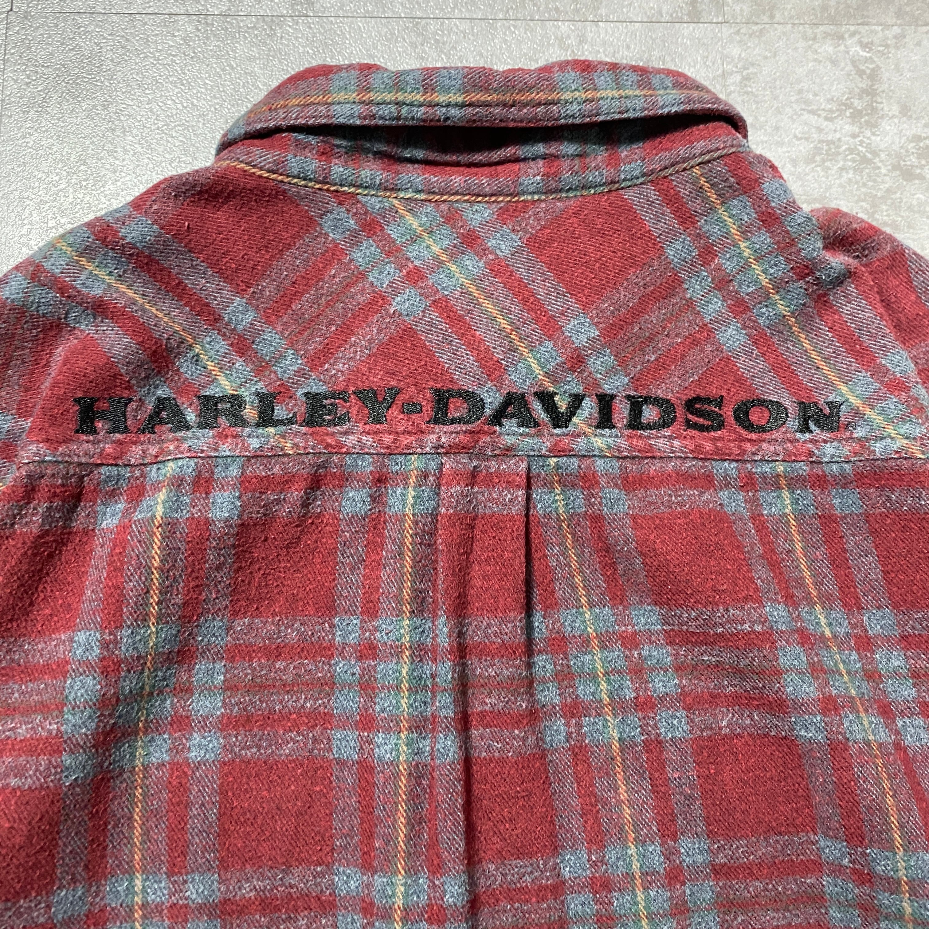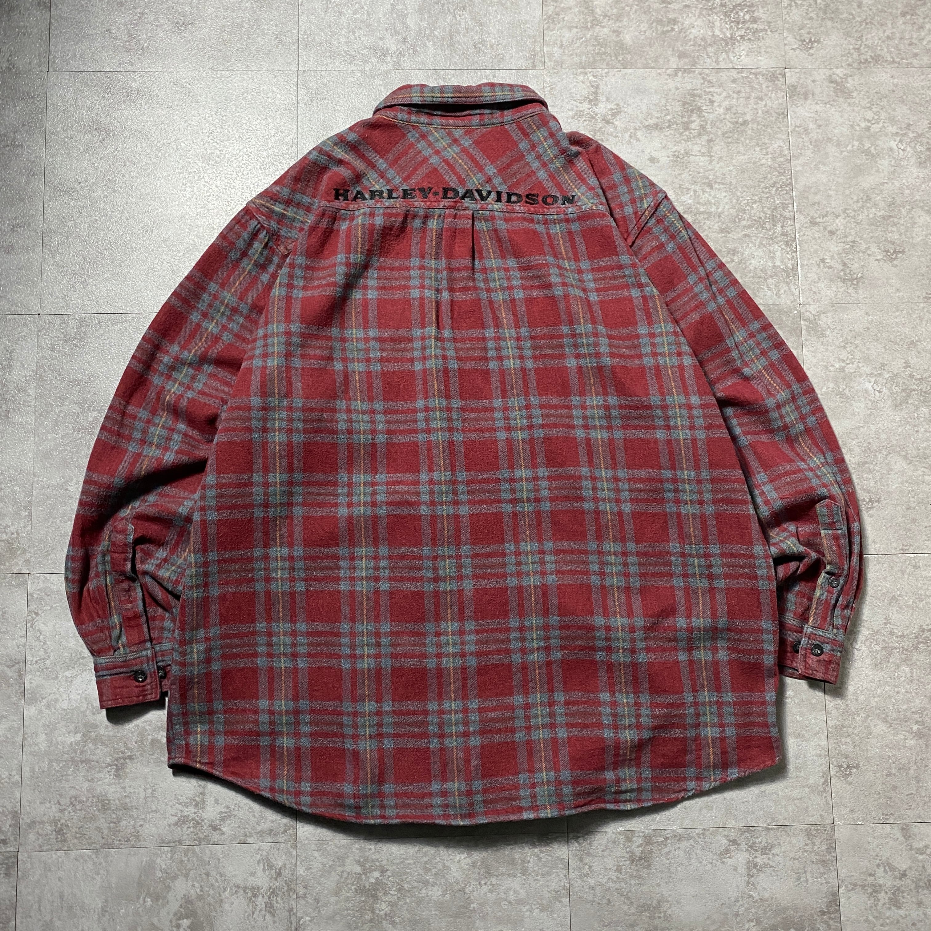 Harley-Davidson ハーレーダビッドソン 刺繍バックロゴ 2XLサイズ チェック ヘビーネル フランネルシャツ