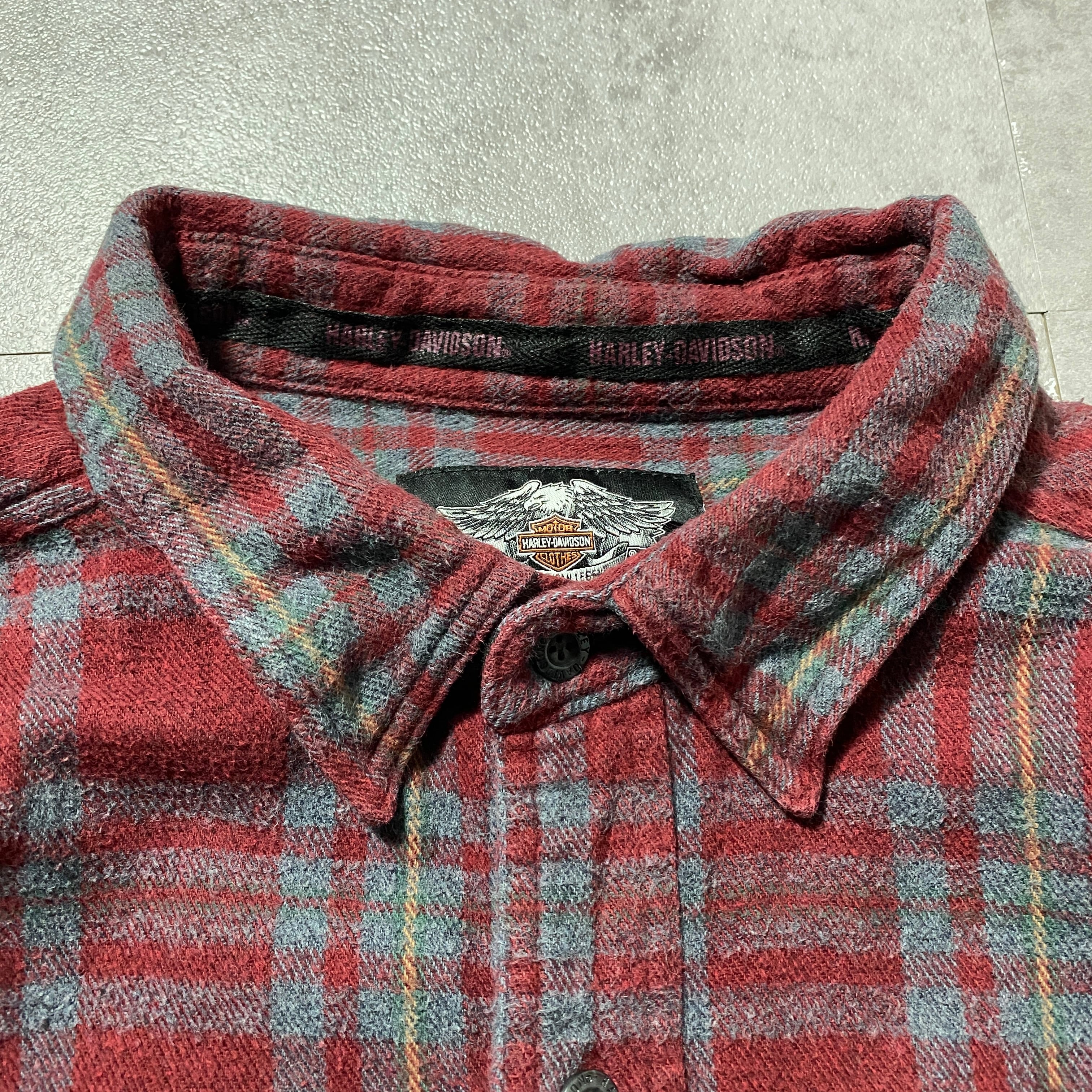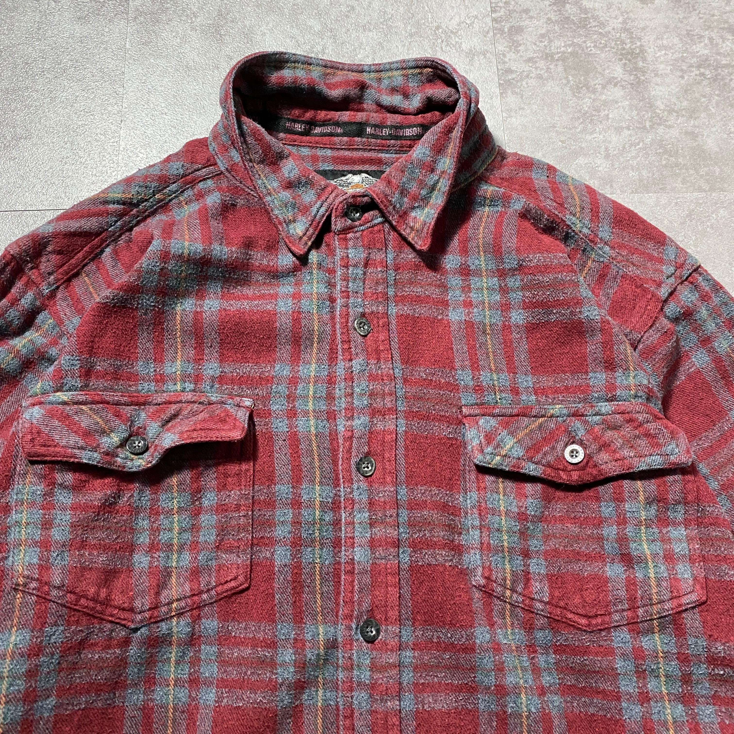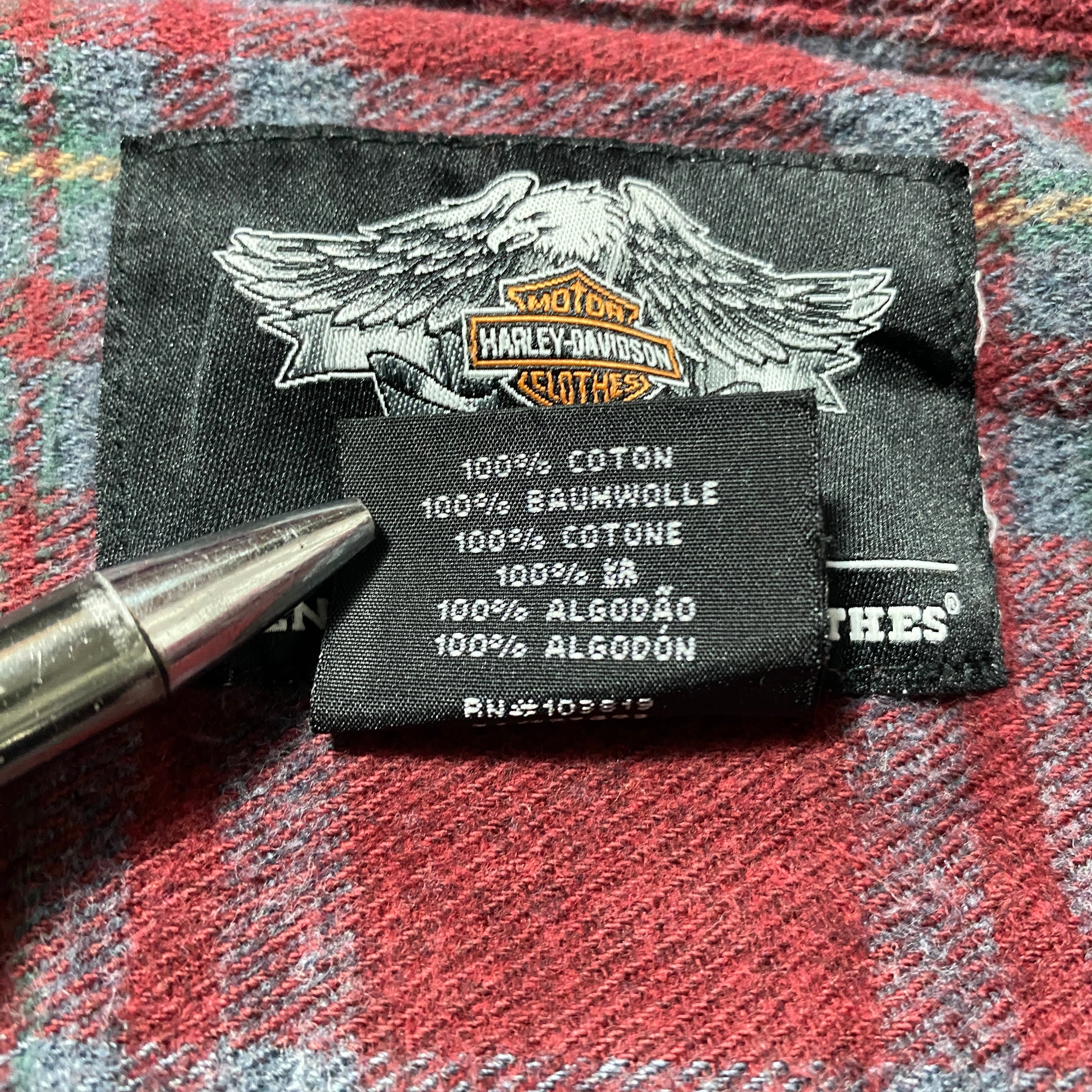Harley-Davidson ハーレーダビッドソン 刺繍バックロゴ 2XLサイズ チェック ヘビーネル フランネルシャツ