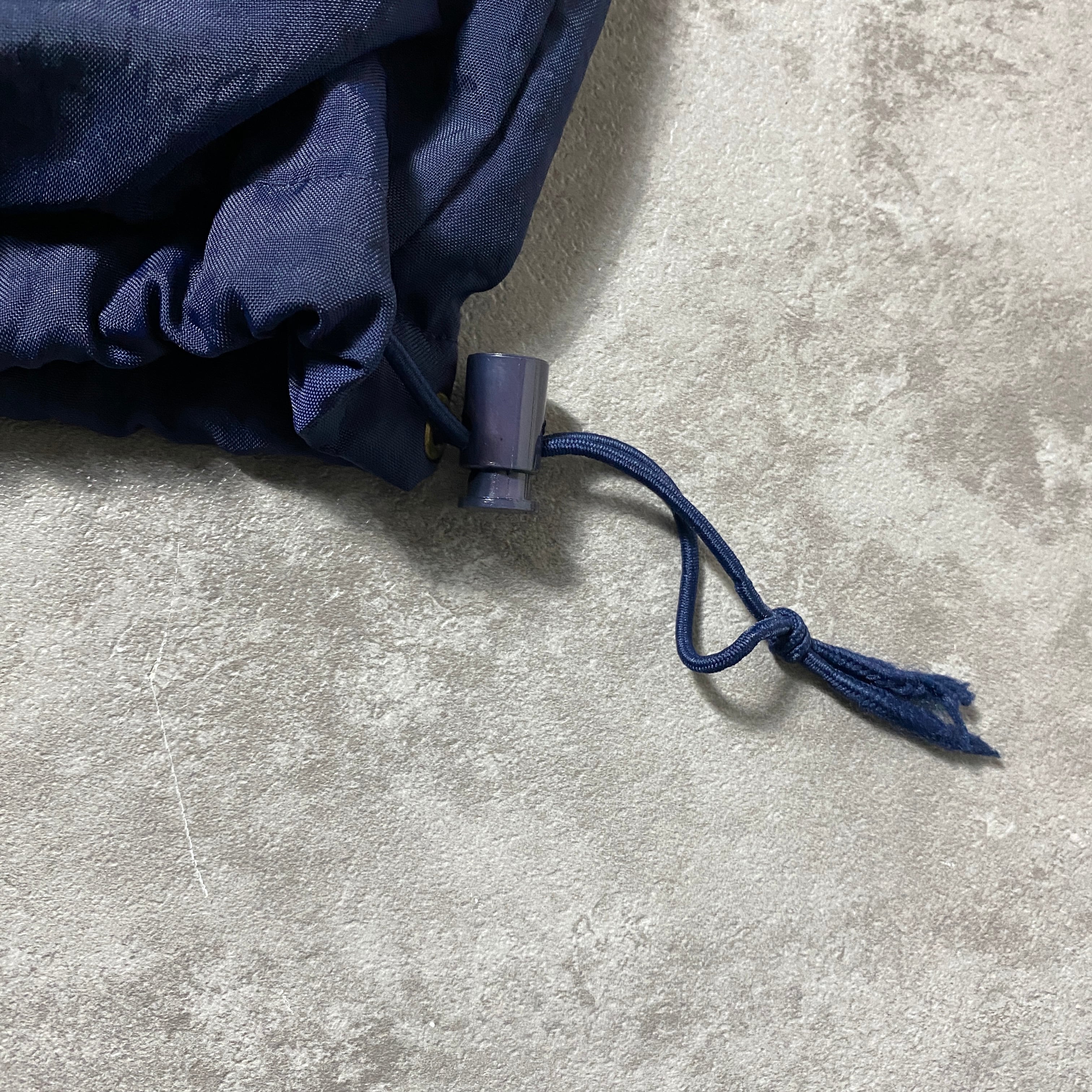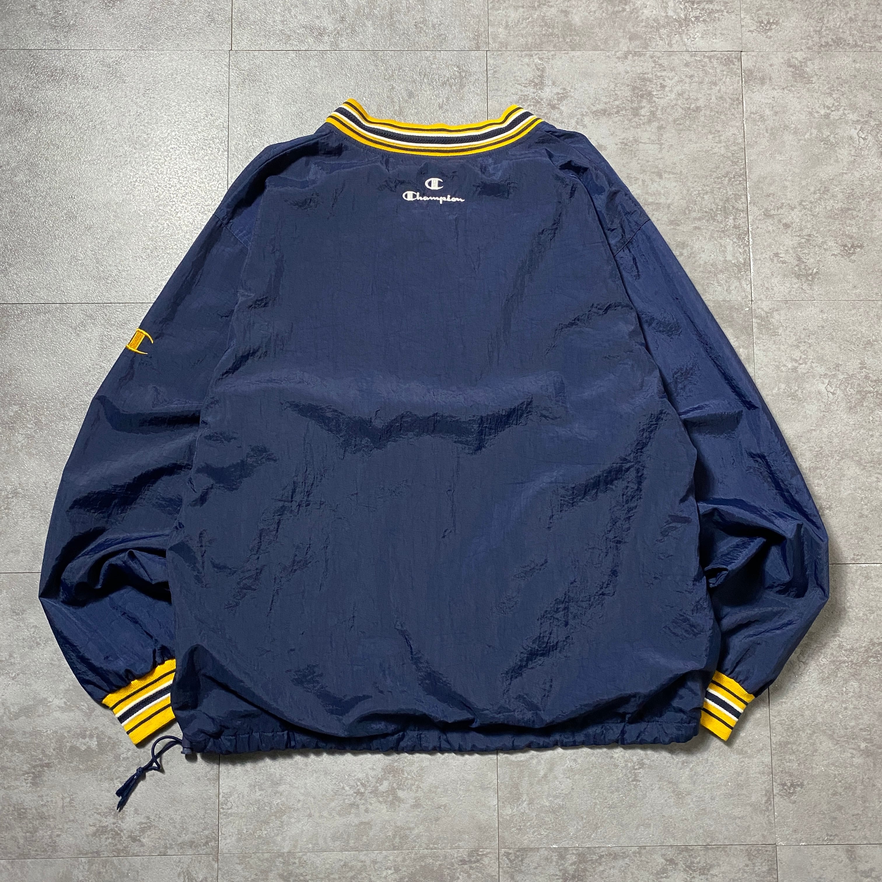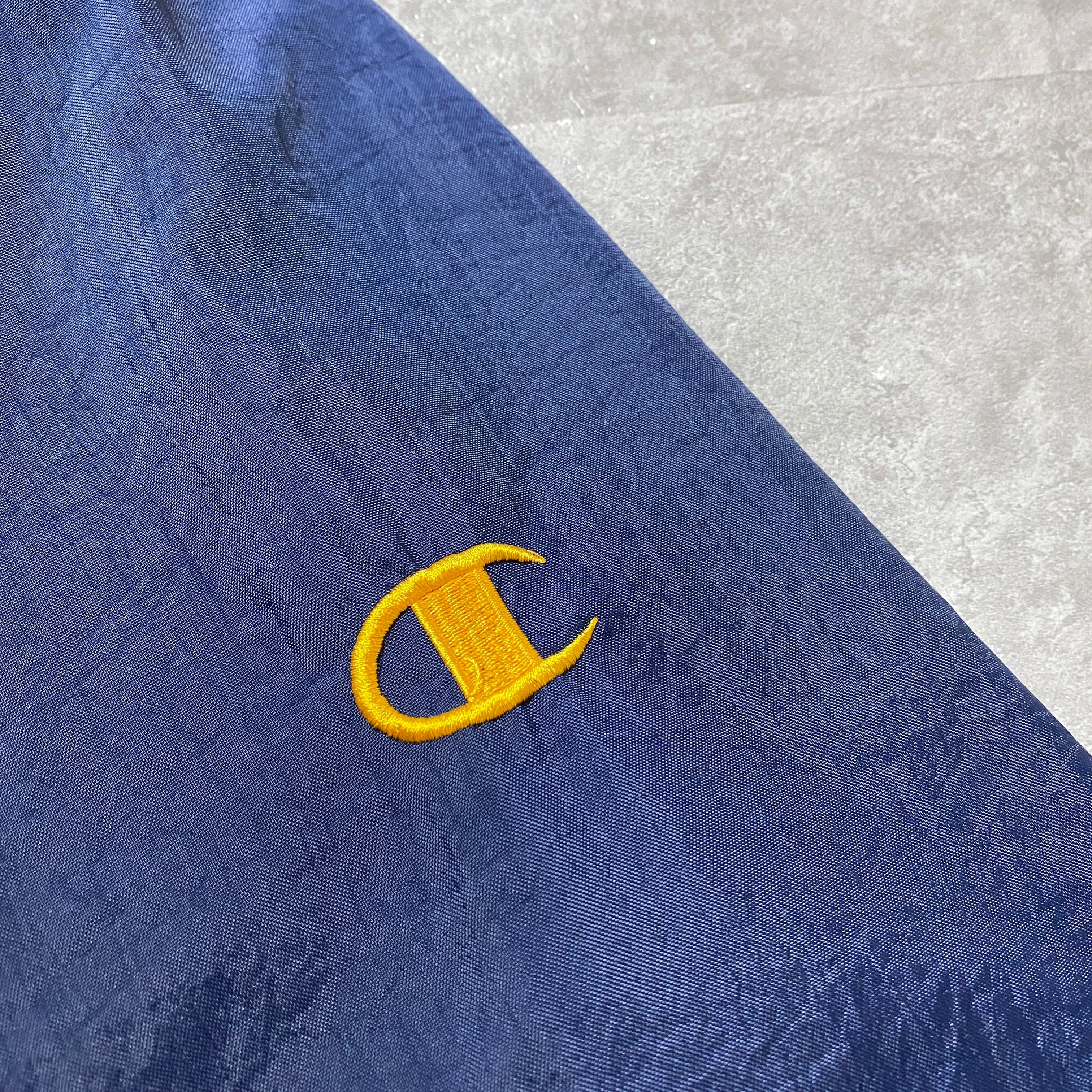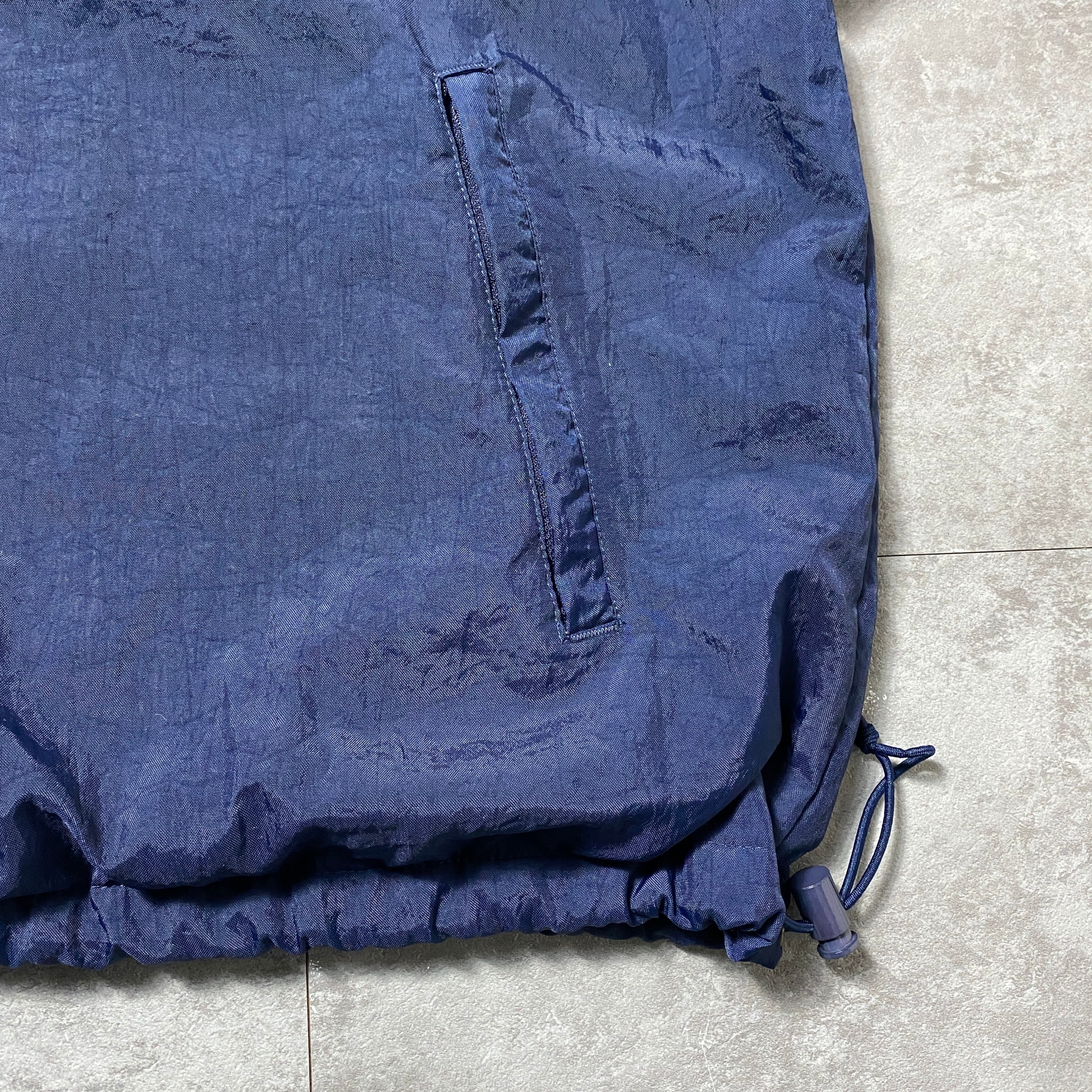 90's Champion チャンピオン 刺繍ワンポイント 企業ロゴ ラインリブ ネイビー ナイロンプルオーバー