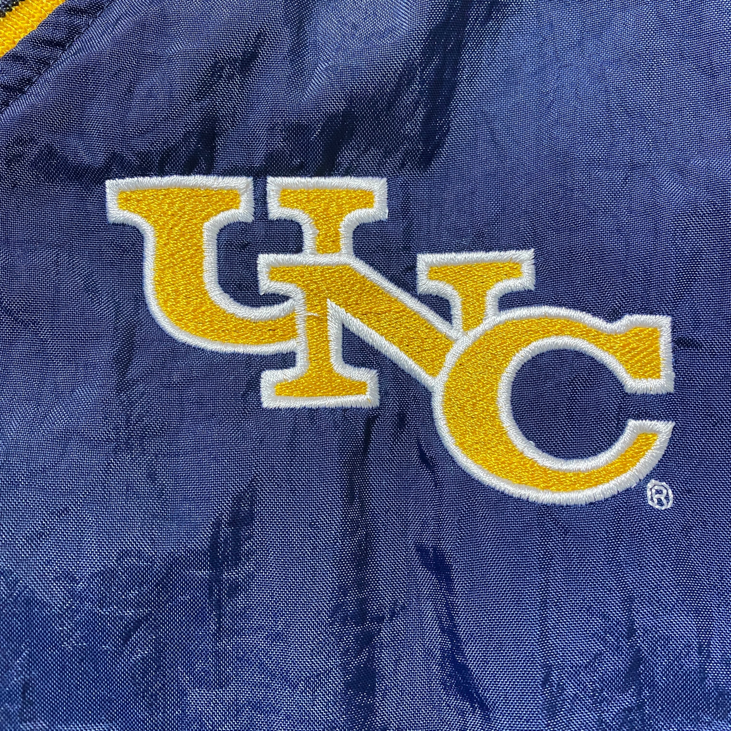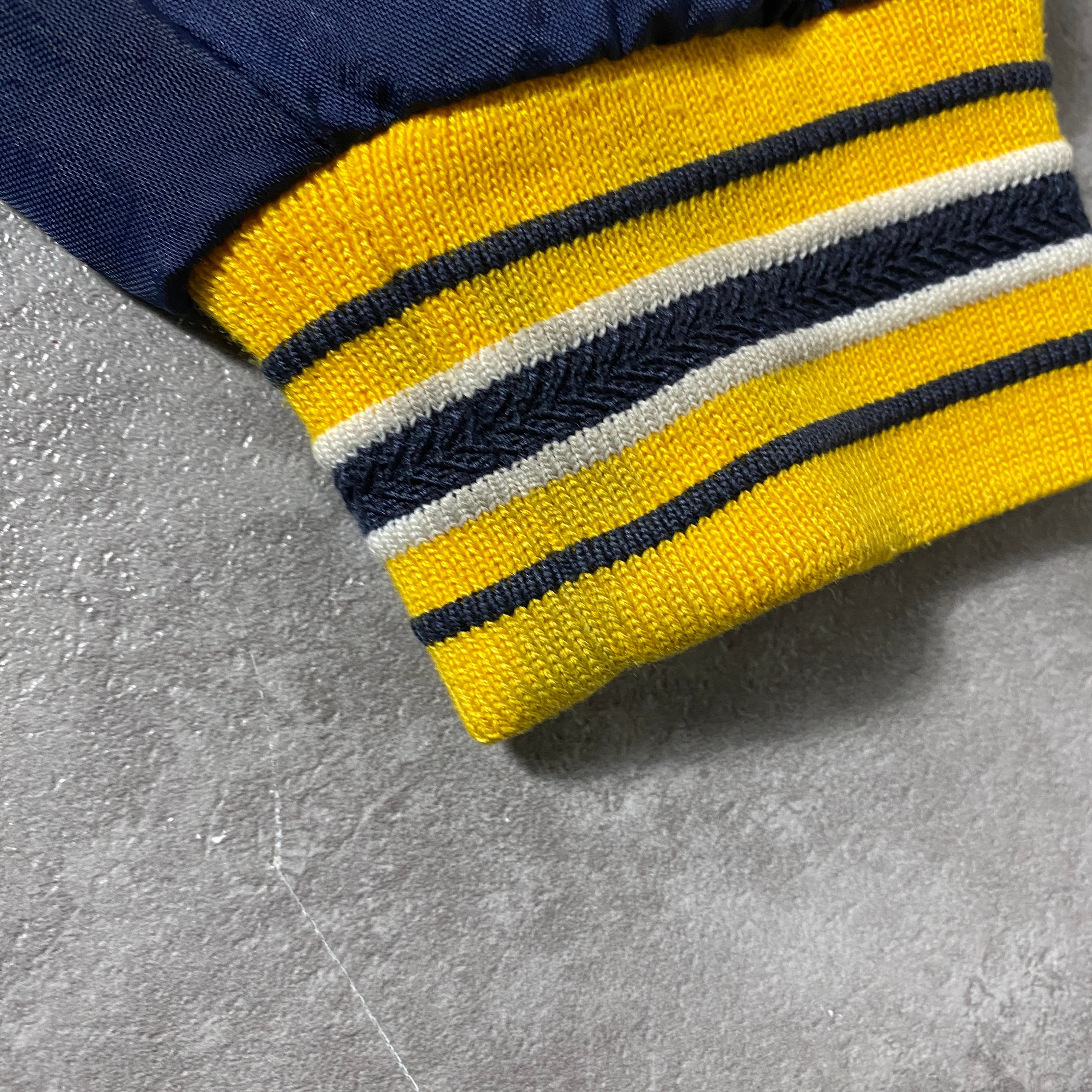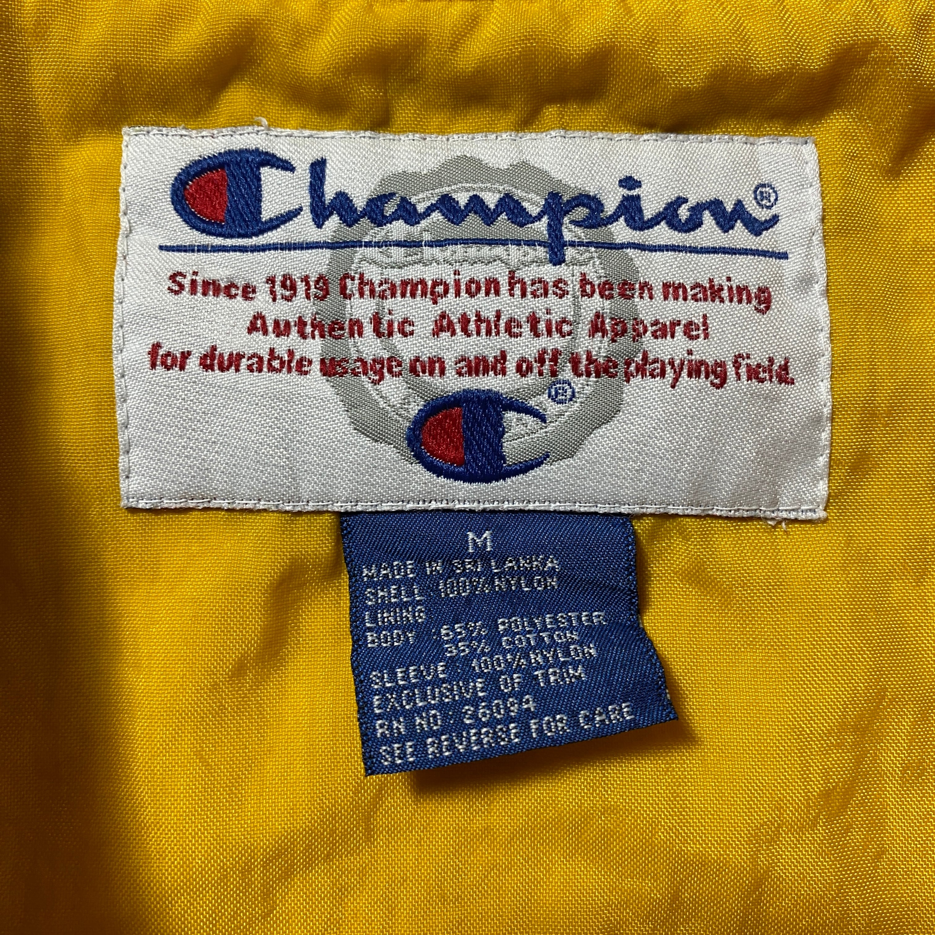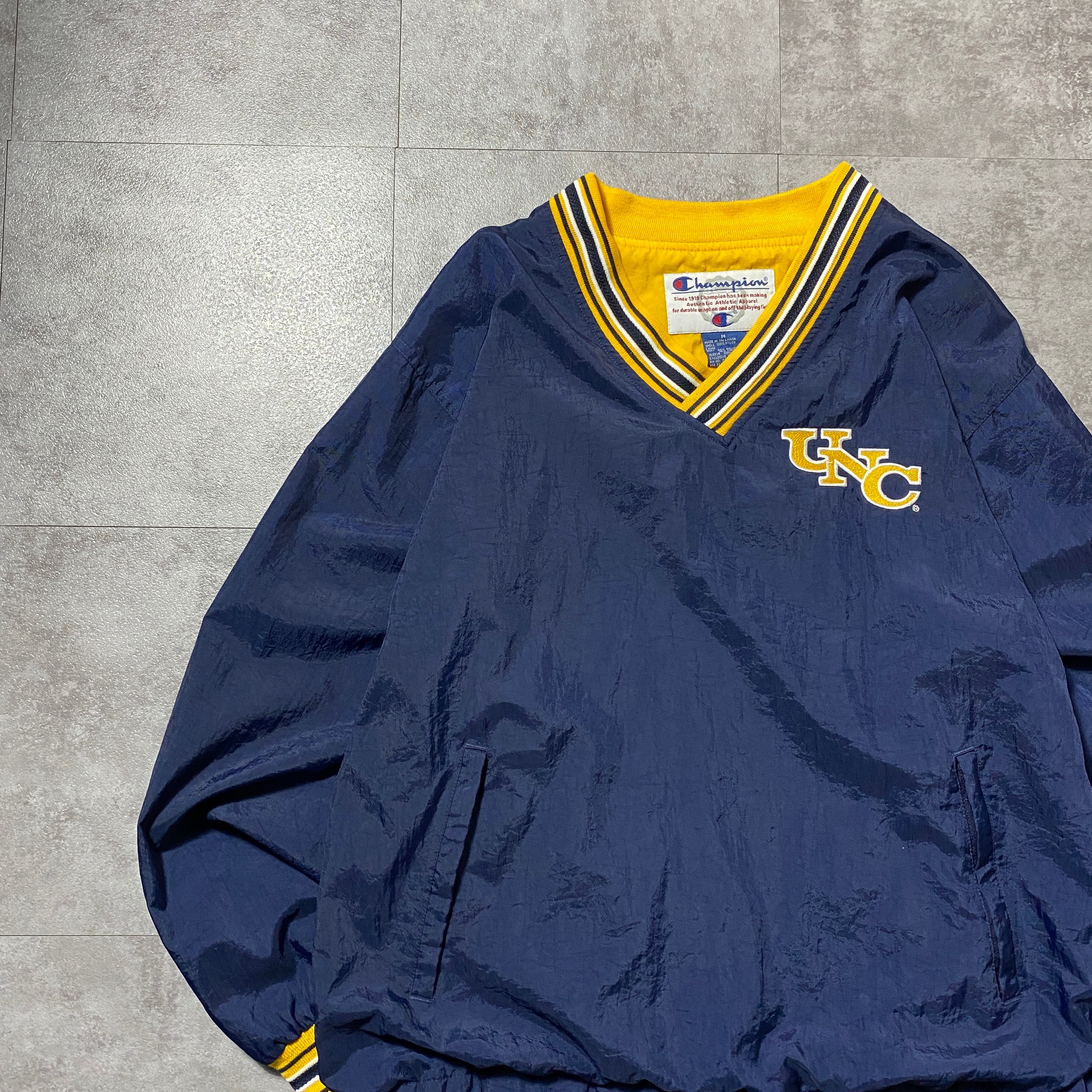 90's Champion チャンピオン 刺繍ワンポイント 企業ロゴ ラインリブ ネイビー ナイロンプルオーバー