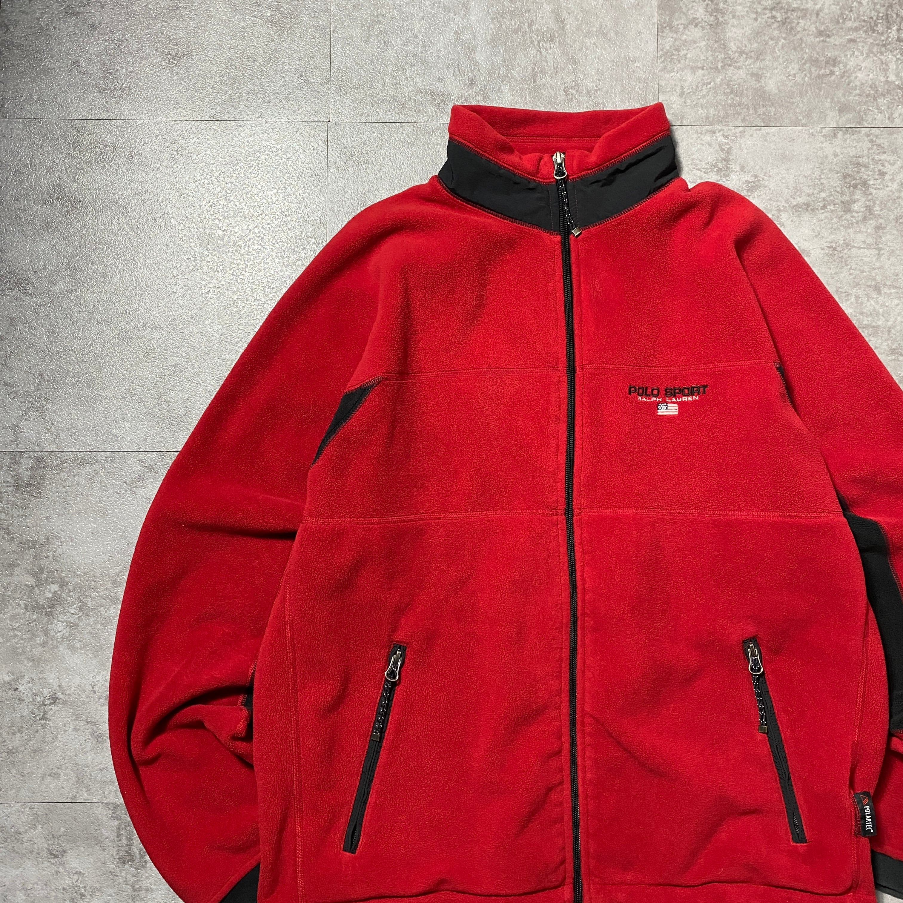 90's POLO SPORT ラルフローレン ポロスポーツ 刺繍ワンポイント バックロゴ レッド 赤 フリースジャケット