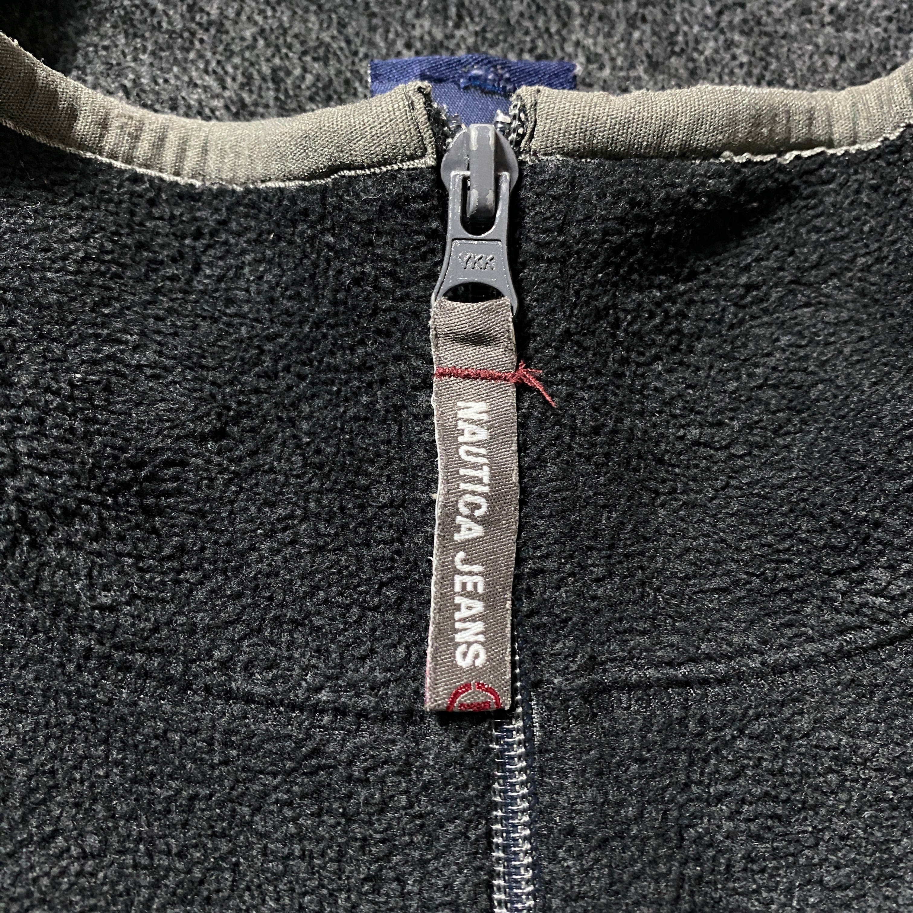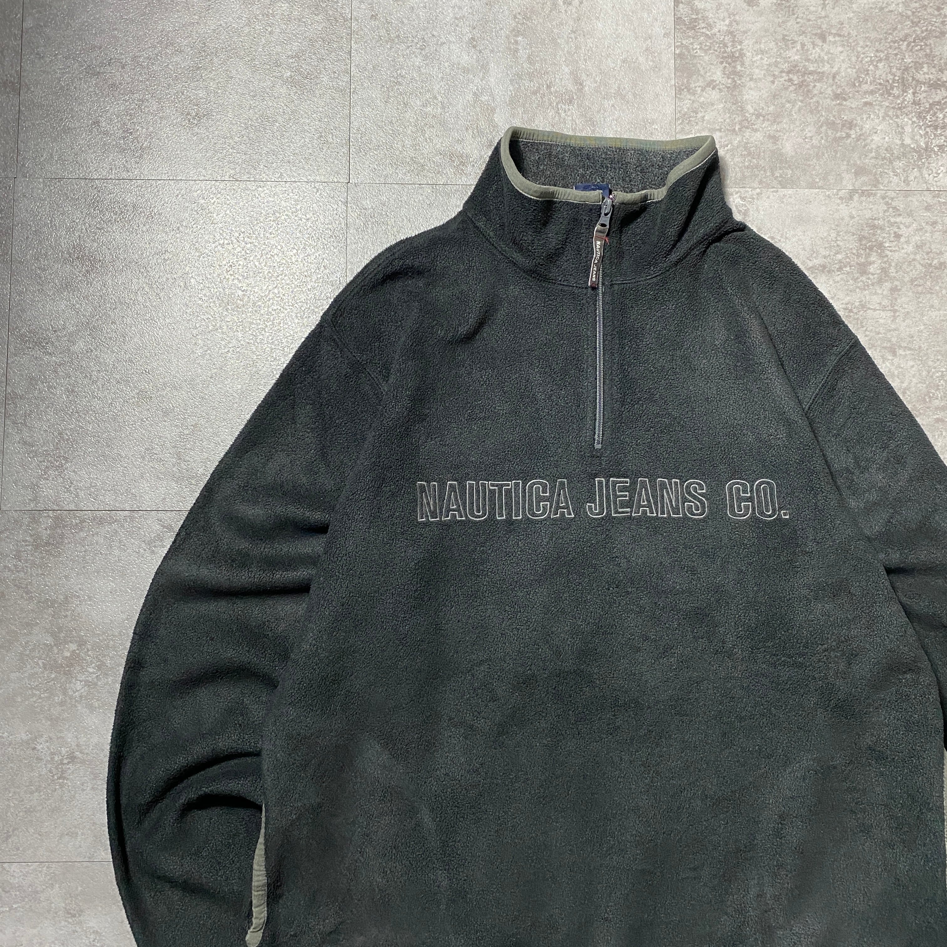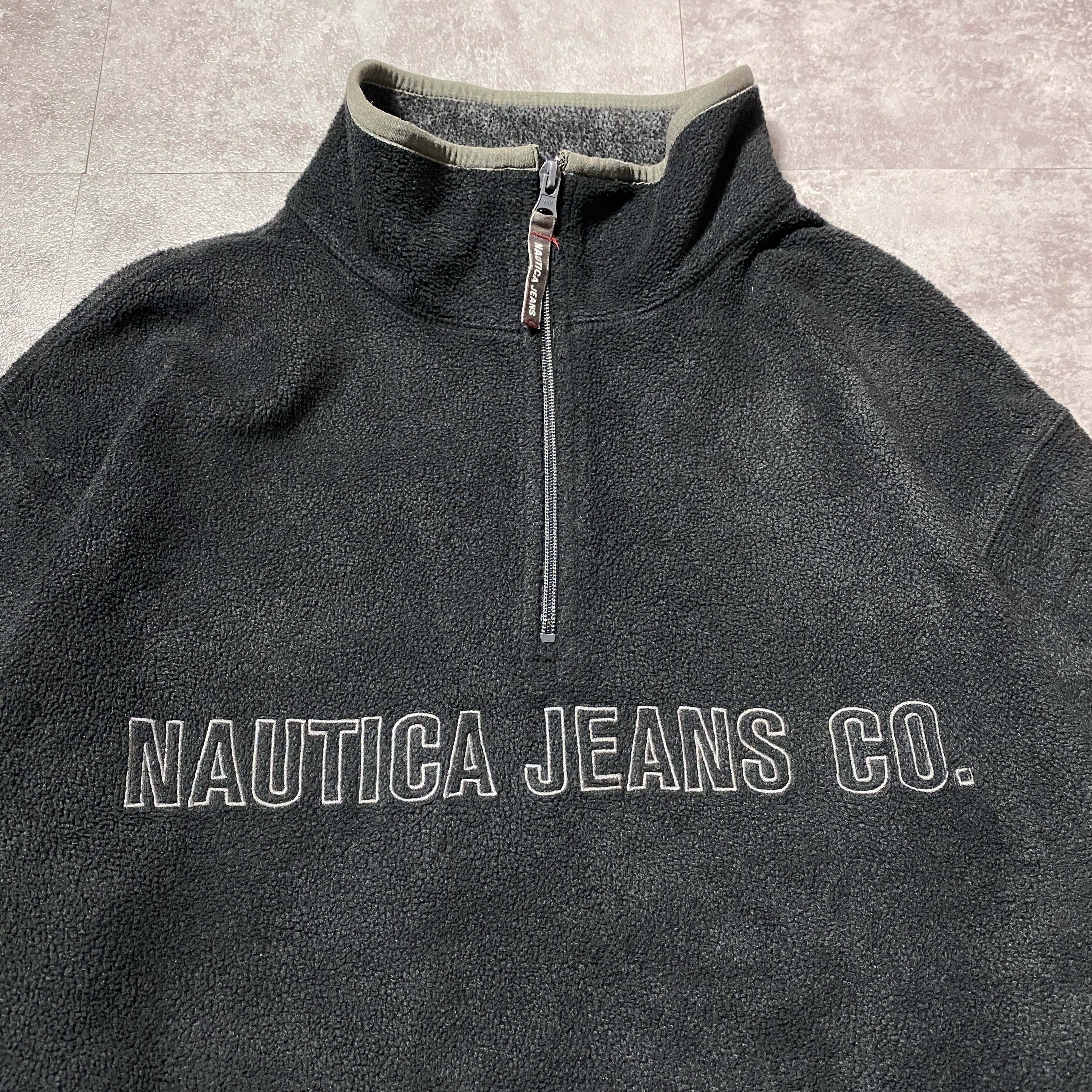 【Size.XL】nautica jeans ノーティカジーンズ ハーフジップ 刺繍ロゴ ブラック 黒 フリーススウェット トレーナー