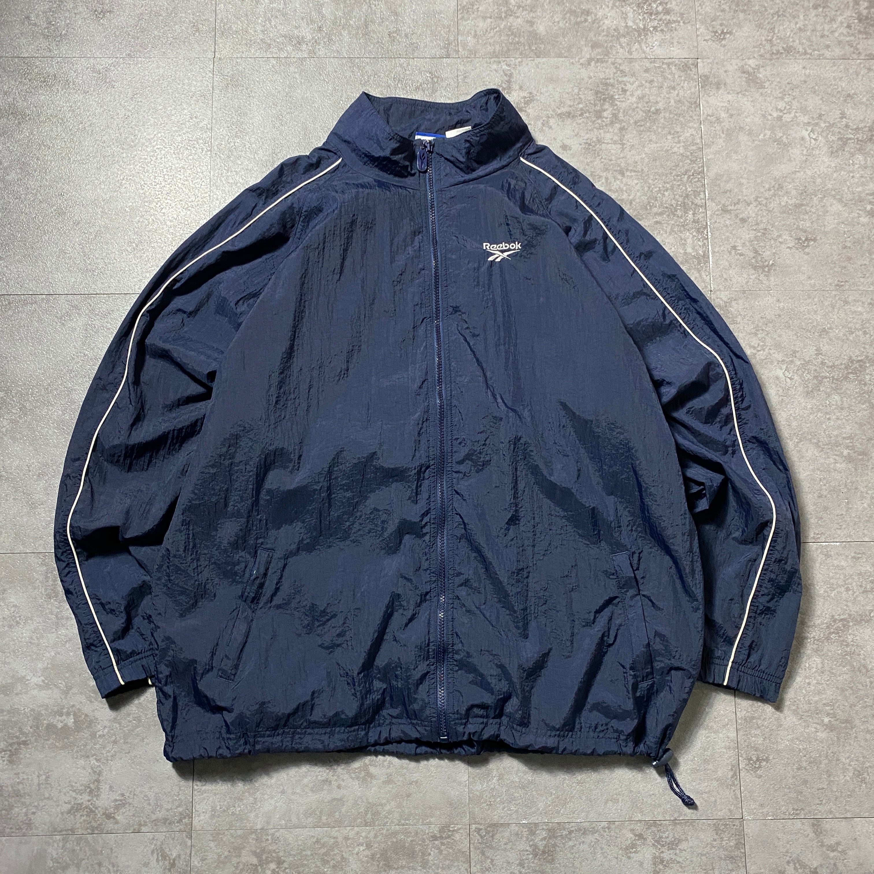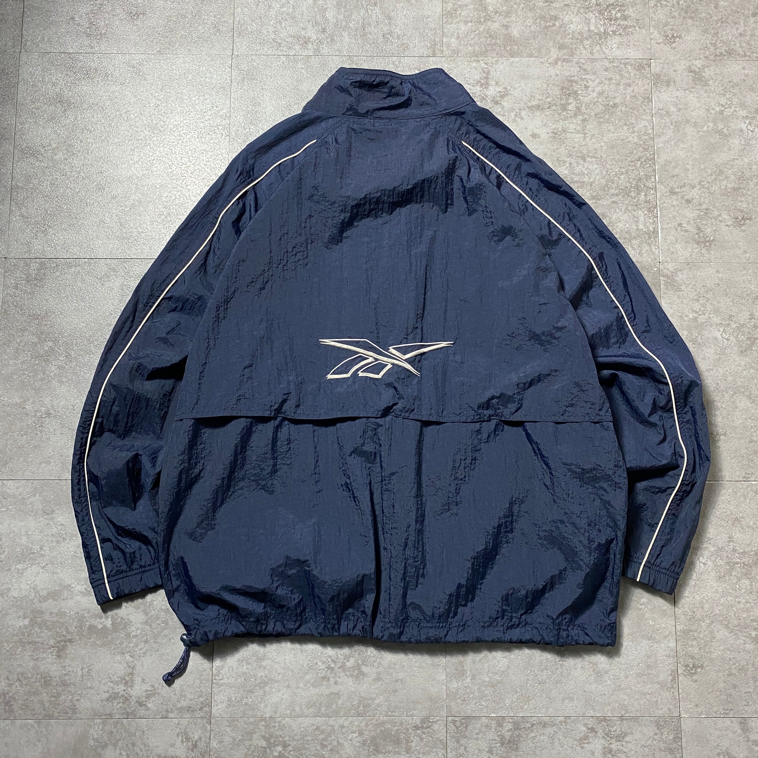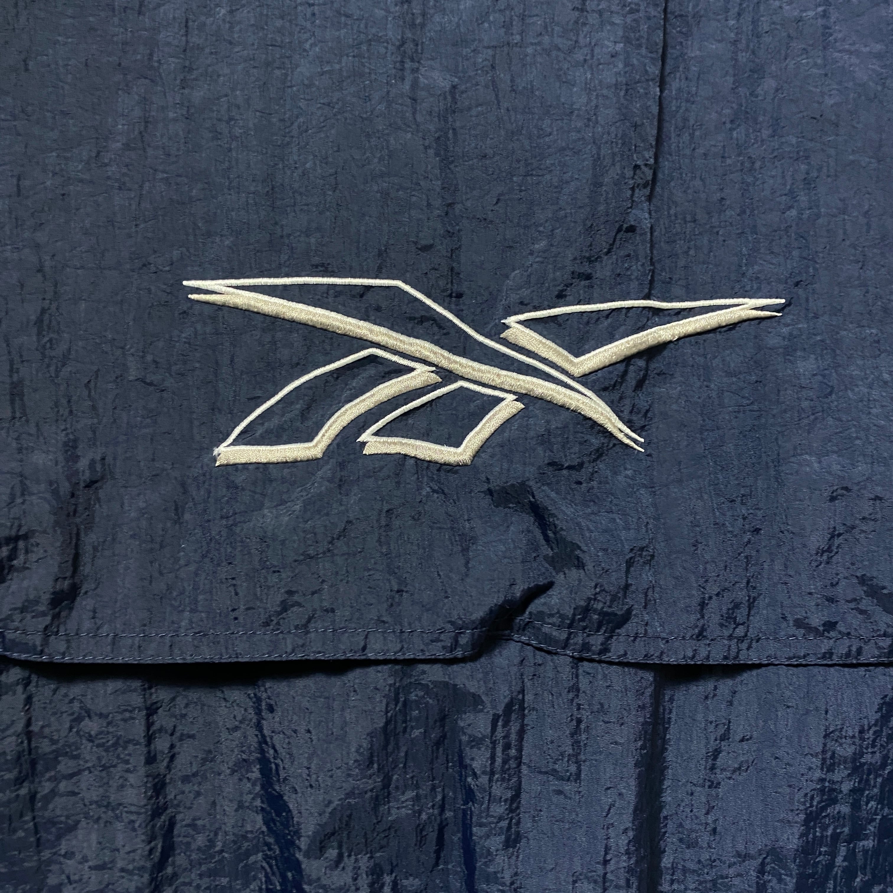 90's Reebok リーボック 刺繍ワンポイント バックロゴ ネイビー ナイロンジャケット