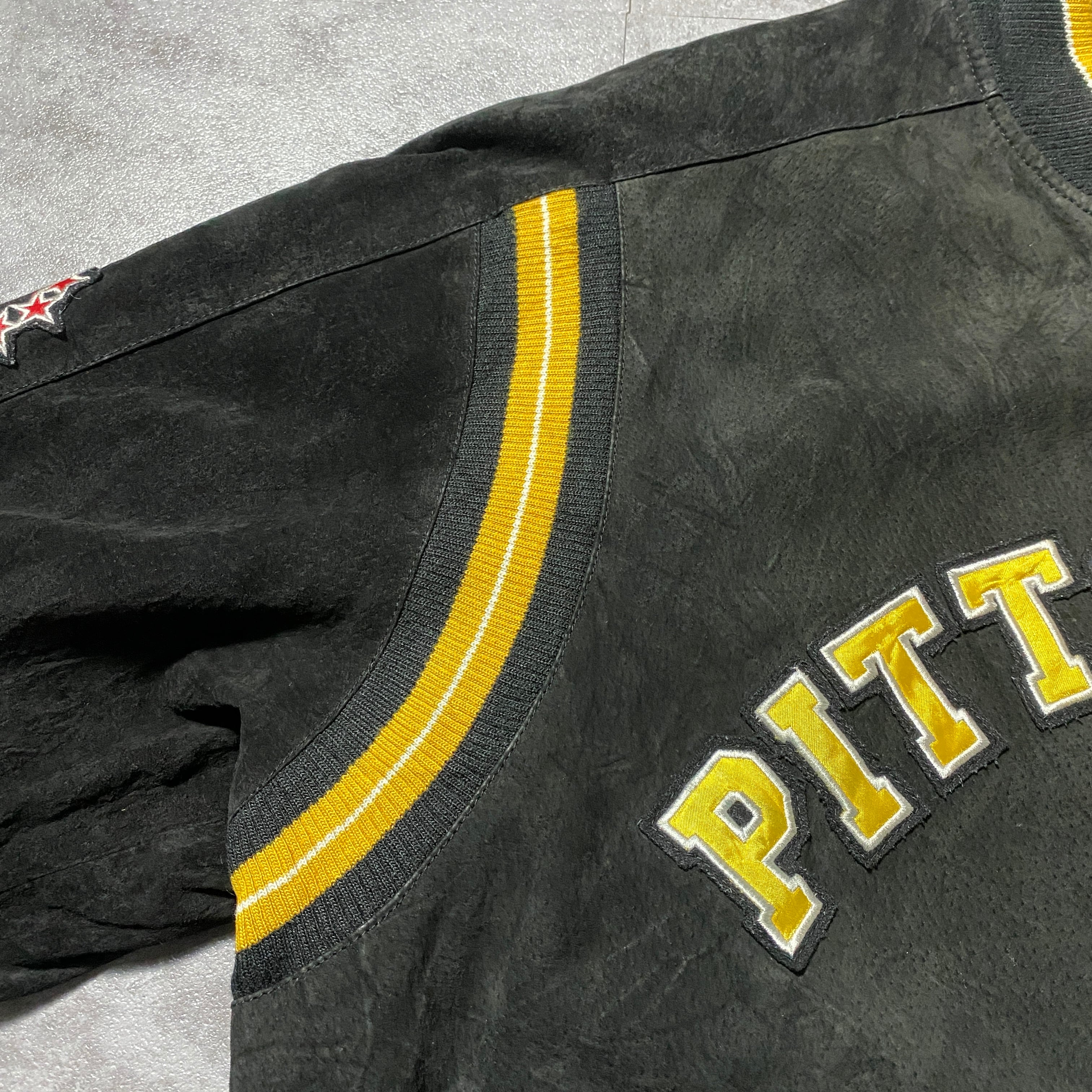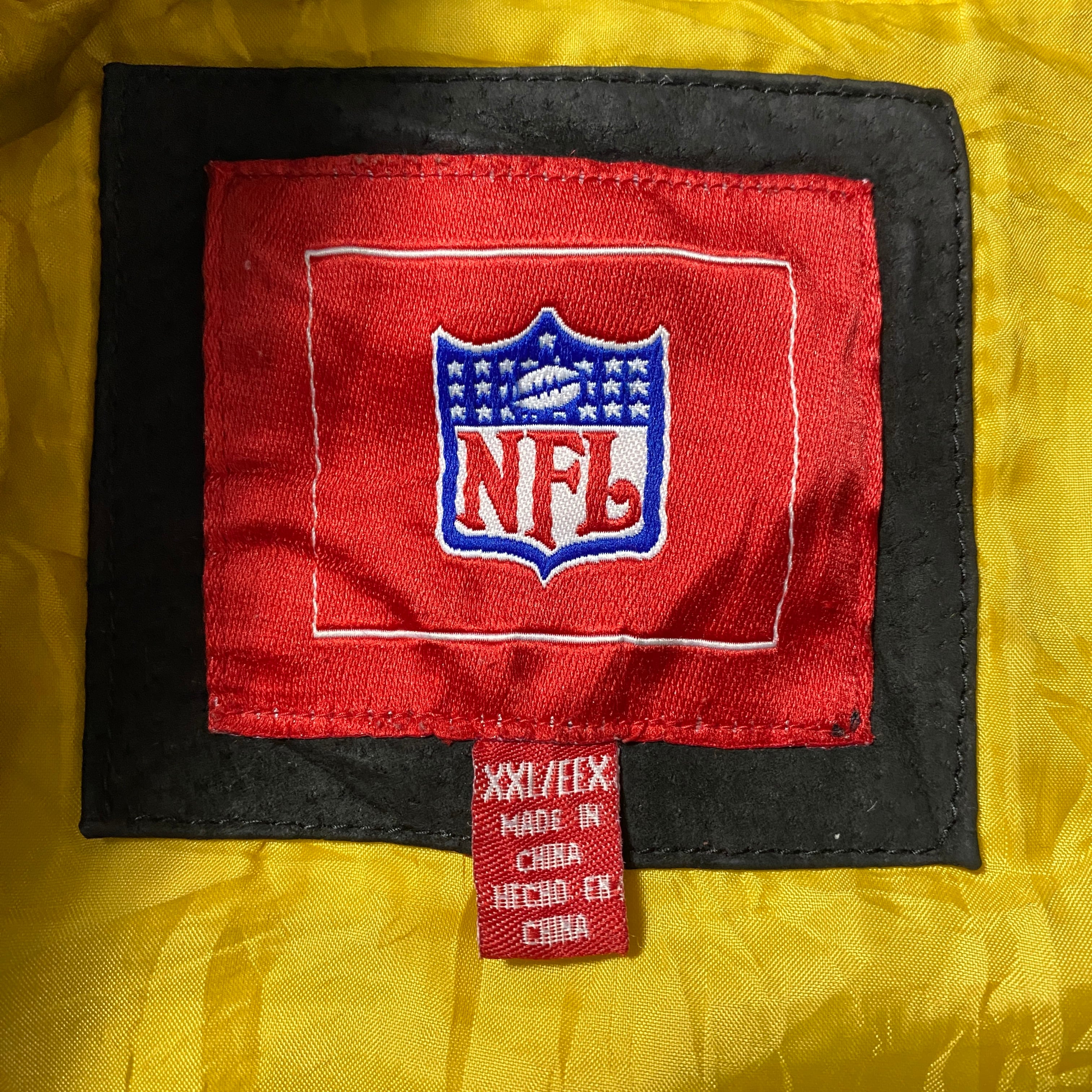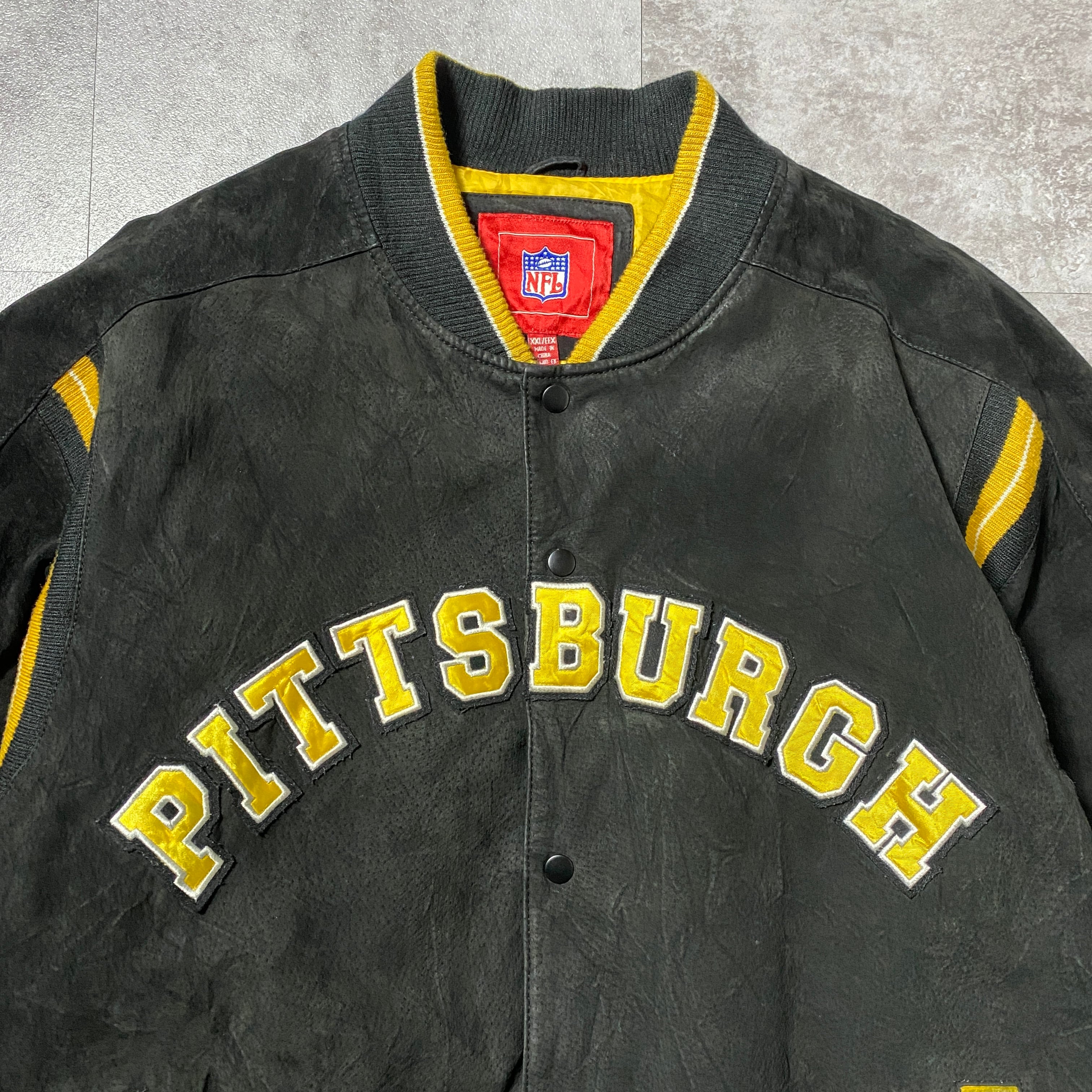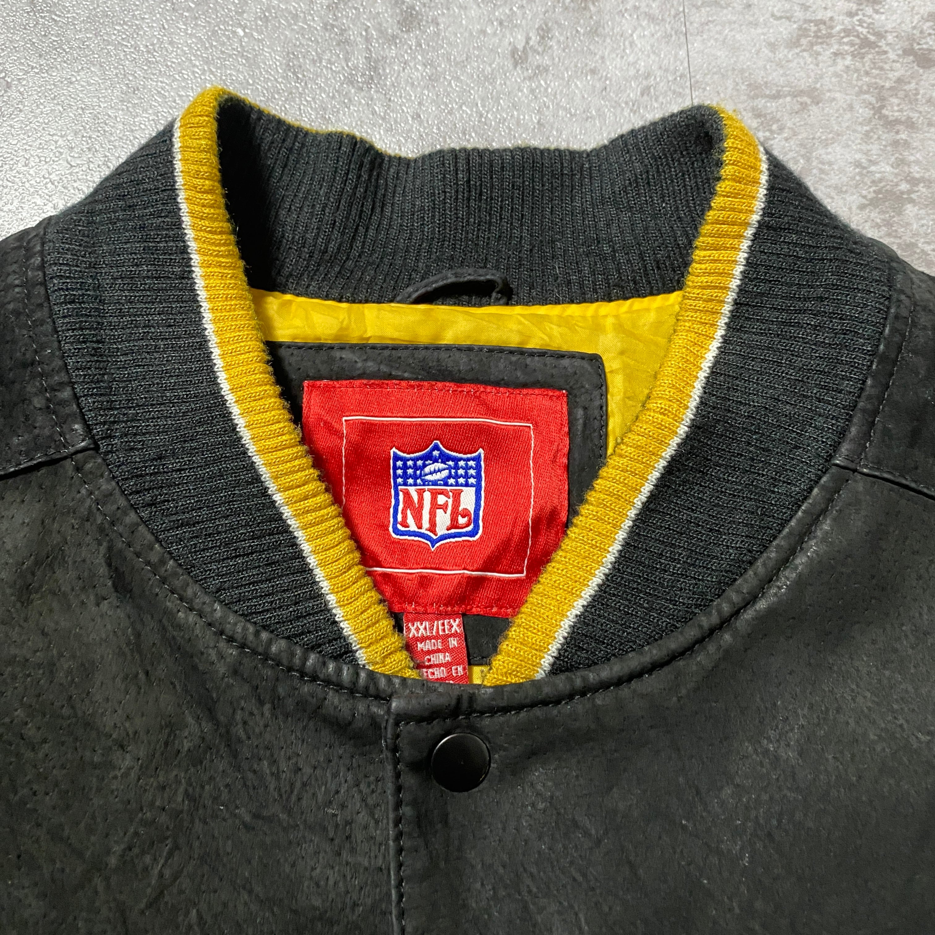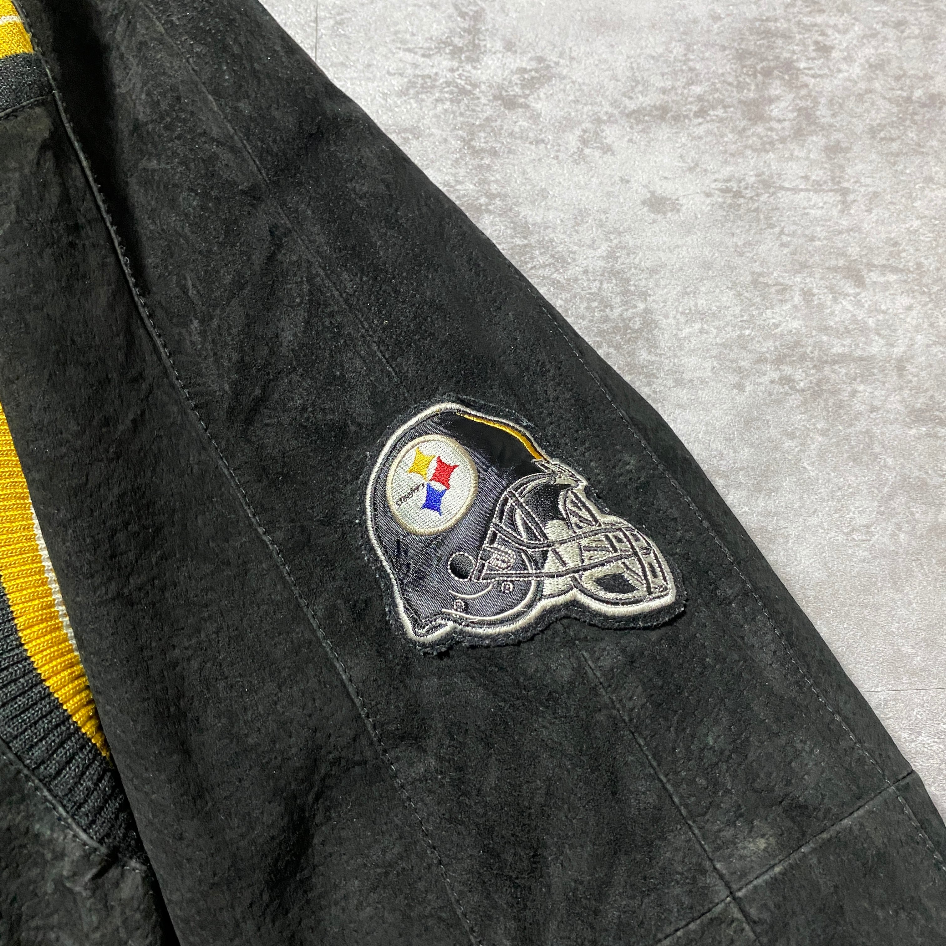 90's NFL Steelers スティーラーズ アーチロゴ バックロゴ ラインリブ スタジャン レザージャケット