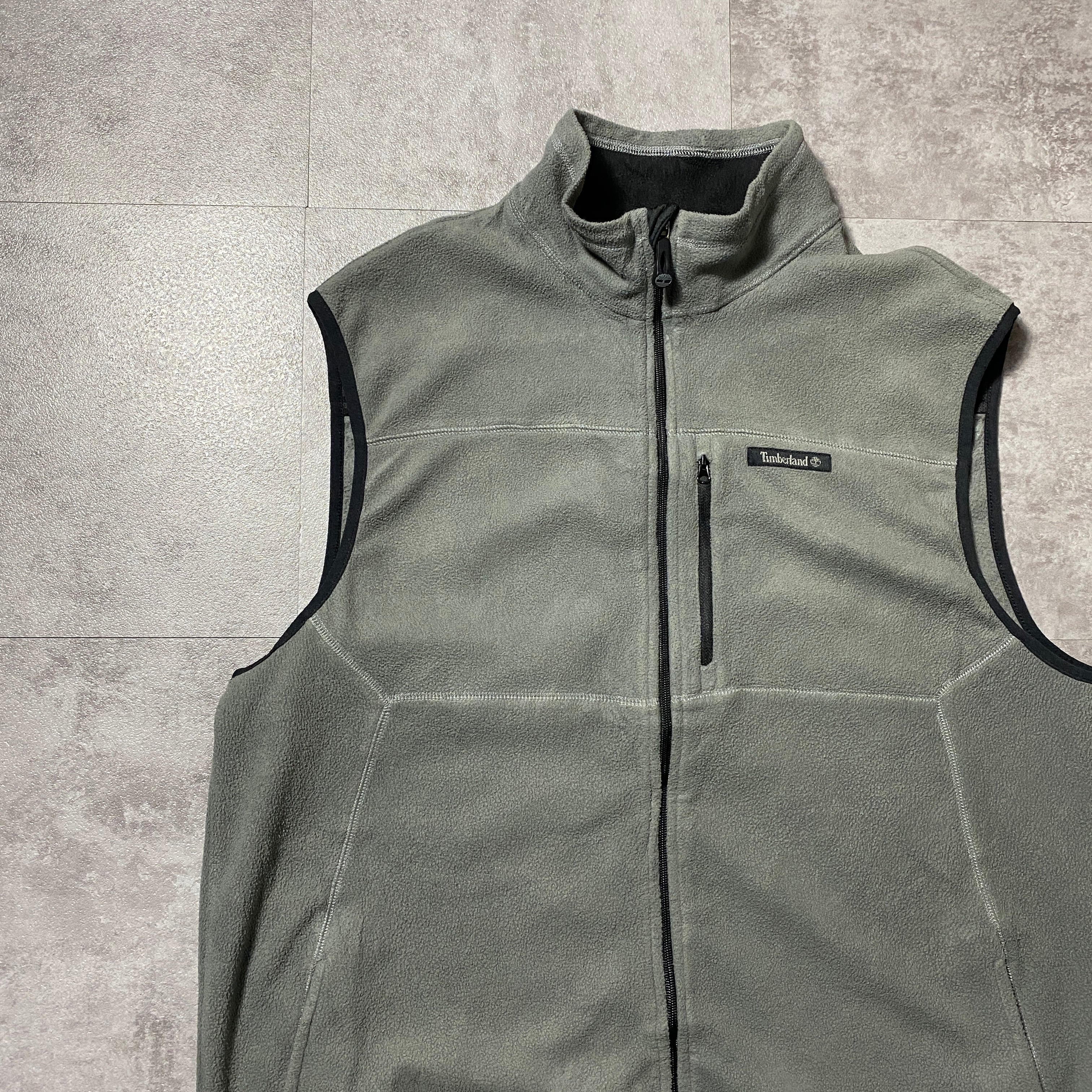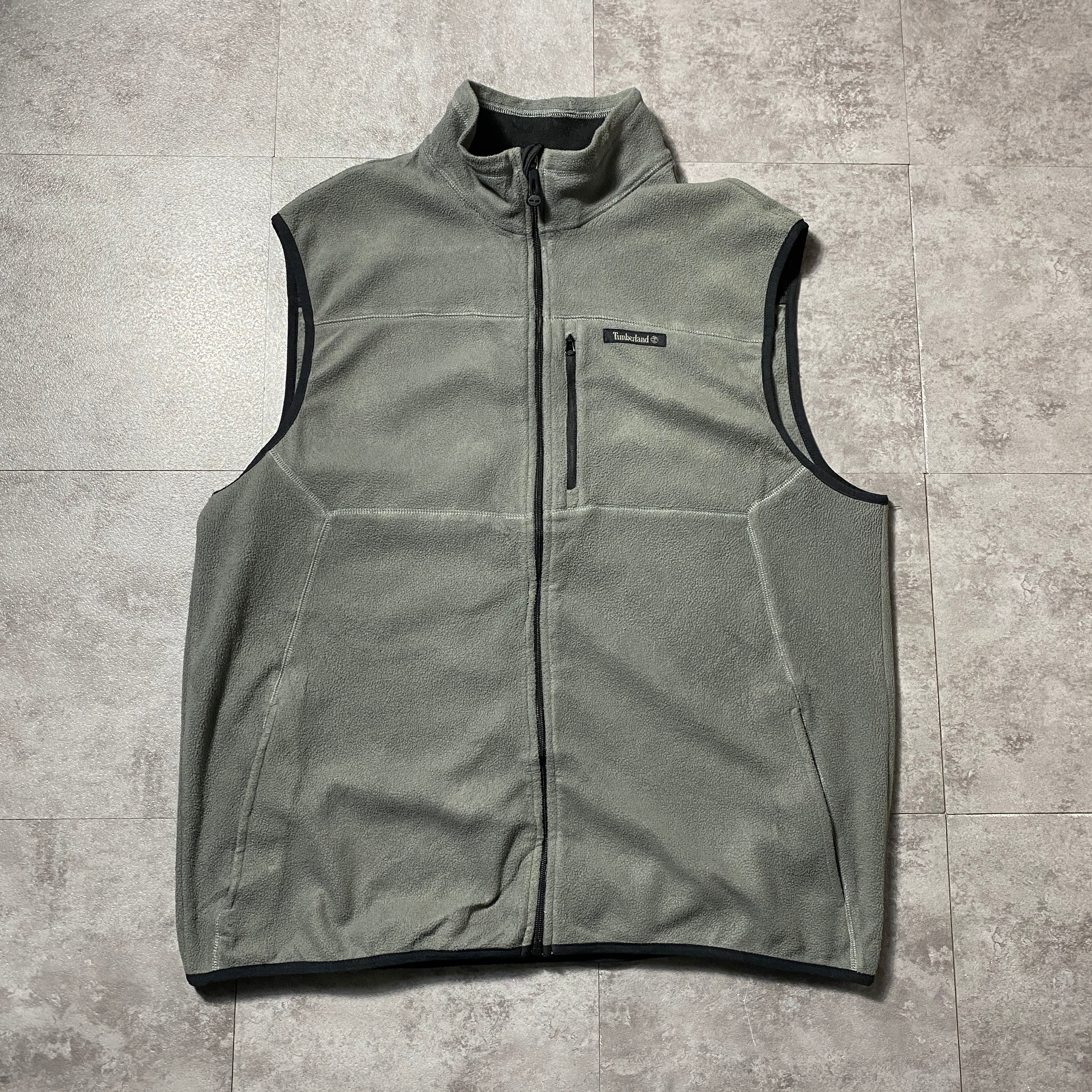 【Size.XL】Timberland ティンバーランド ラベルロゴ グレー フリースベスト