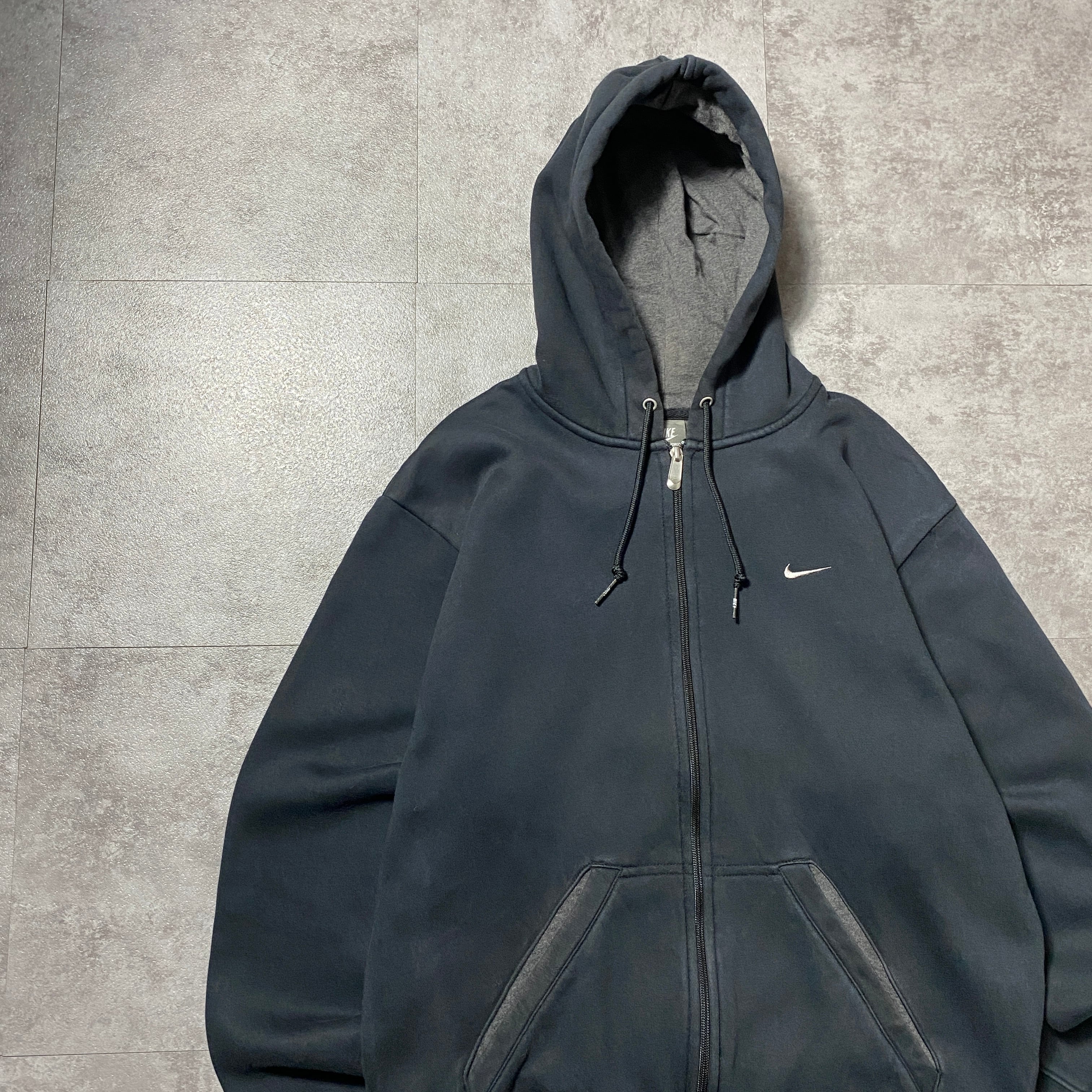 00's NIKE ナイキ スウォッシュ 刺繍ワンポイント ブラック 黒 ジップパーカー
