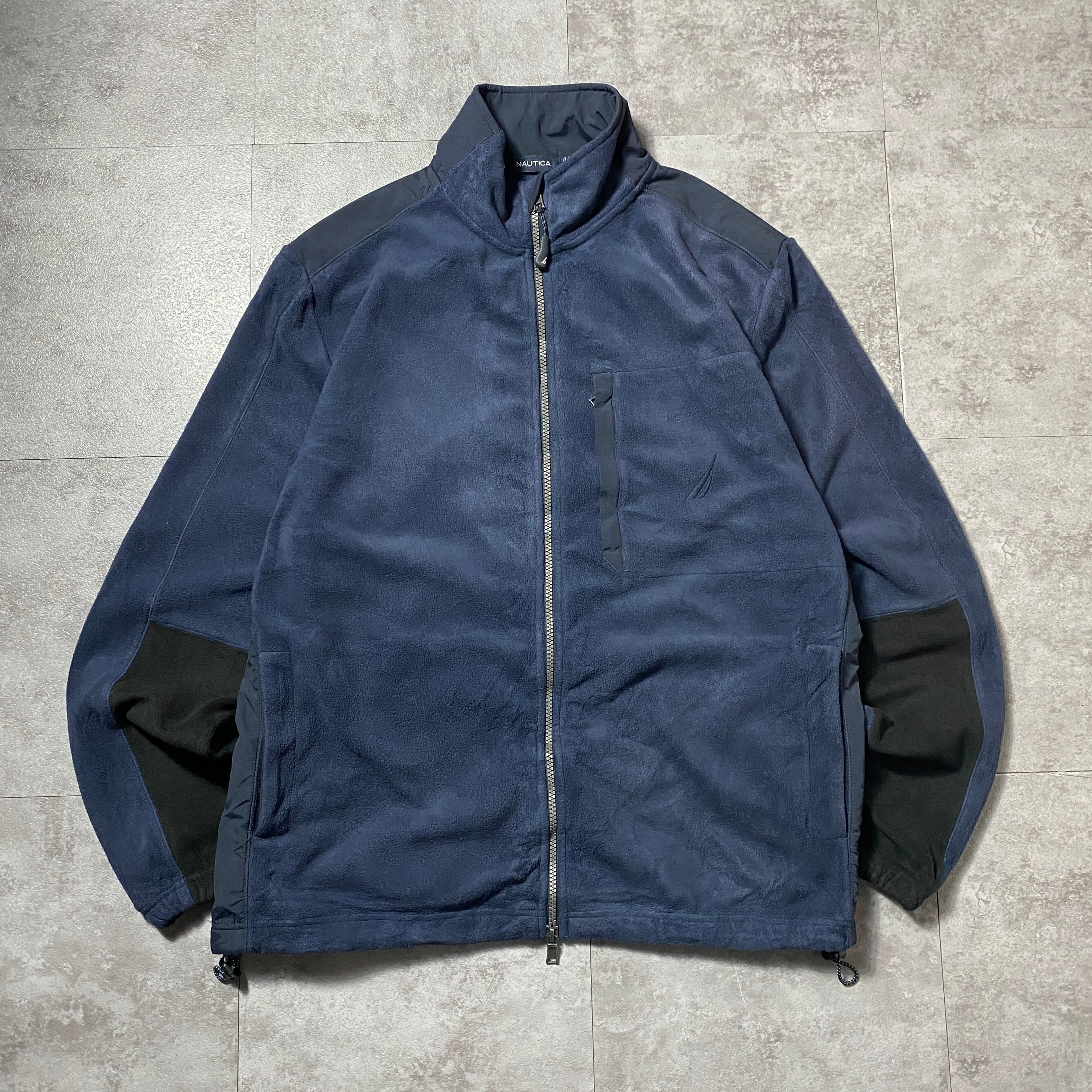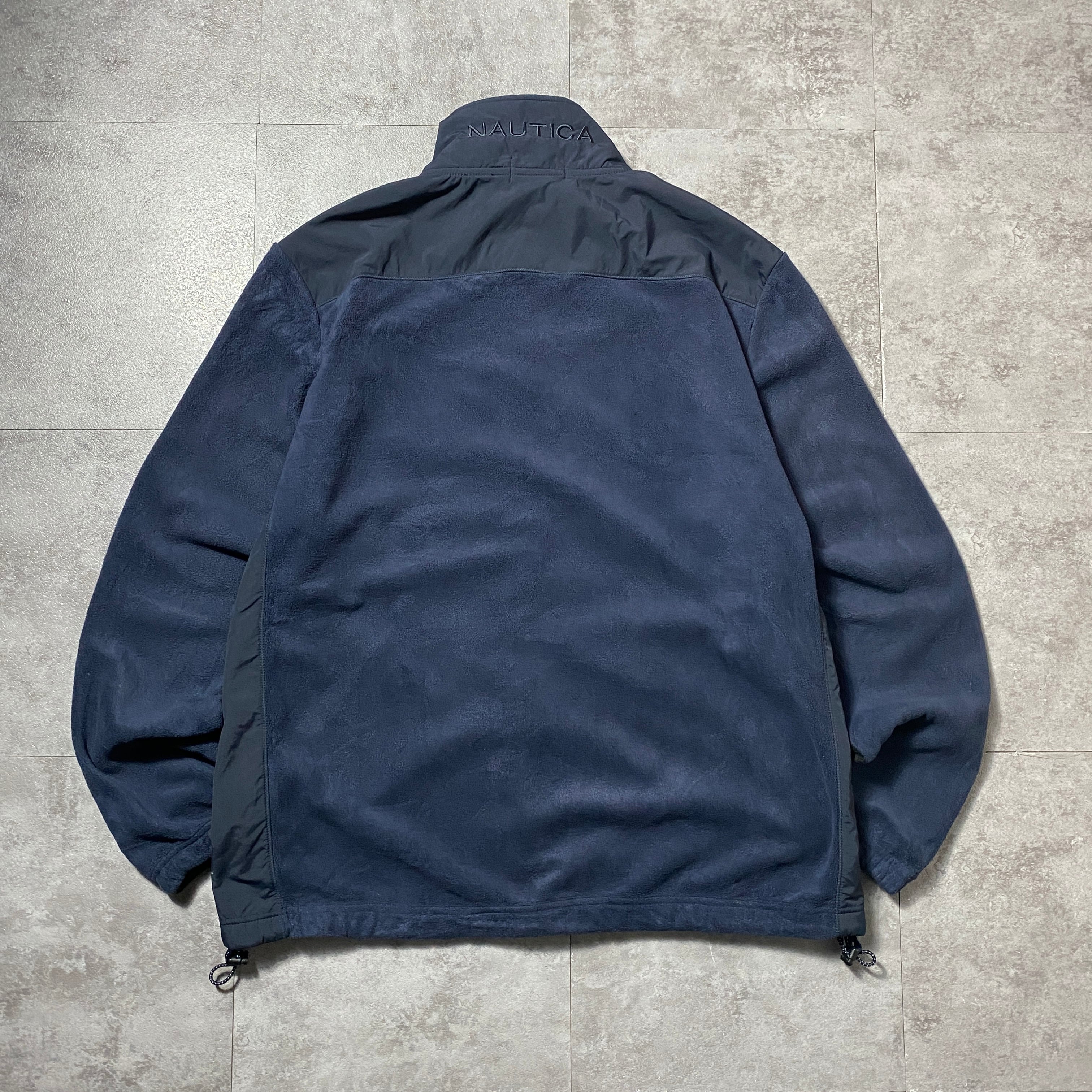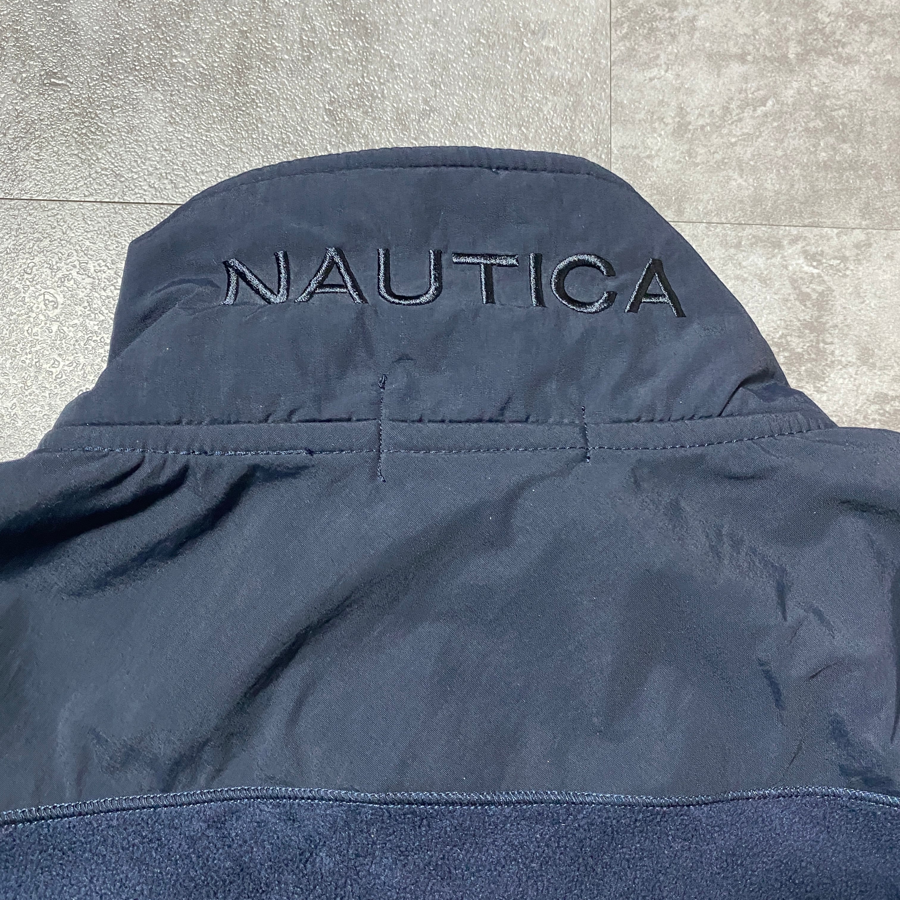 nautica ノーティカ 刺繍ロゴ ナイロン切替 ネイビー フリースジャケット
