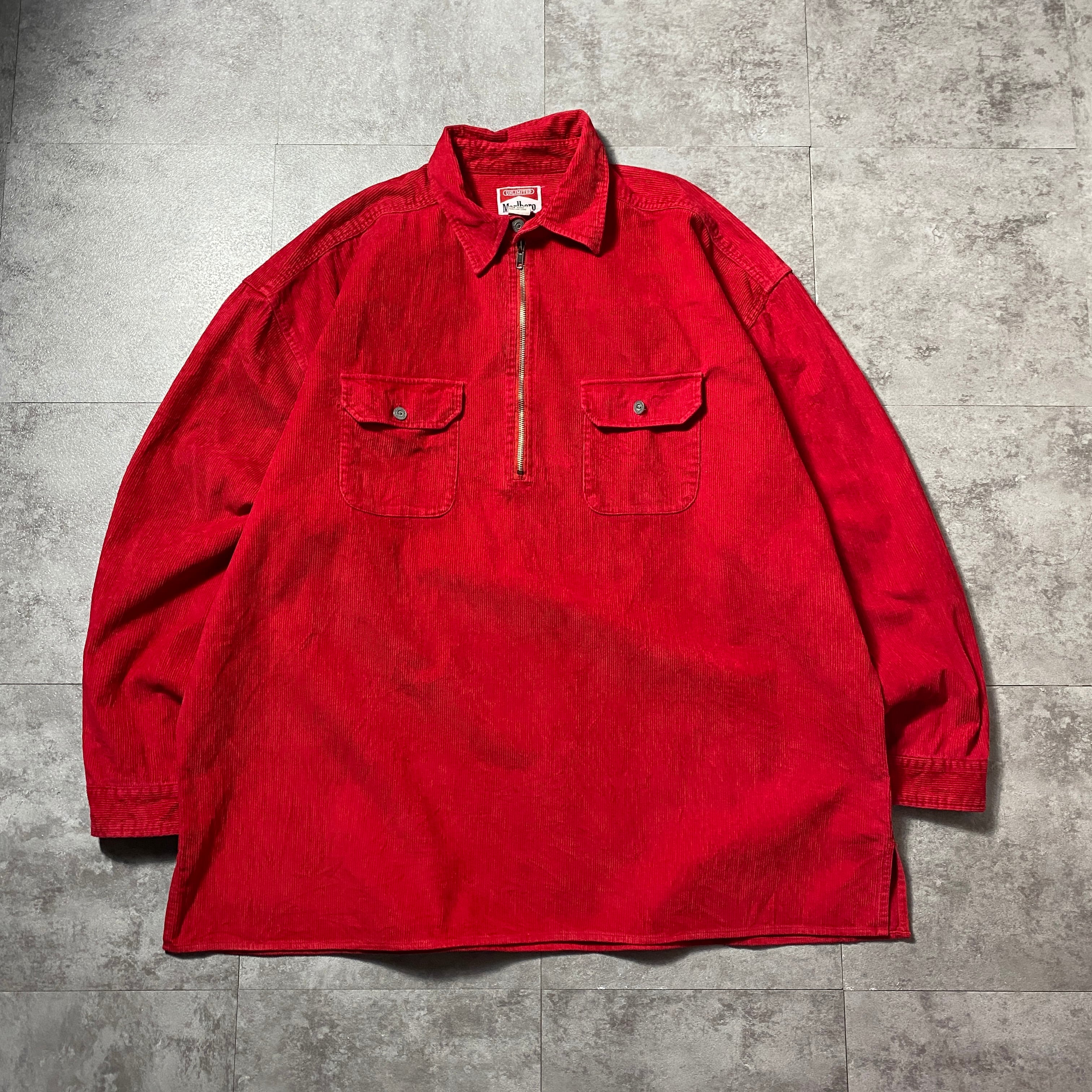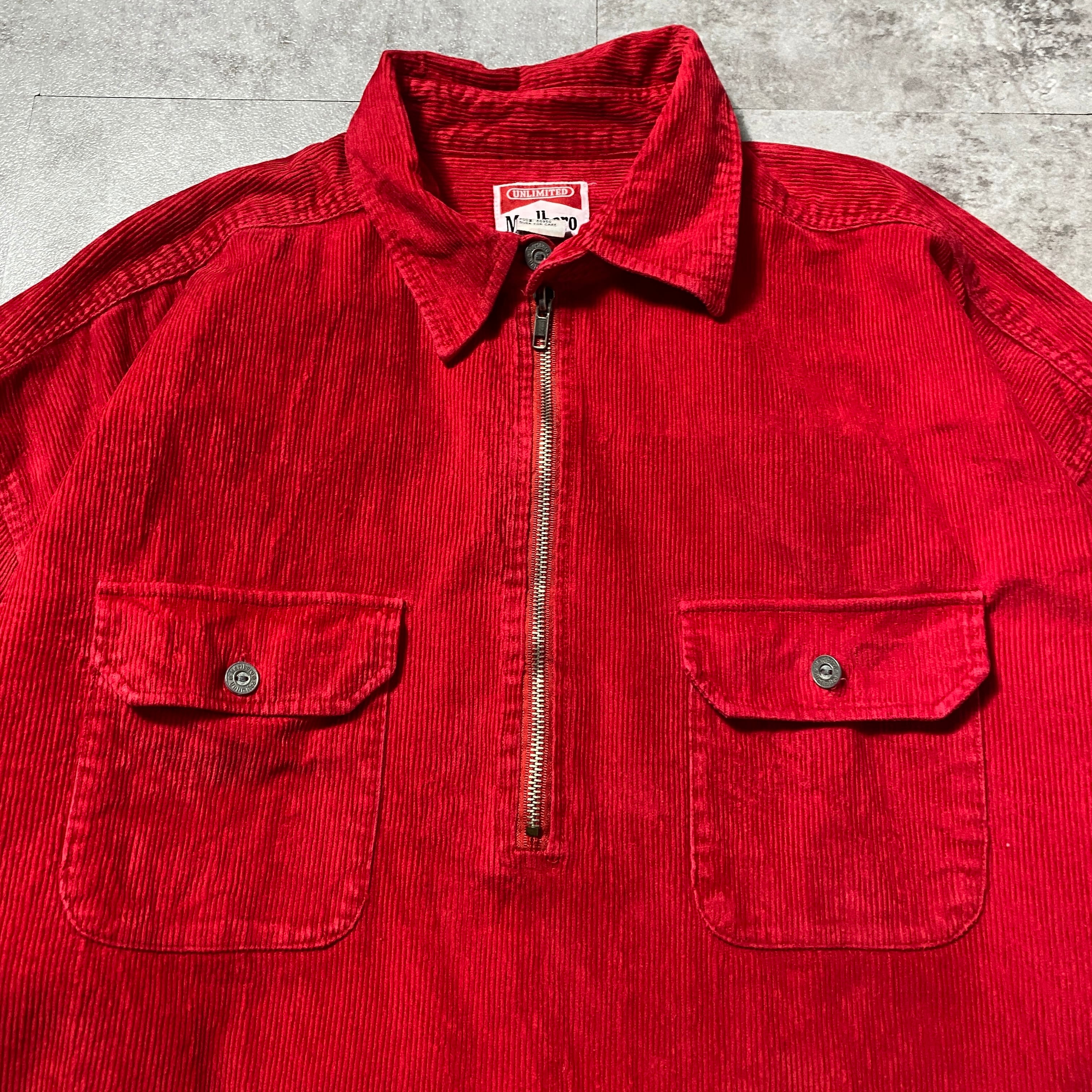 90's Marlboro マルボロ ハーフジップ コーデュロイ レッド 赤 プルオーバー シャツ