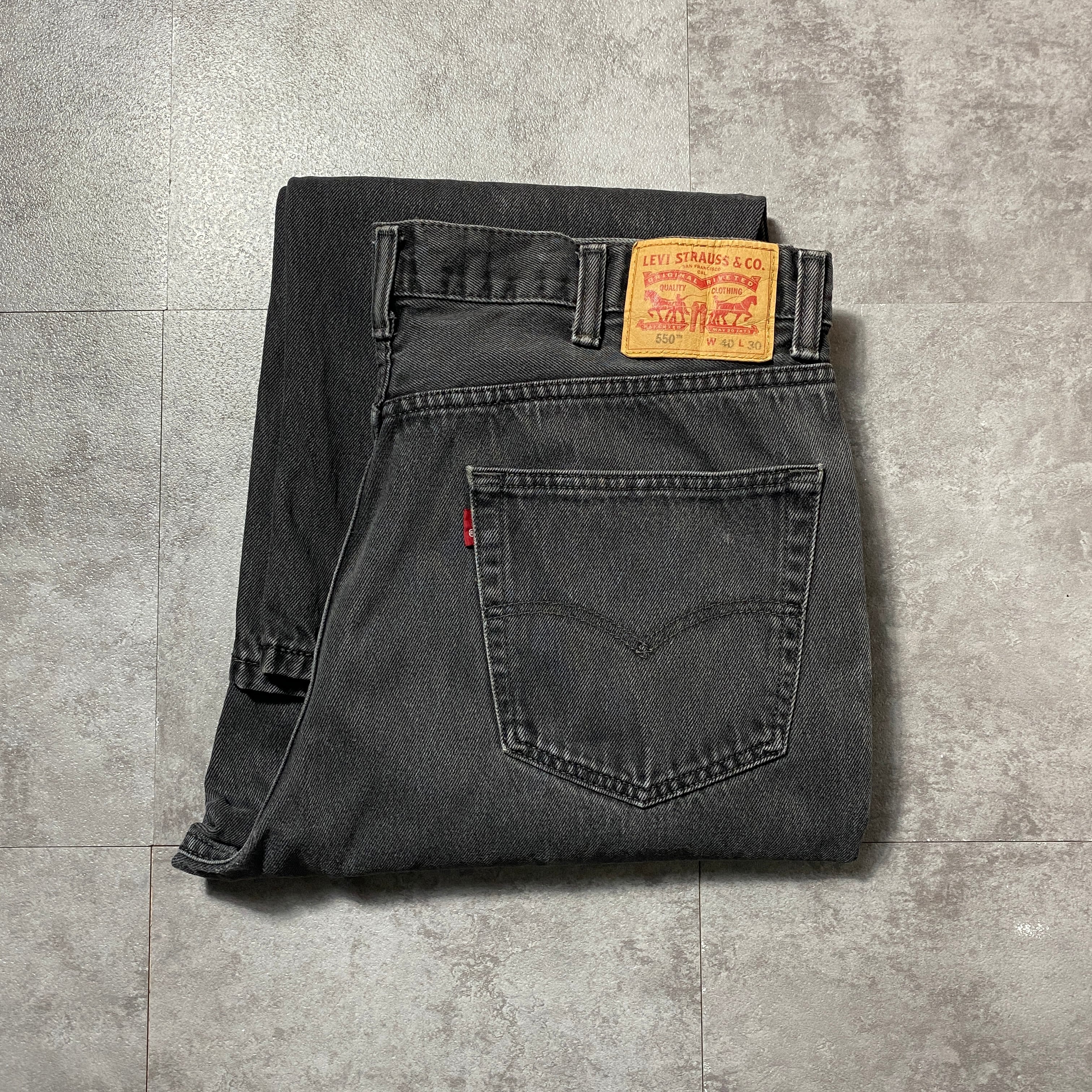 【W40 L30】Levis 550 リーバイス ジッパーフライ バギー テーパード 先染めブラックデニム ジーンズ