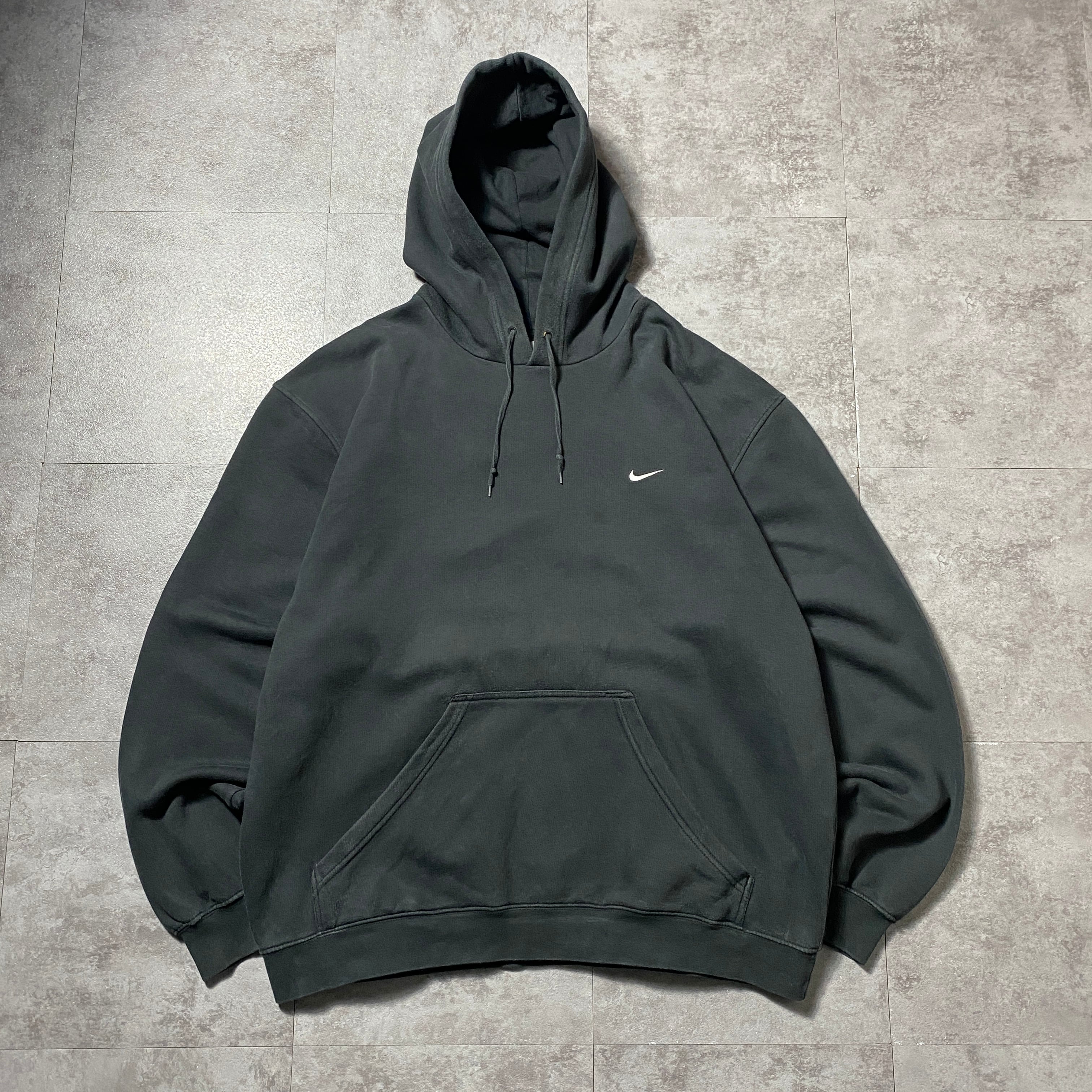 00's NIKE ナイキ スウォッシュ 刺繍ワンポイント ブラック 黒 スウェット パーカー
