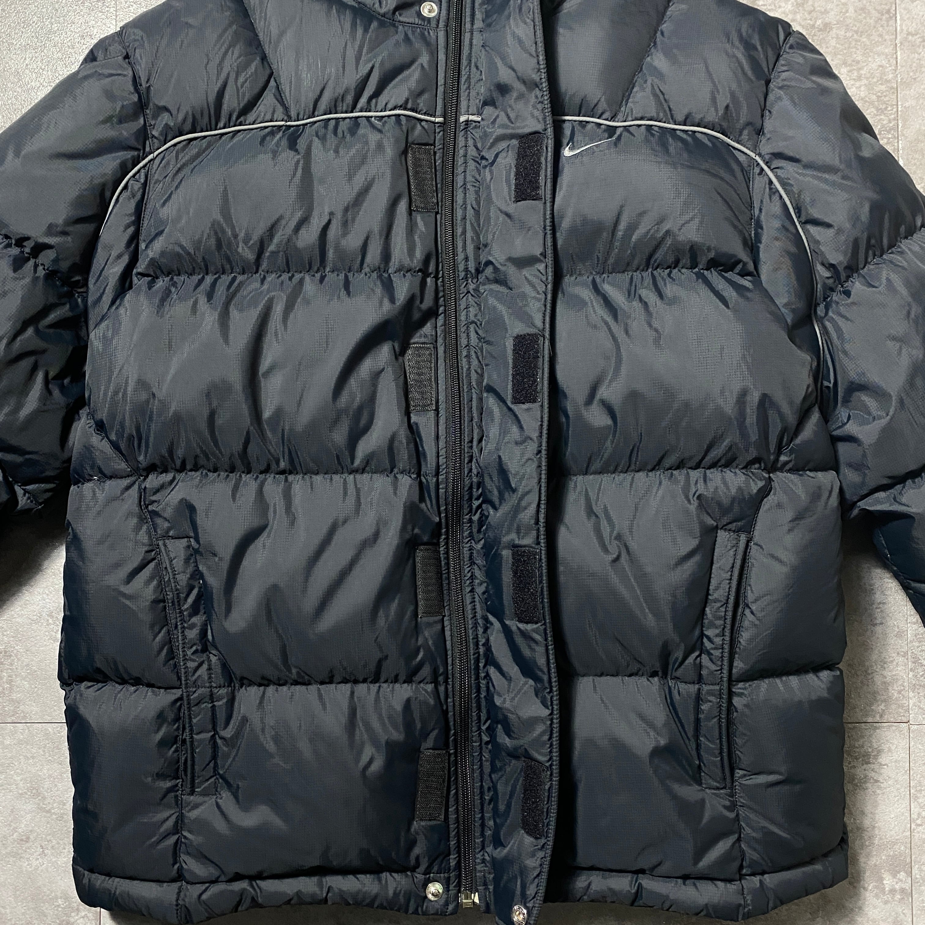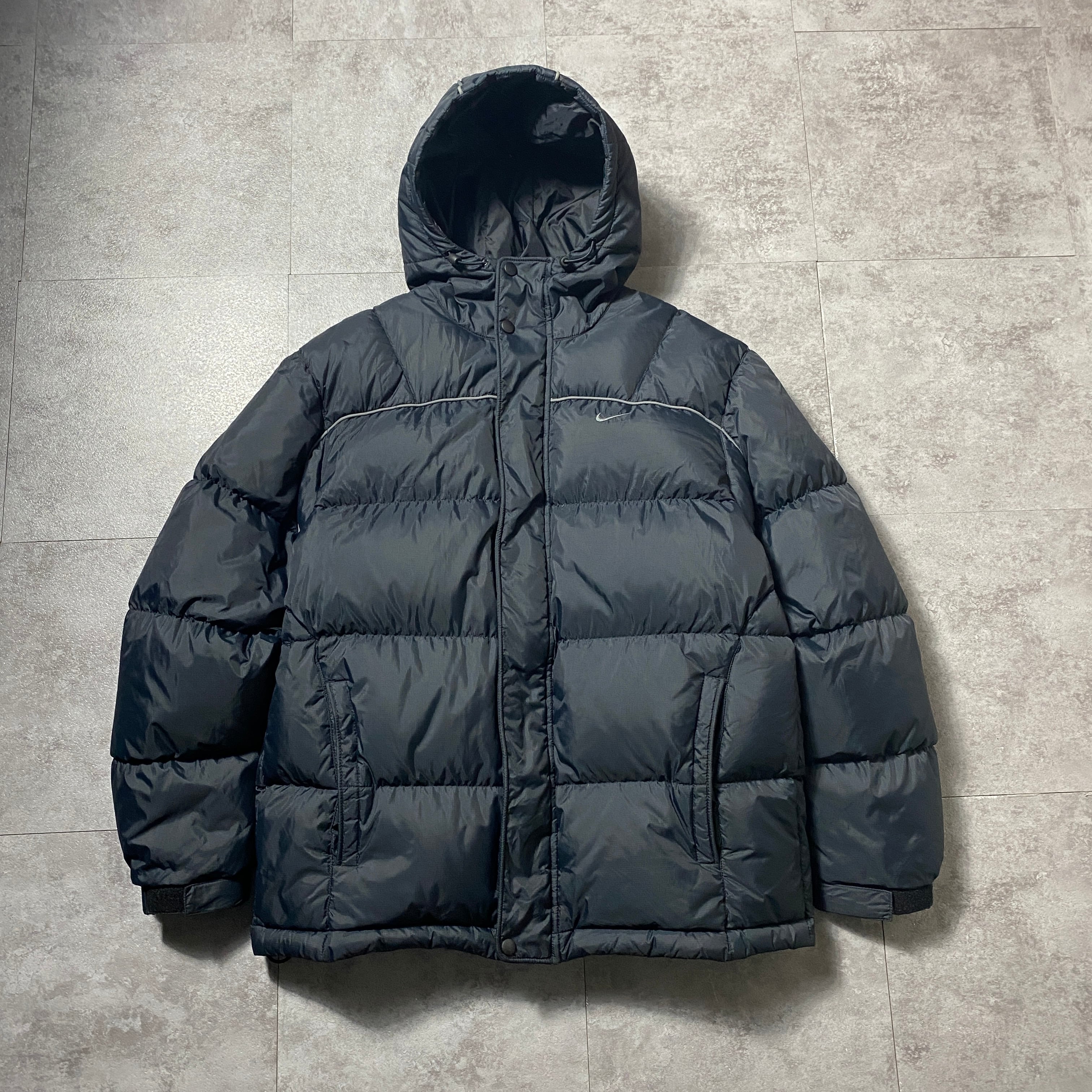 00's NIKE ナイキ スウォッシュ 刺繍ワンポイント ブラック 黒 フード付 ダウンジャケット