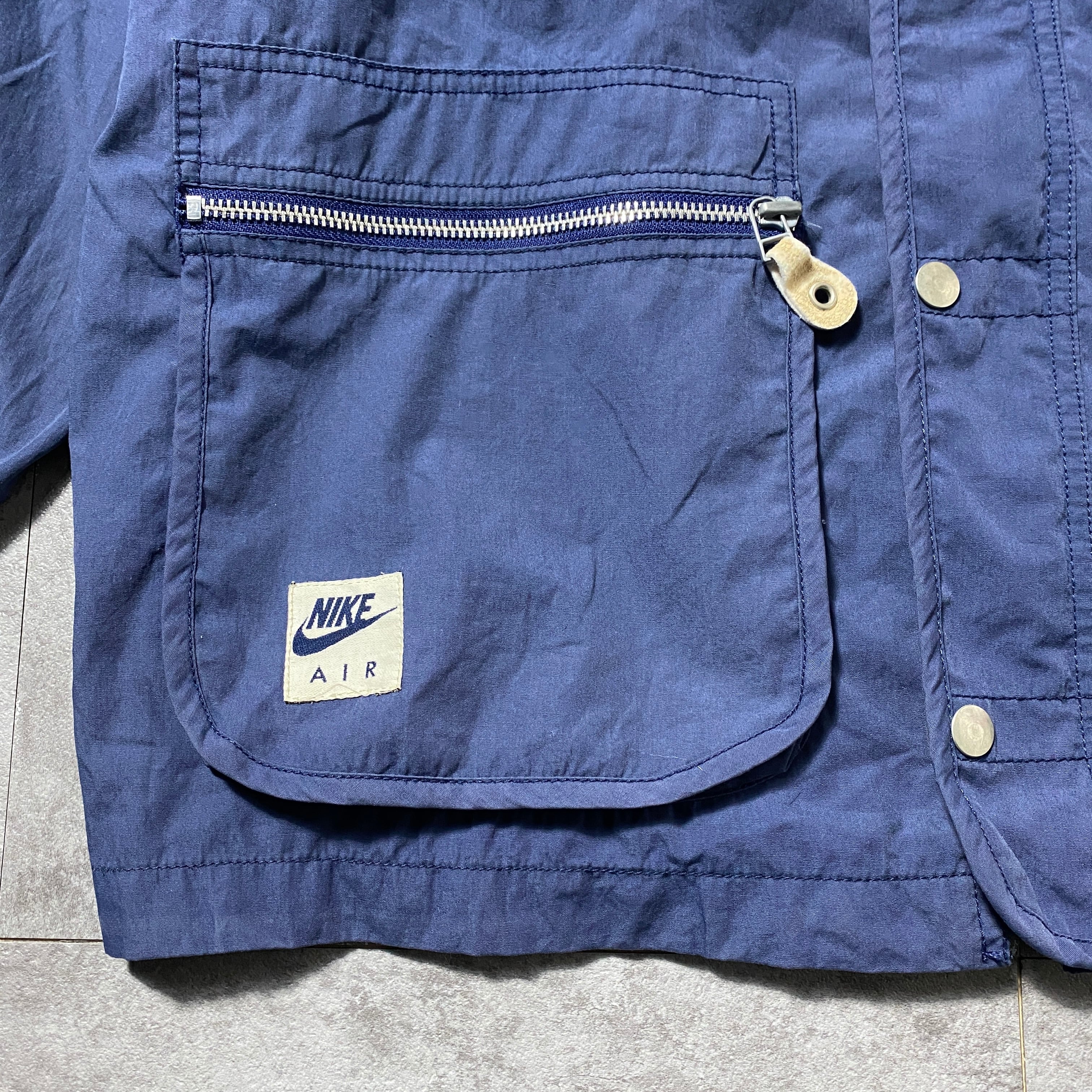 90's NIKE AIR ナイキ スウォッシュ 刺繍ワンポイント ネイビー ナイロンジャケット マウンテンジャケット