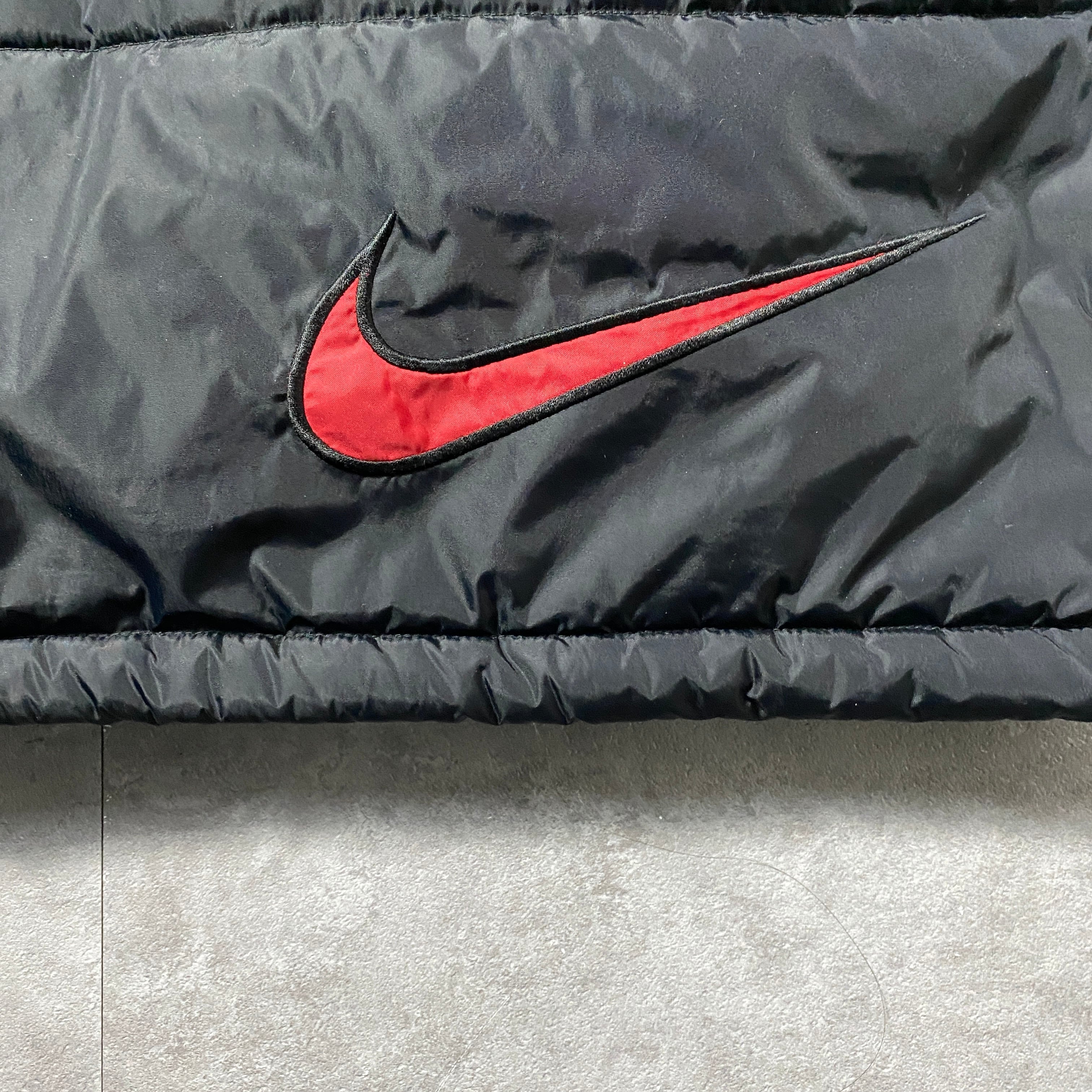 【Size.XL】90's NIKE ナイキ スウォッシュ 刺繍ワンポイント バックロゴ ブラック 中綿 ナイロンジャケット