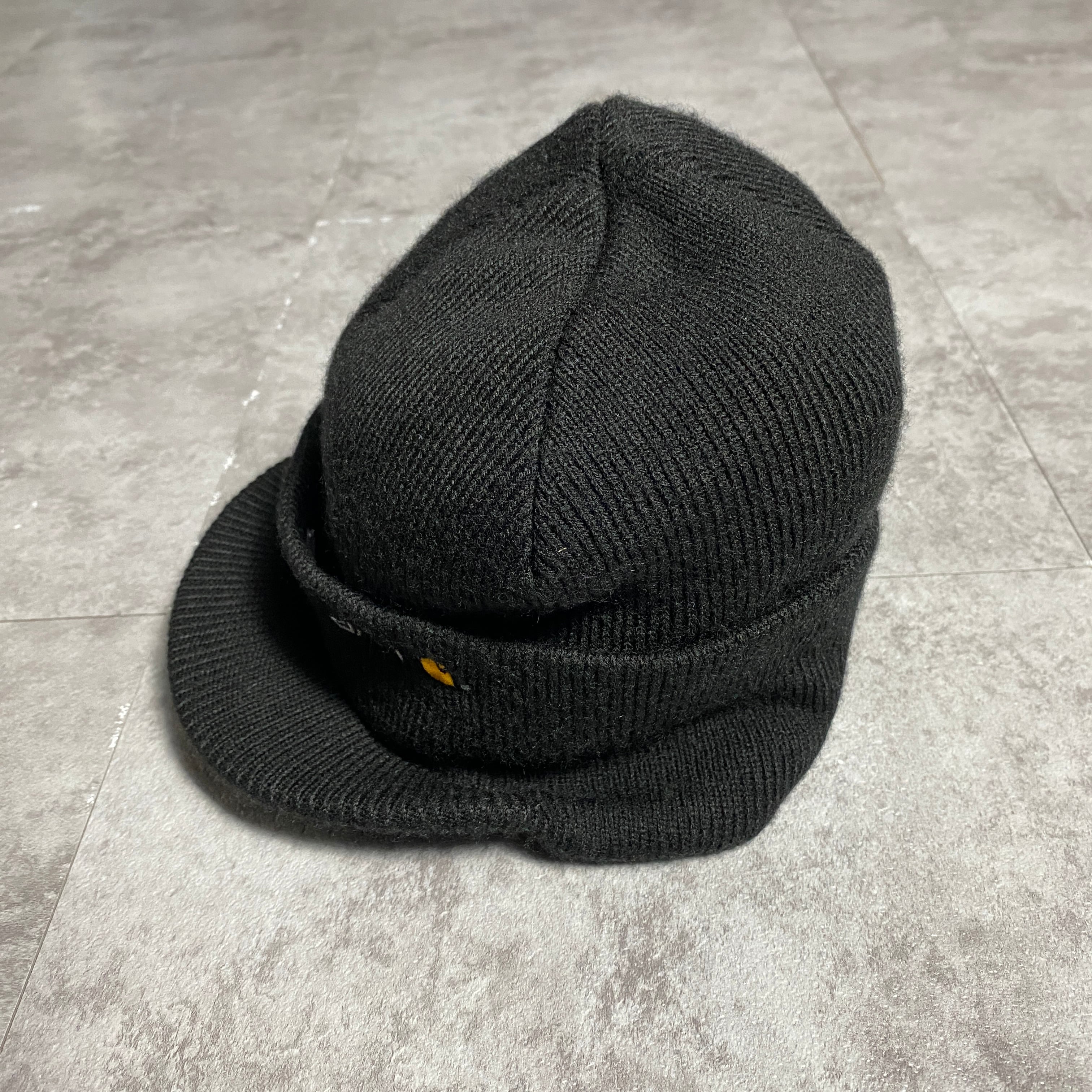 【USA製】carhartt カーハート 刺繍ロゴ ブラック 黒 ブリム付きニットキャップ ニット帽 ビーニー