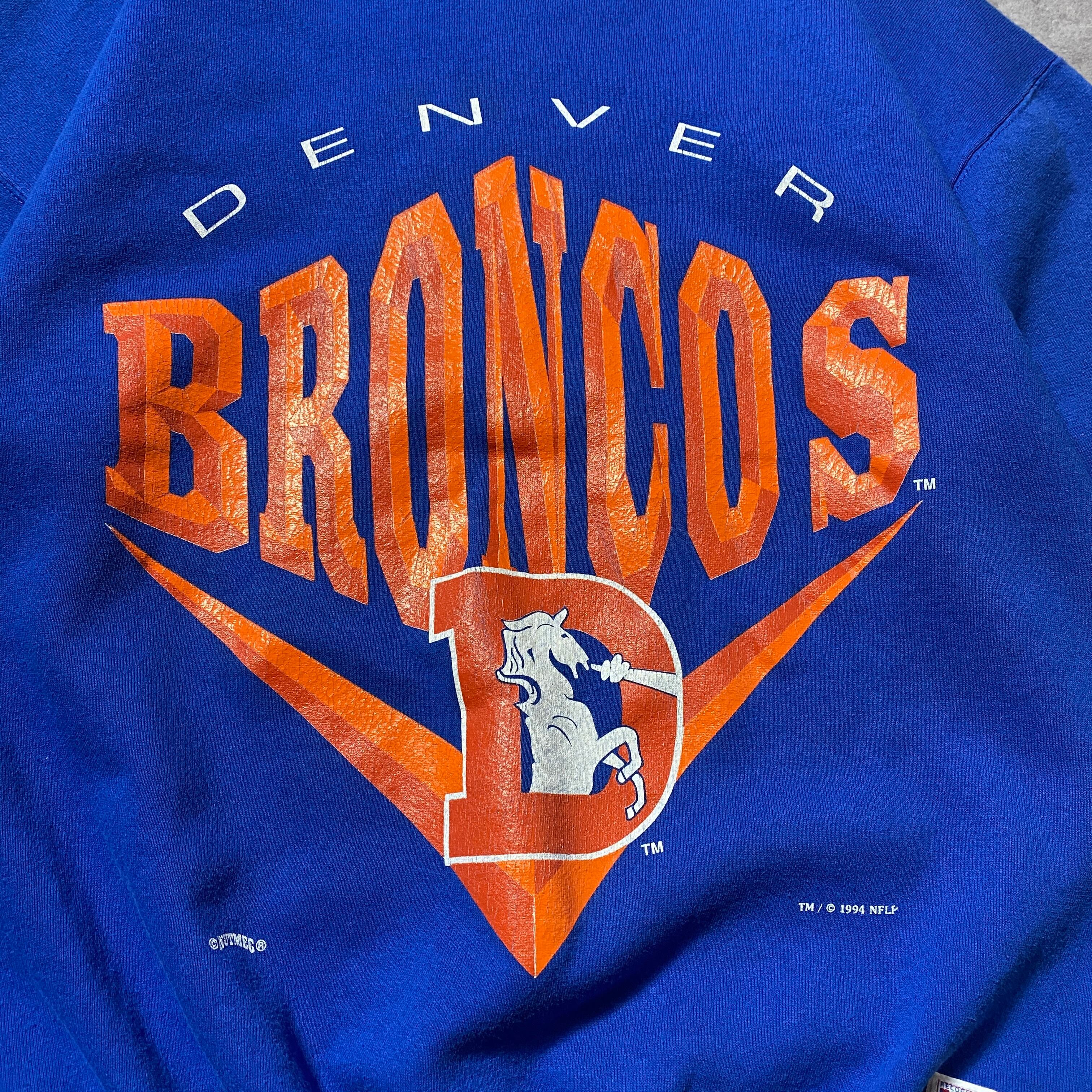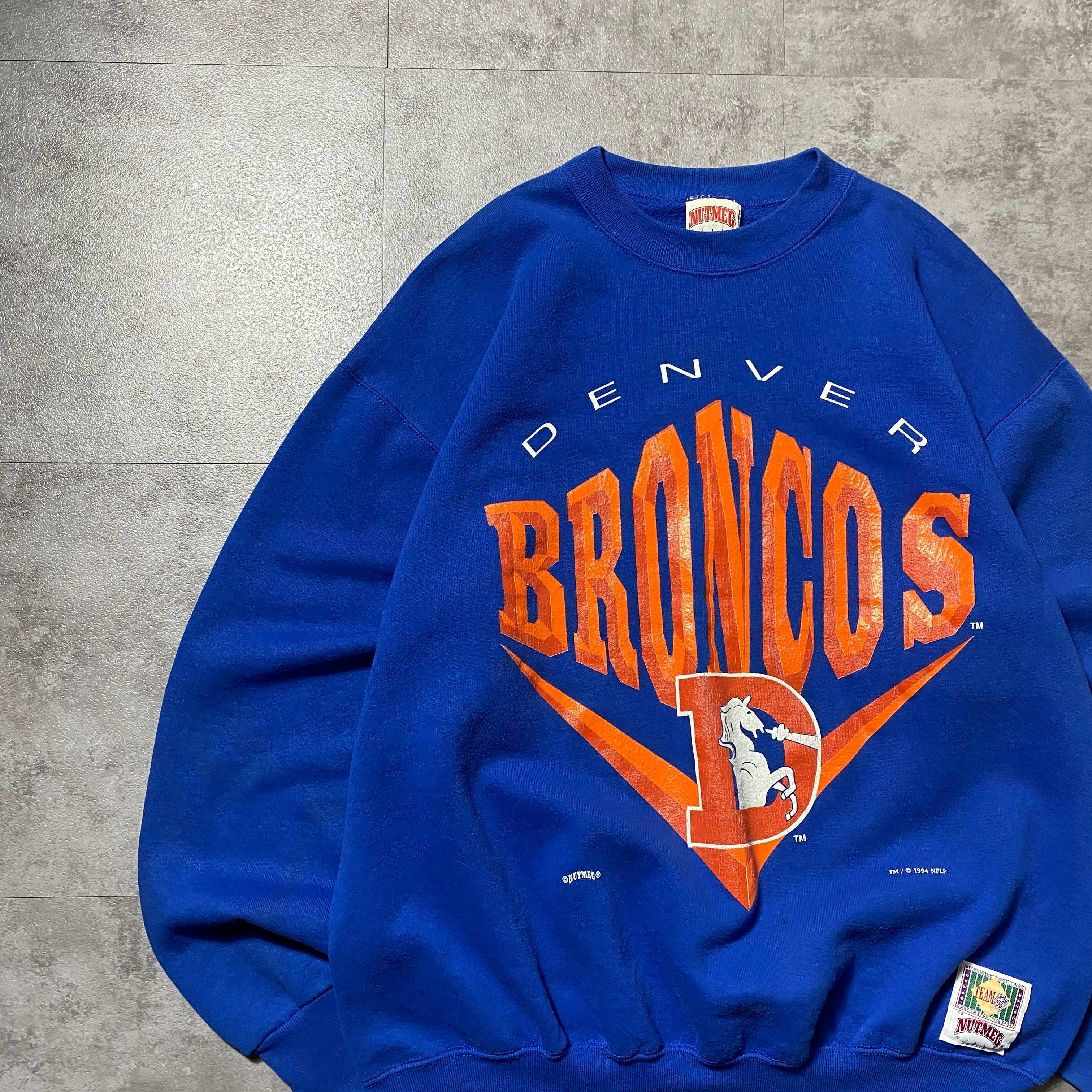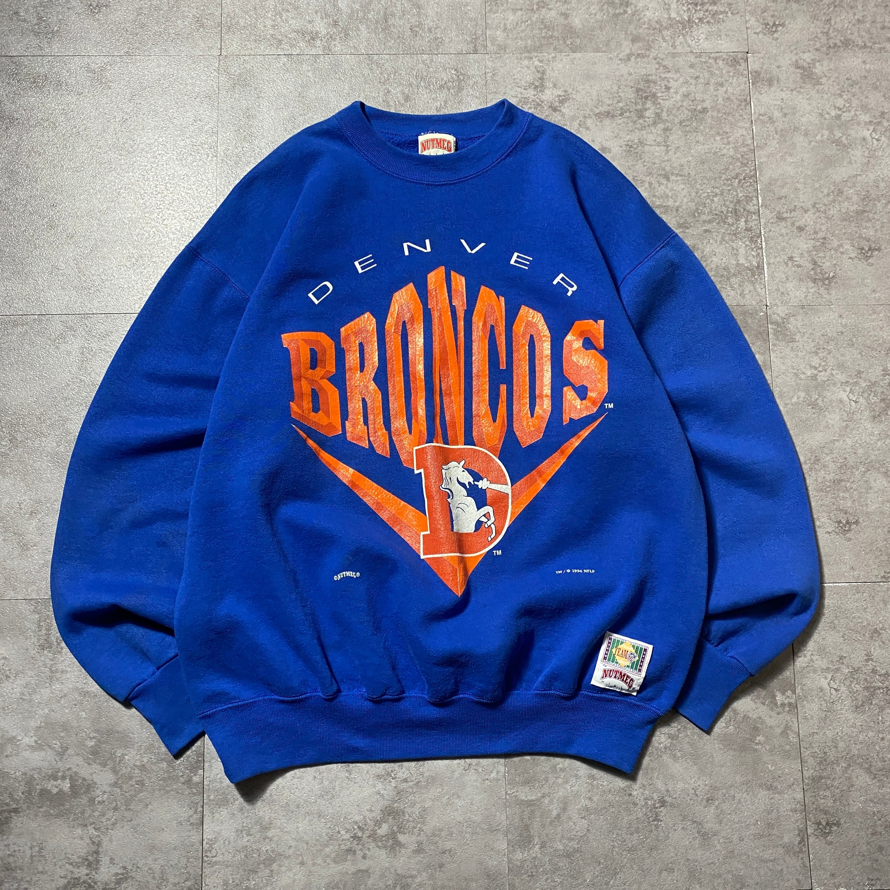 【USA製】90's NUTMEG MILLS NFL BRONCOS ブロンコス プリントロゴ コピーライト1994 ブルー スウェット トレーナー