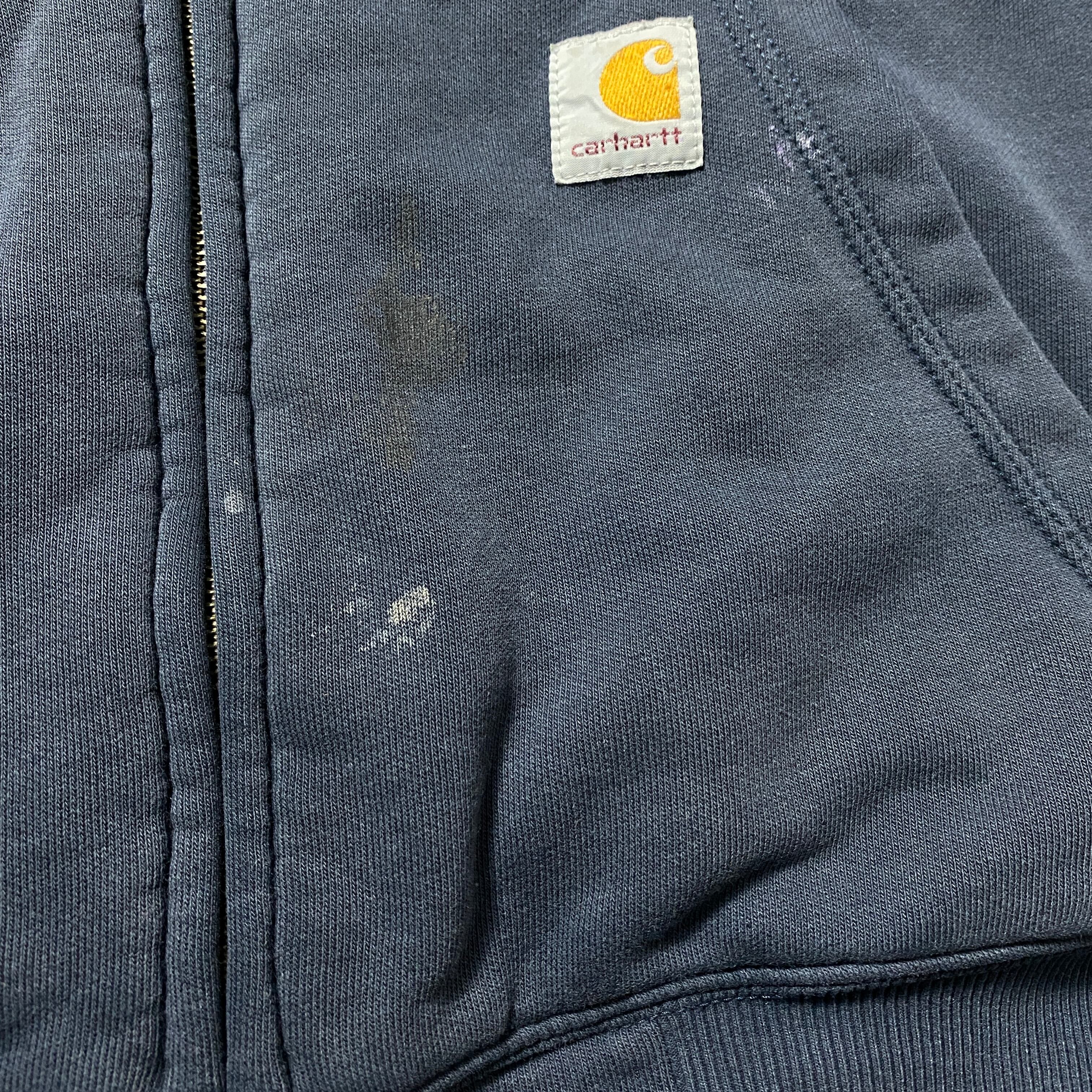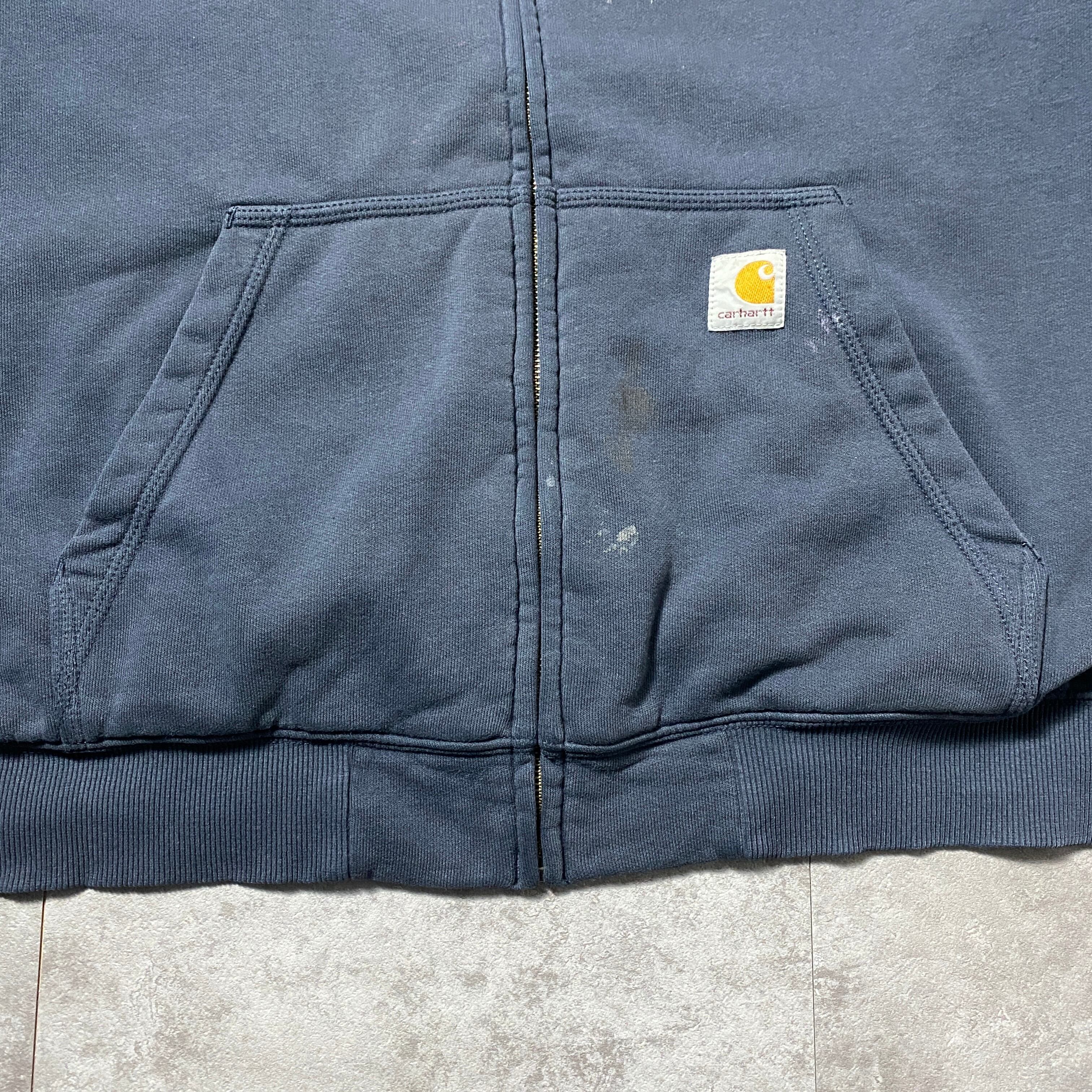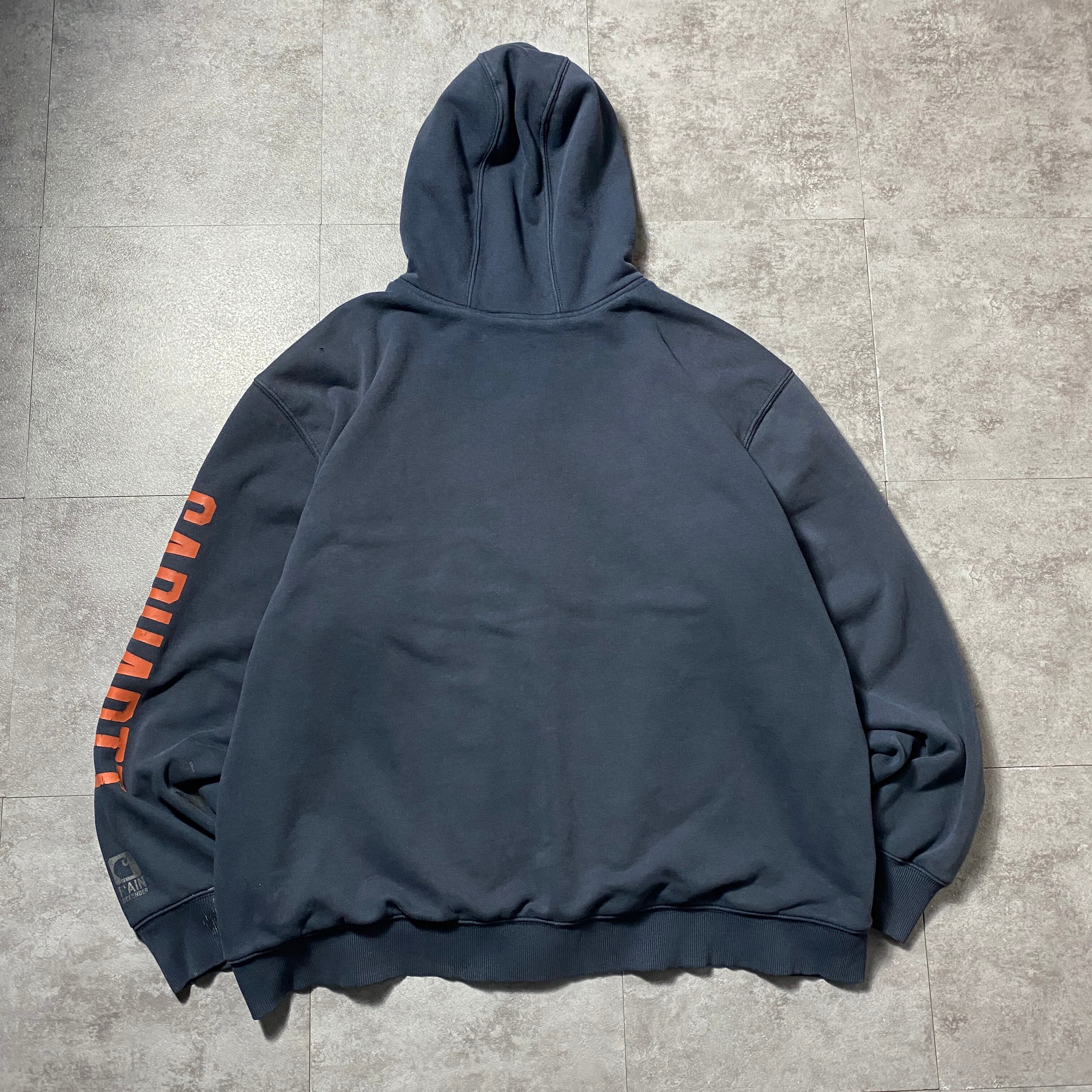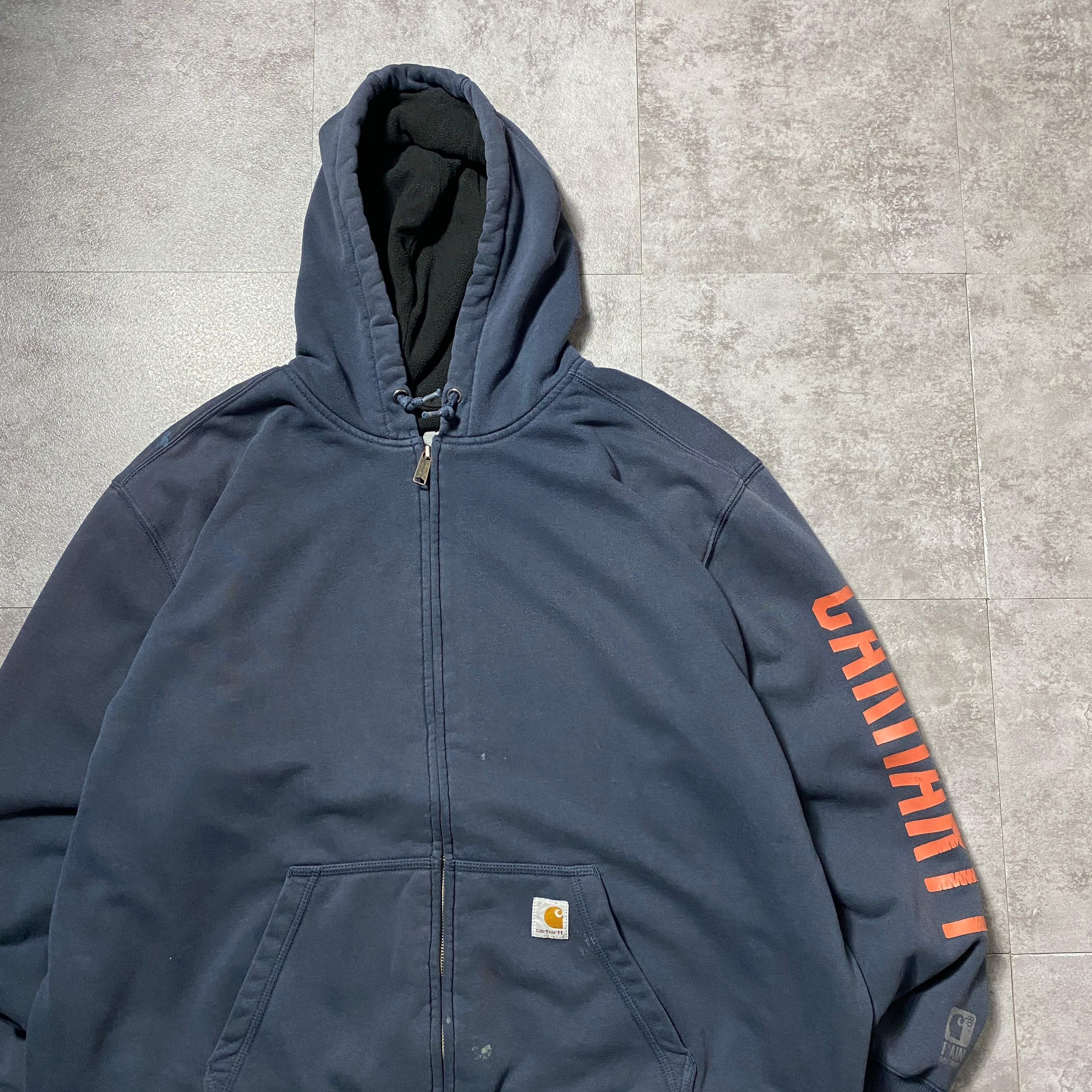 carhartt カーハート アームプリント パイルライナー ダメージ 2XLサイズ ネイビー ジップパーカー