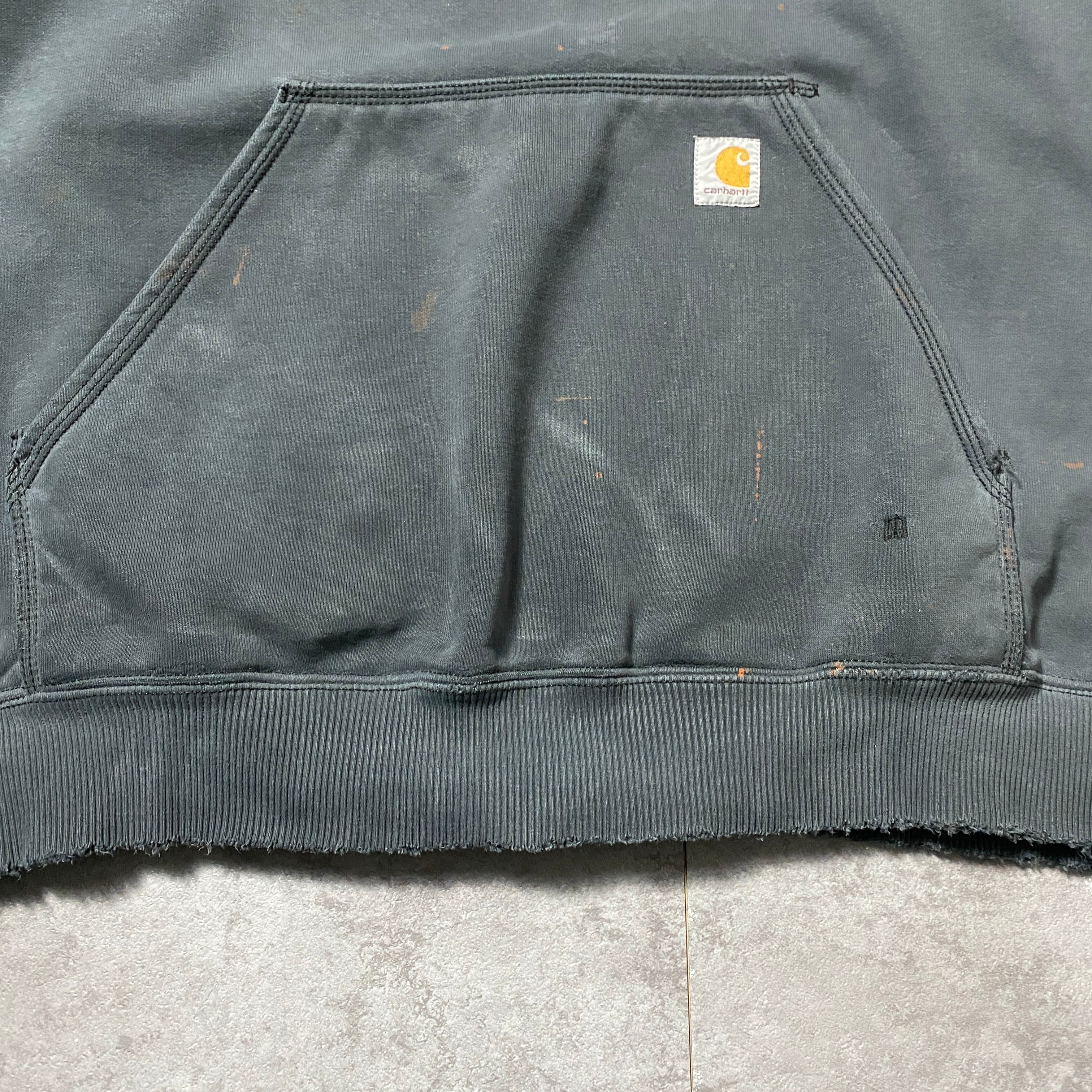 carhartt カーハート ラベルロゴ ダメージ ダークグレー 2XLT スウェット パーカー