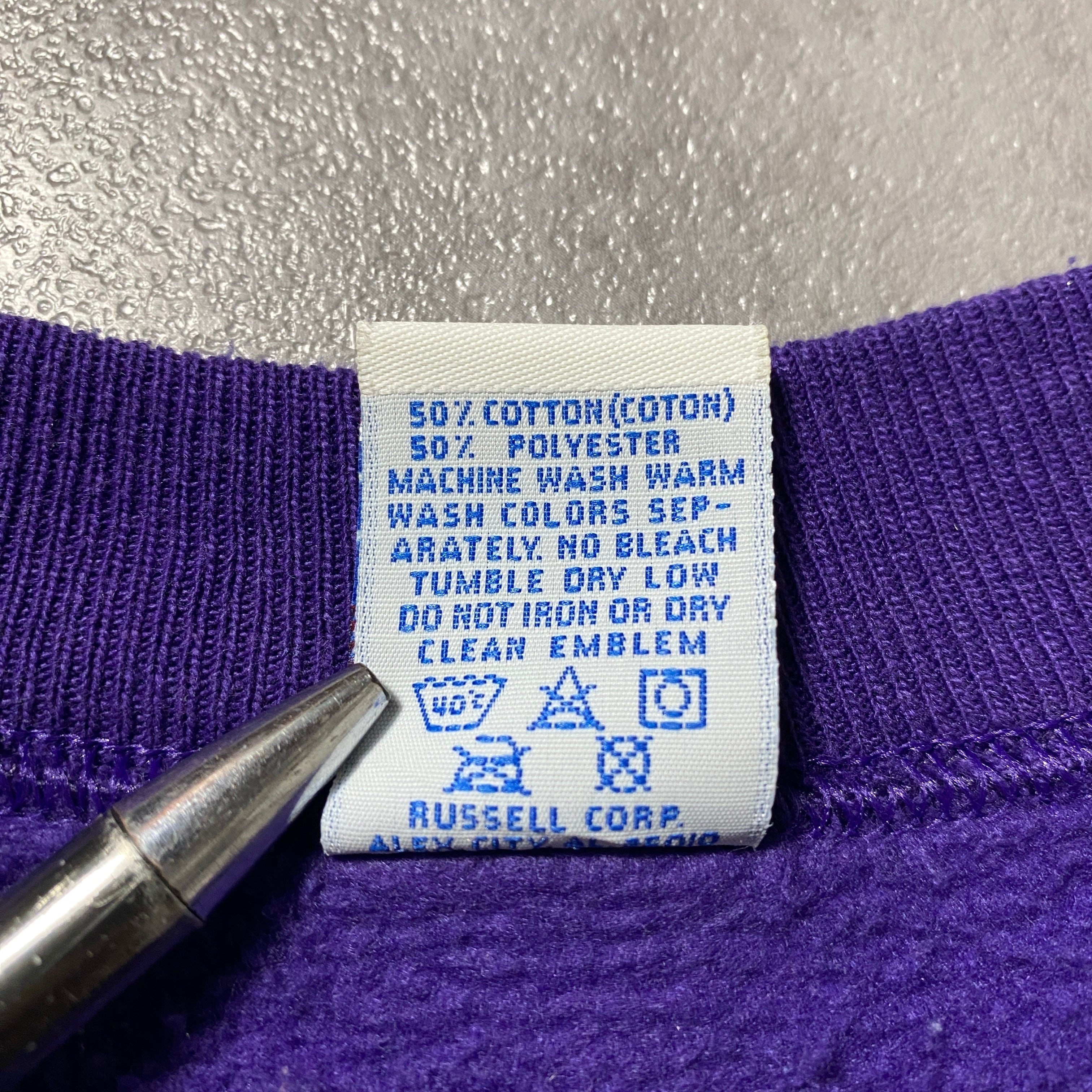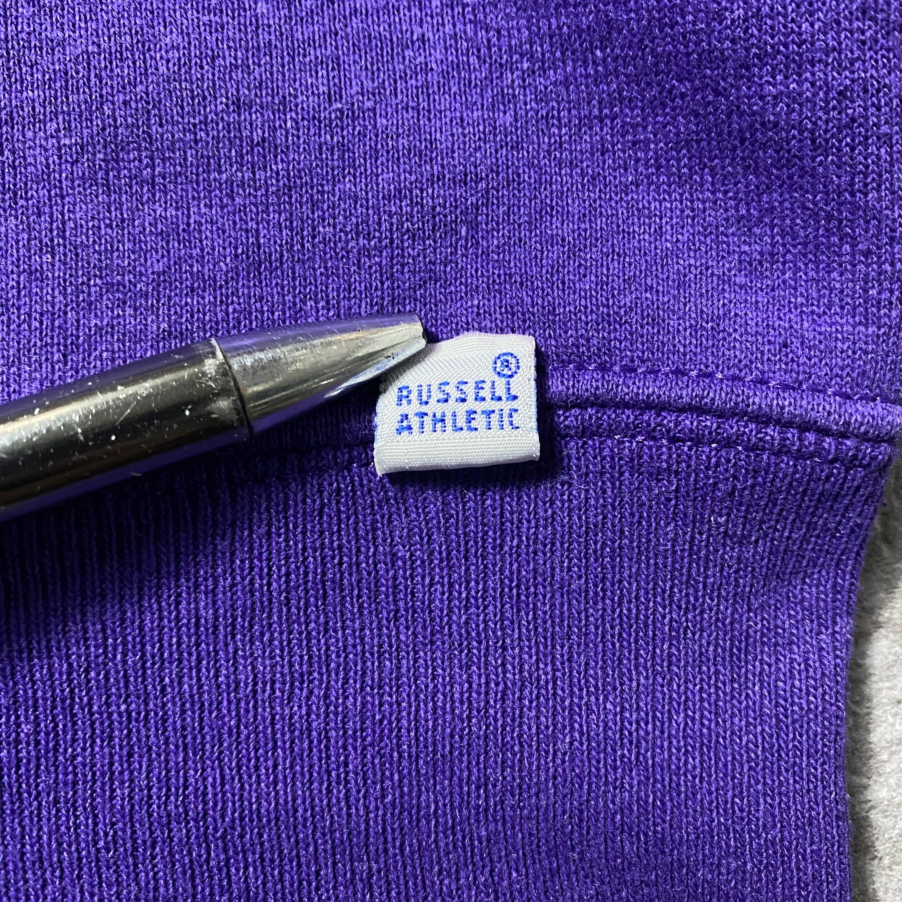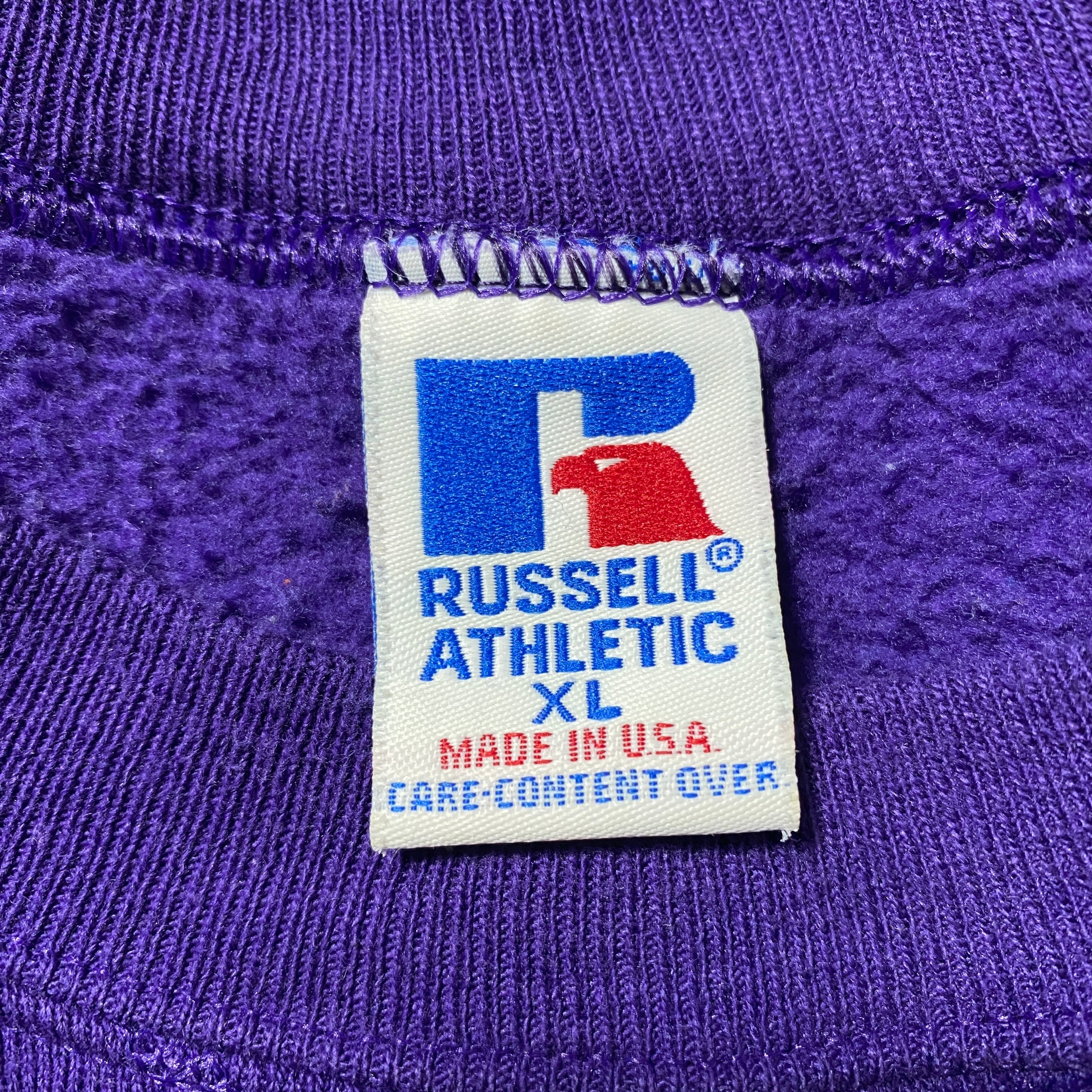 【USA製】90's RUSSEL ATHLETIC REGIS COLLEGE ラッセルアスレチック レジス大学 カレッジロゴ プリント XLサイズ パープル 紫 スウェット トレーナー