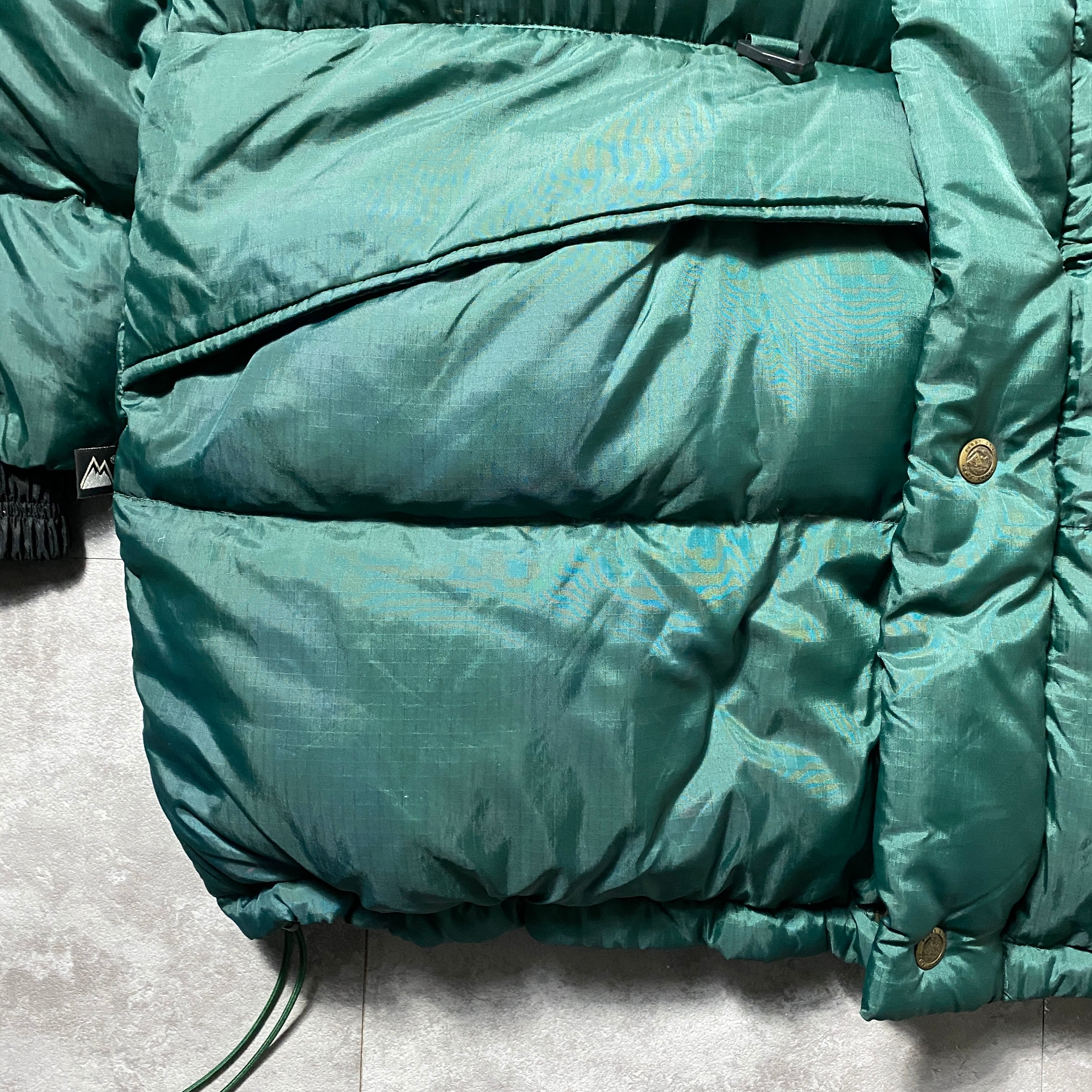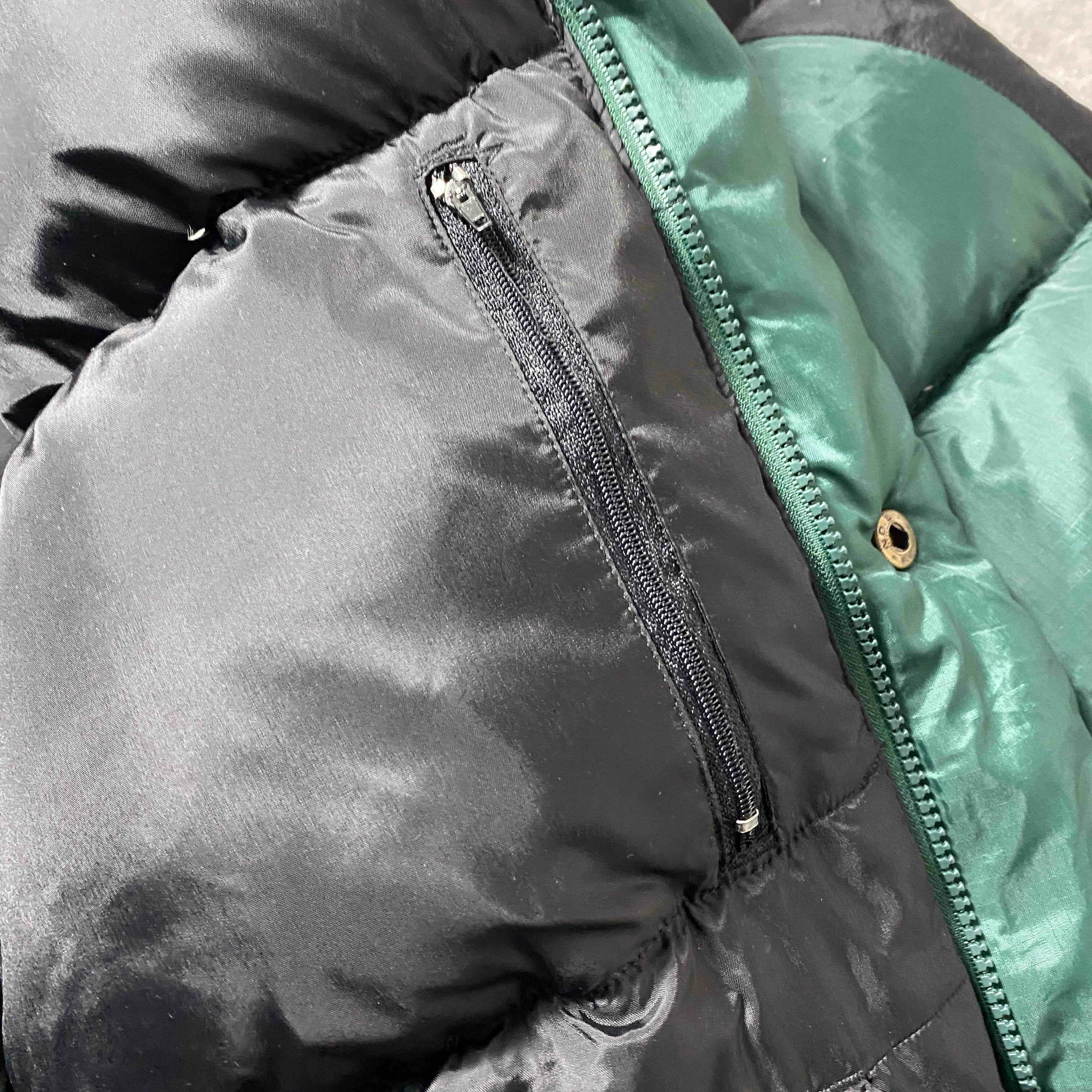90's 00's FIRST DOWN ファーストダウン 刺繍ワンポイント バイカラー グリーン フード付き ダウンジャケット