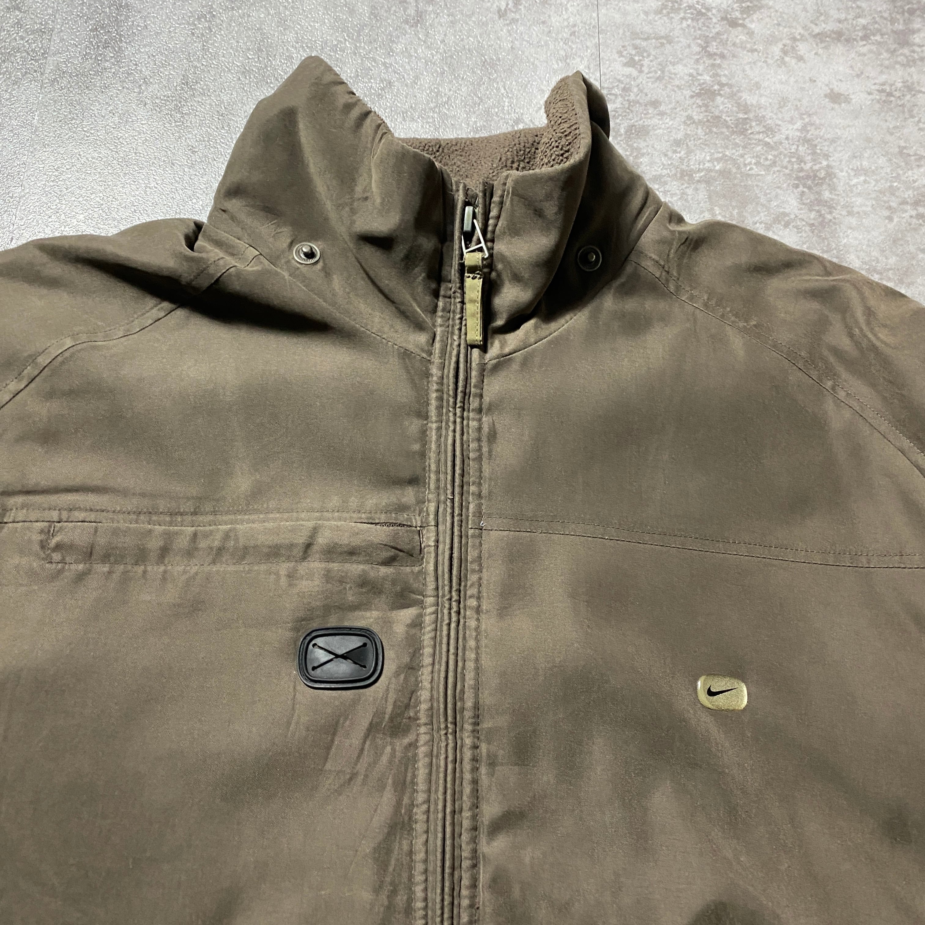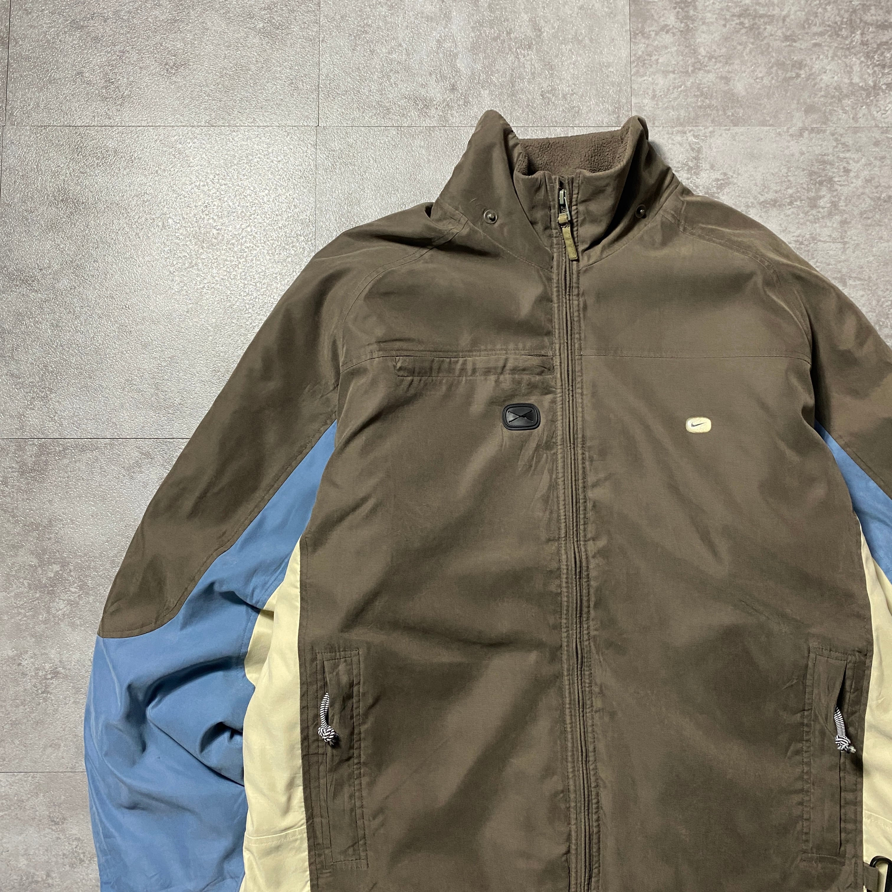 00's NIKE ナイキ スウォッシュ ワンポイント スエード ブラウン 中綿 ナイロンジャケット